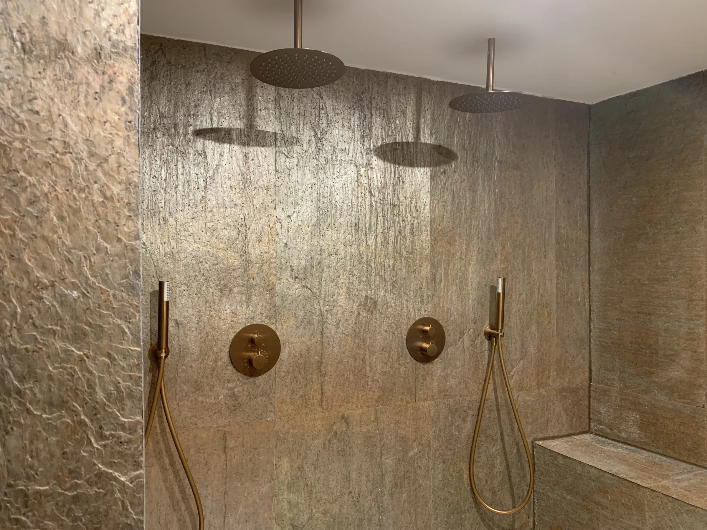 Open bathroom with stone walls, which provides a touch of sophistication and connection with nature.