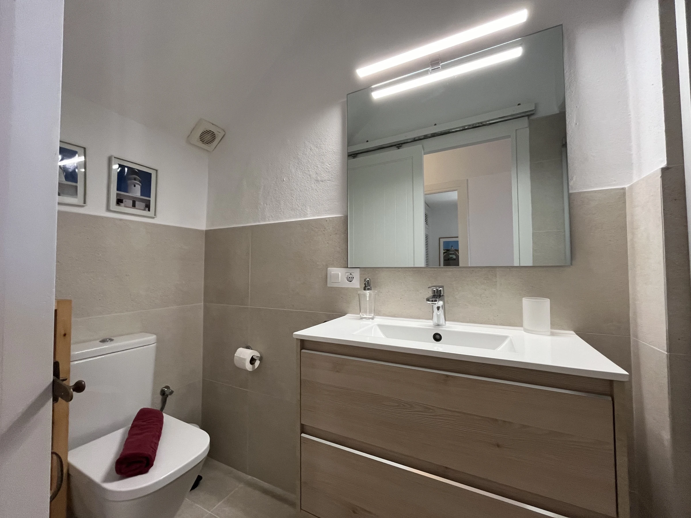 Magnificent apartment on the first line with spectacular sea views and very close to the fabulous Son Saura beach. The apartment has been completely renovated recently and equipped with high-quality elements. It has two double bedrooms, a full bathroom, a fully equipped kitchen and a living-dining room with access to a spacious terrace with spectacular sea views.