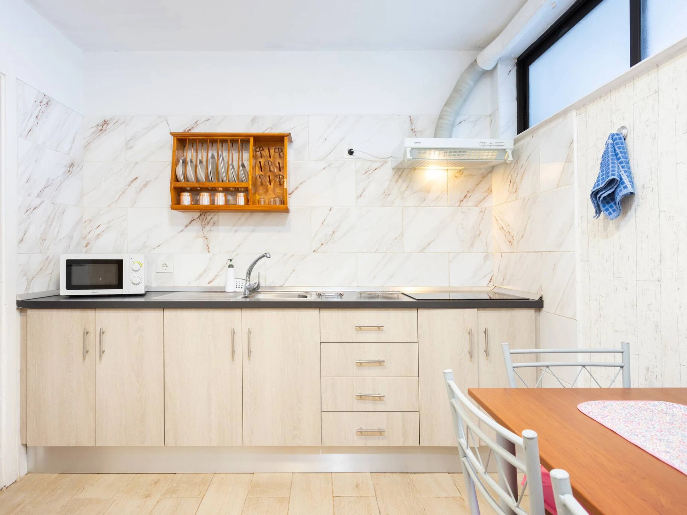 The independent kitchen, of hotplate of glass ceramics, is equipped with refrigerator, microwave, freezer, dishes/cutlery, kitchen utensils and coffee machine.