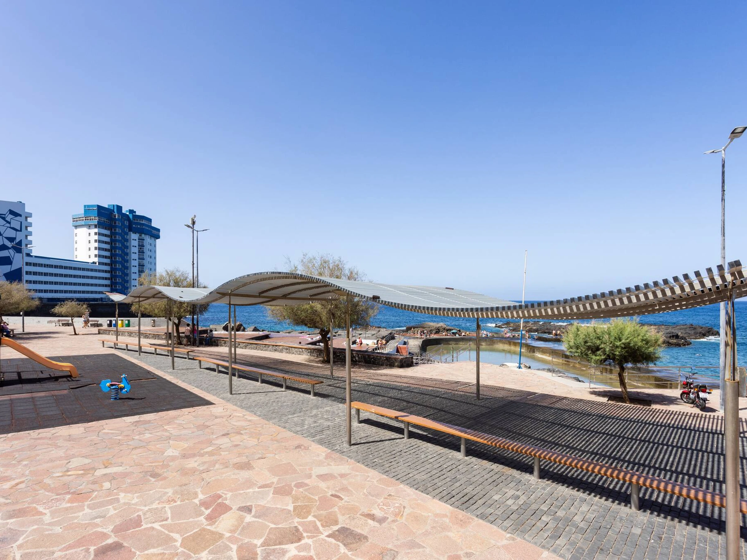 It is located in a a quiet zone and next to the sea.