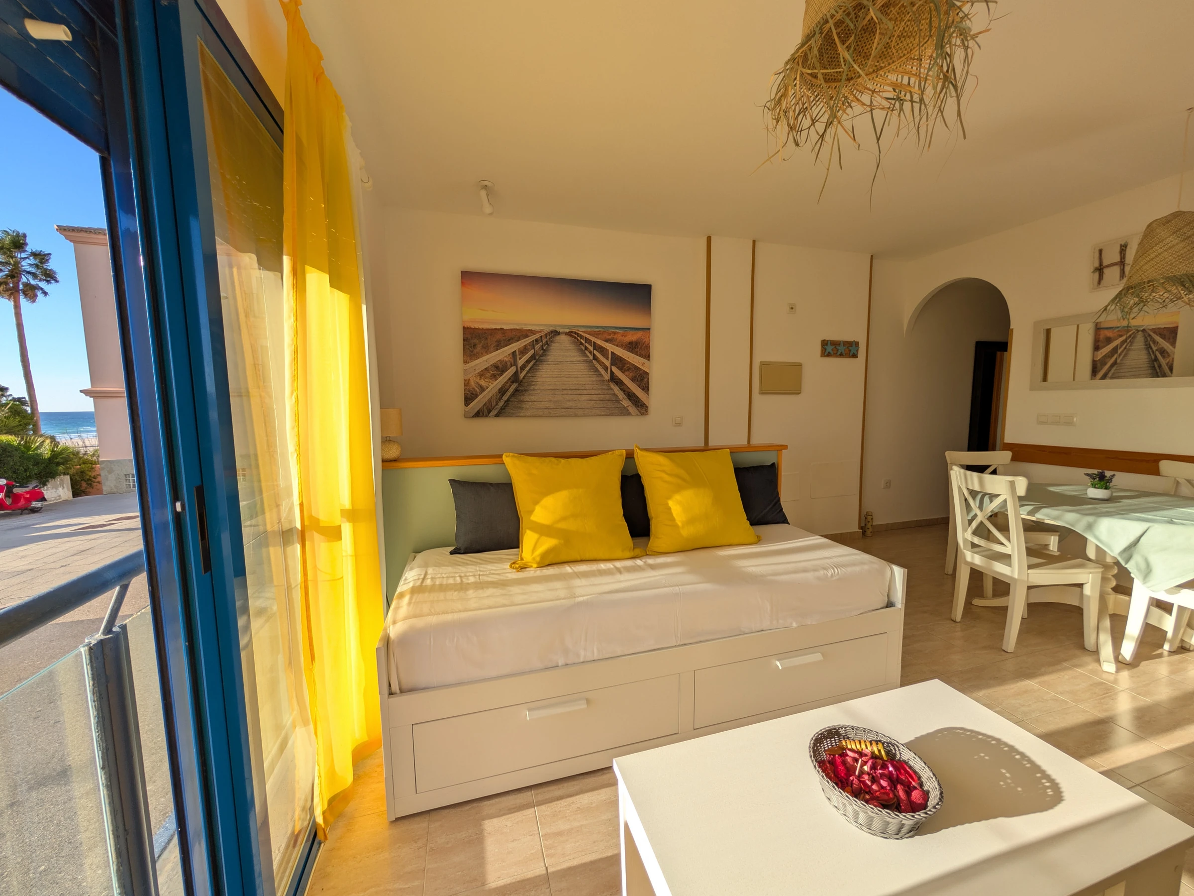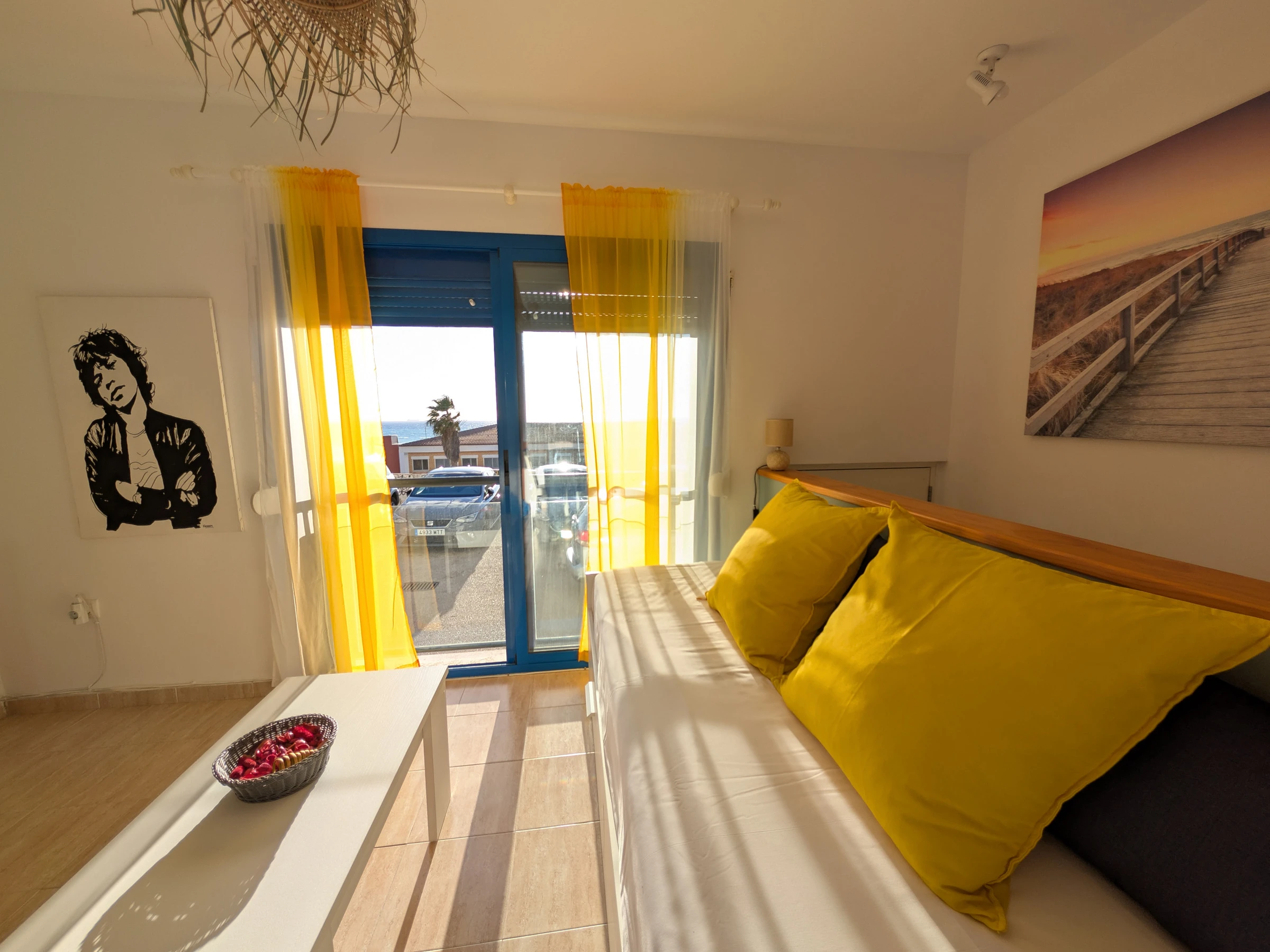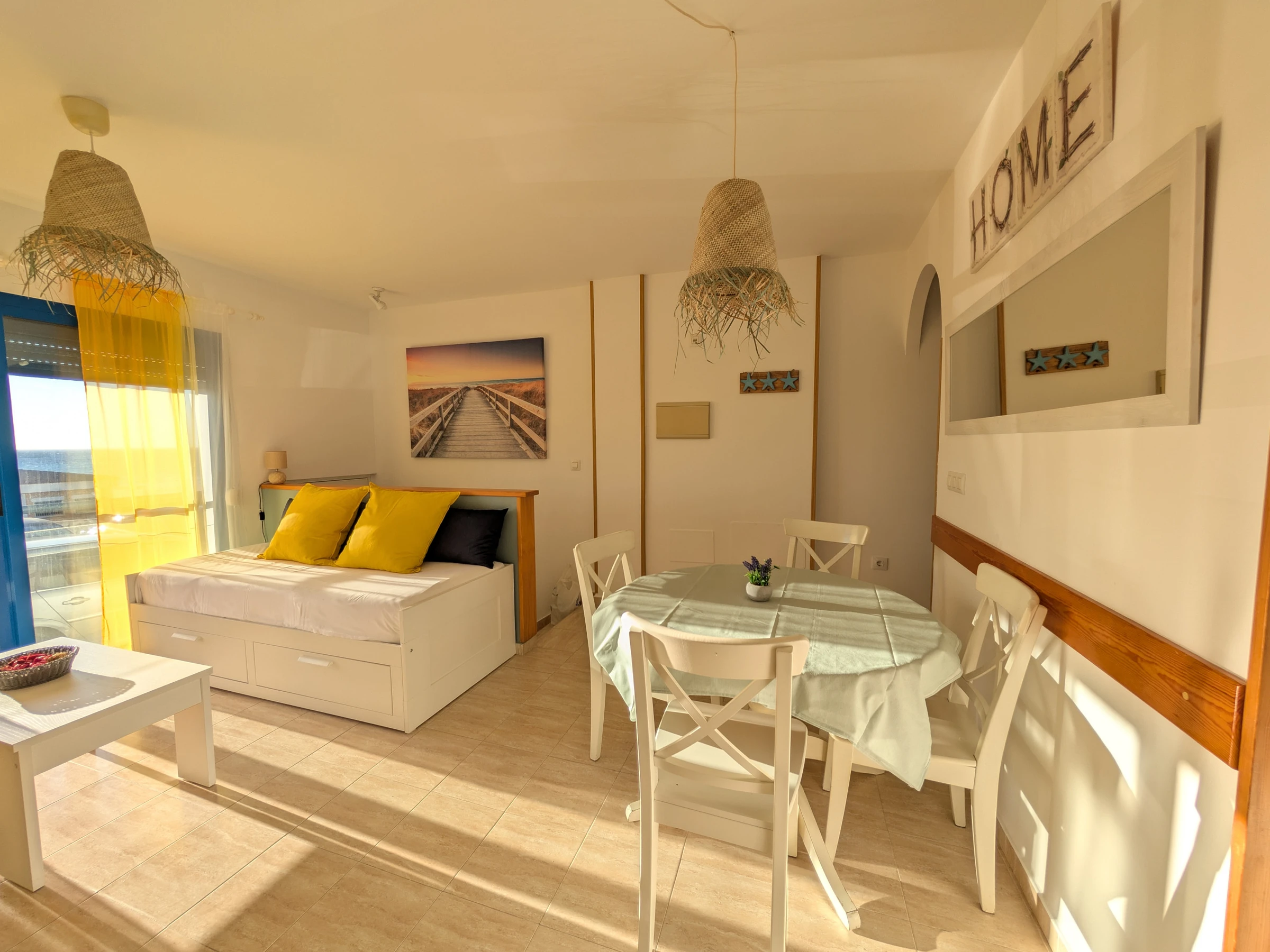 The kitchen is fully equipped with modern appliances, ideal for preparing your favourite dishes. The living room has a comfortable sofa, flat-screen TV and direct access to a small terrace, perfect for enjoying the sea breezes at the end of the day.