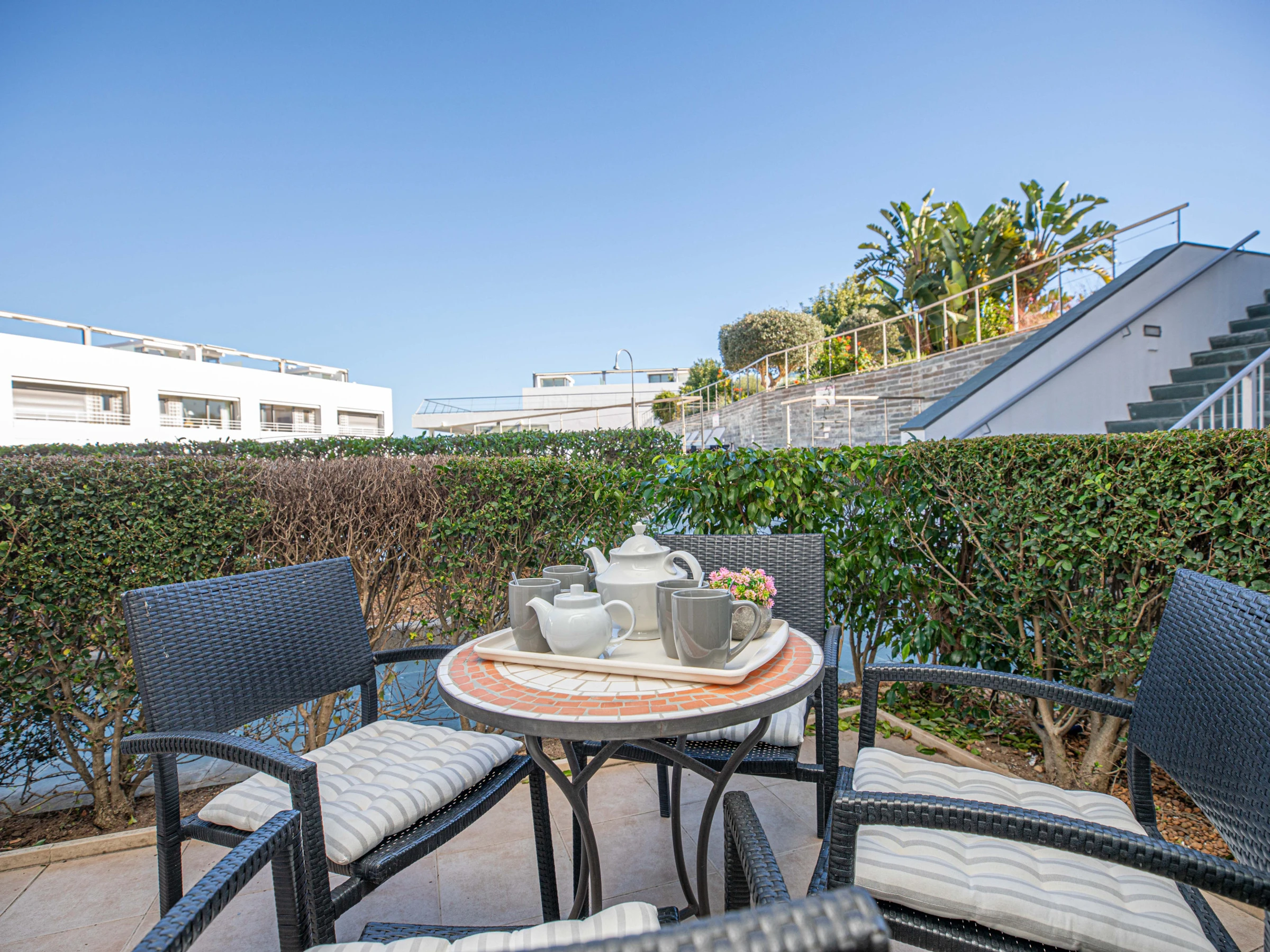 Situated in the popular residential condo of “Terraços de Tavira", this super apartment has all the essential ingredients for the perfect holiday rental. Its cosy décor features a private internal atrium and a shady front patio perfect for al fresco dining, all accompanied by a sparkling swimming pool and gated private gardens. A short walk leads you to wonderful restaurants, artisan shops and the ferry boat to the golden sands and of Tavira Beach Island…all waiting to be explored and enjoyed.