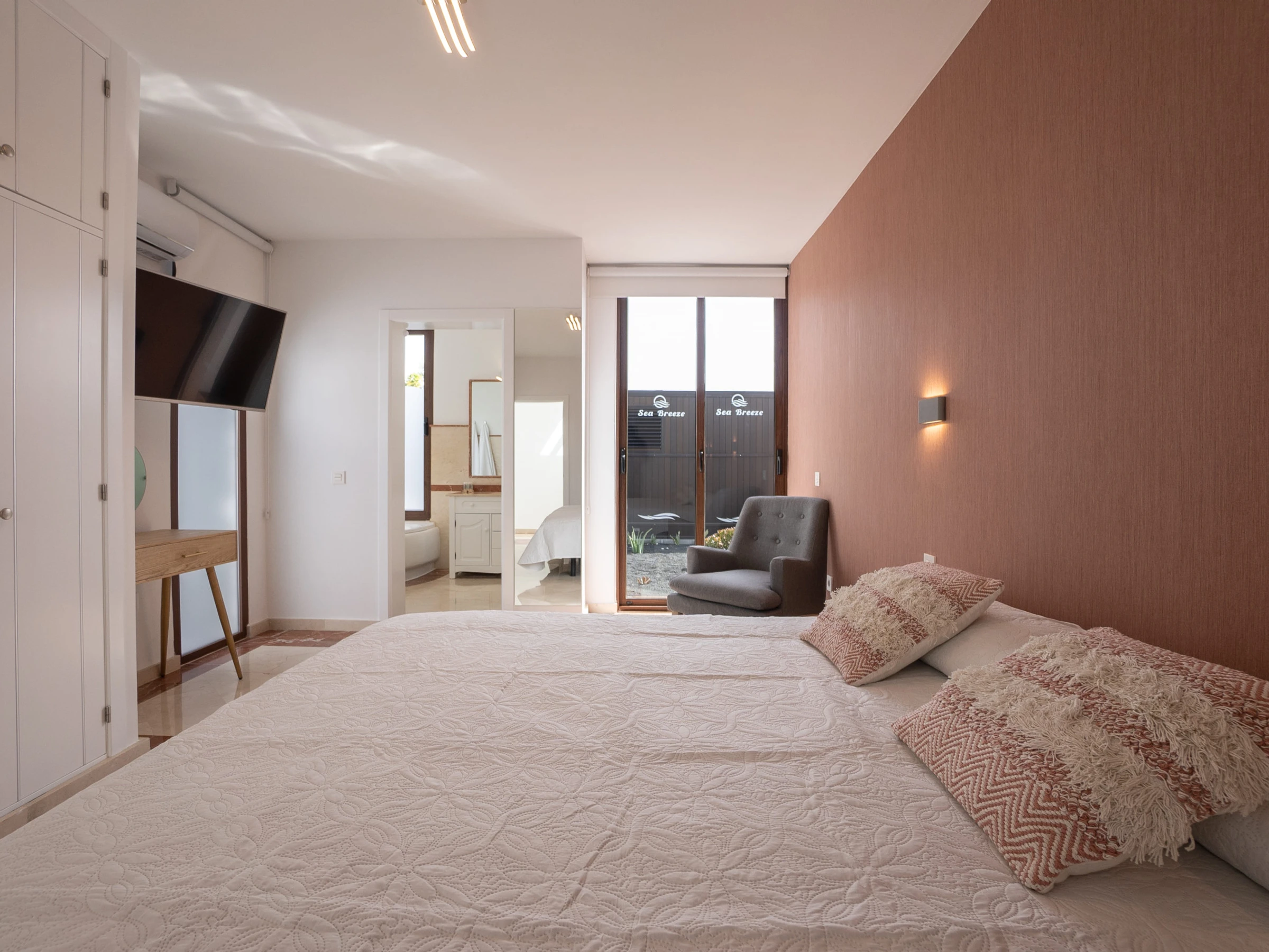 The villa in Playa Blanca has 3 bedrooms and capacity for 6 people.