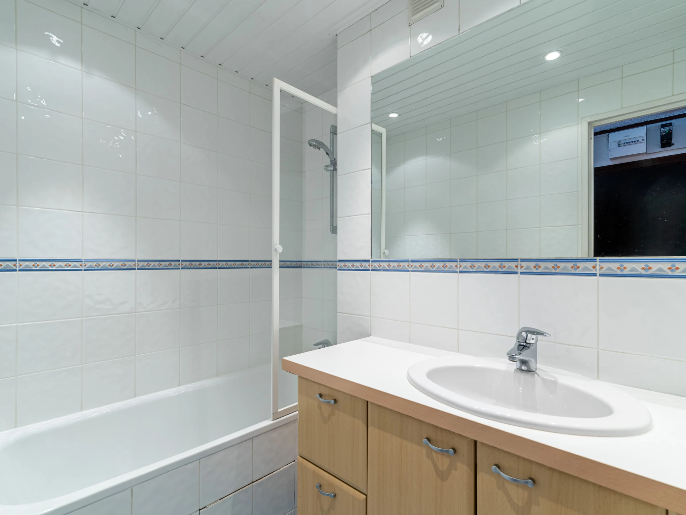 2-room apartment 44 m2 on 4th floor. Simple and practical furnishings: dining room with 1 pull-out bed (2 pers. 2 x 80 cm, length 180 cm), TV (flat screen). 1 room with 2 beds (80 cm, length 190 cm). Entrance hall with 2 wall-trunk beds (80 cm, length 190 cm). Kitchenette (oven, dishwasher, 4 ceramic glass hob hotplates, toaster, kettle, microwave, electric coffee machine). Bathroom, sep. WC. Offer by a private individual according to Art. 155, IV of CGI.