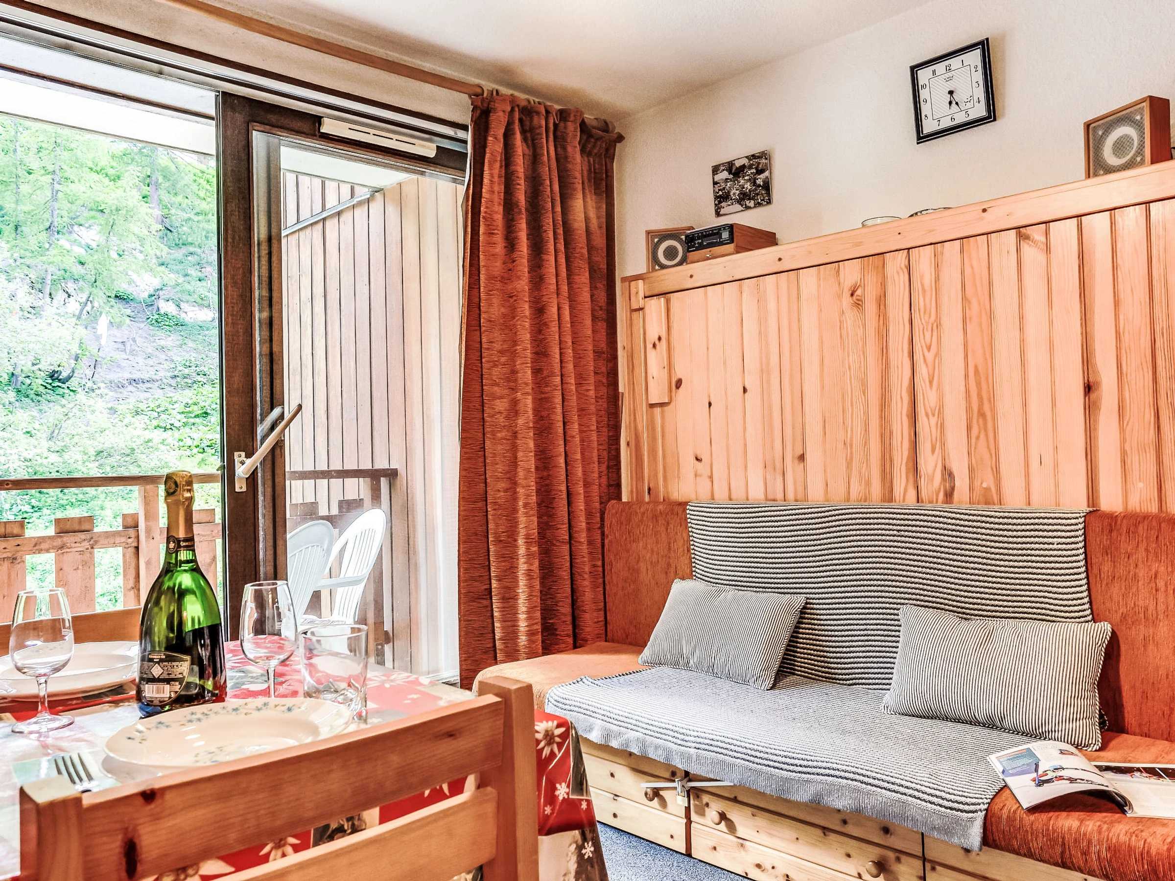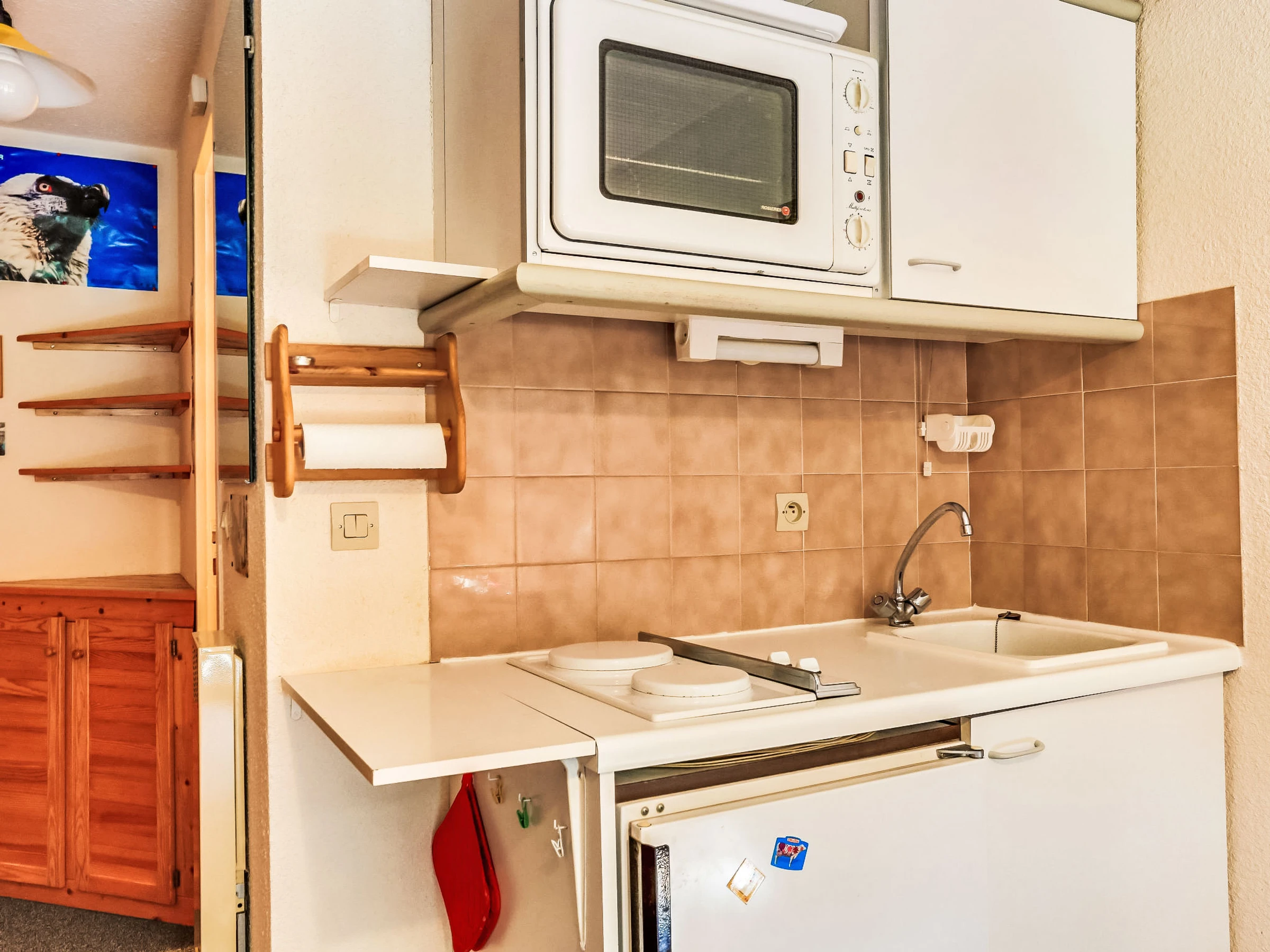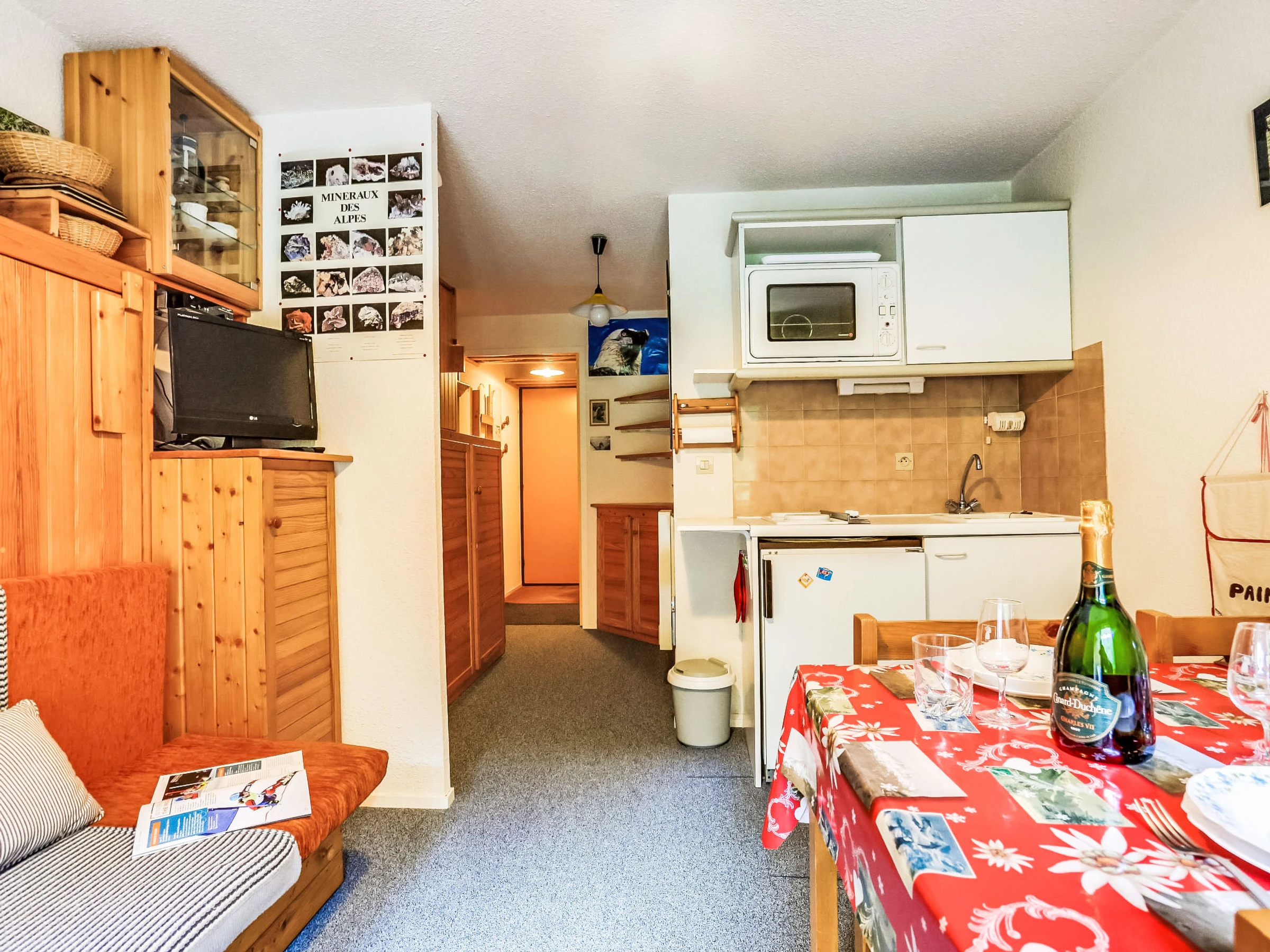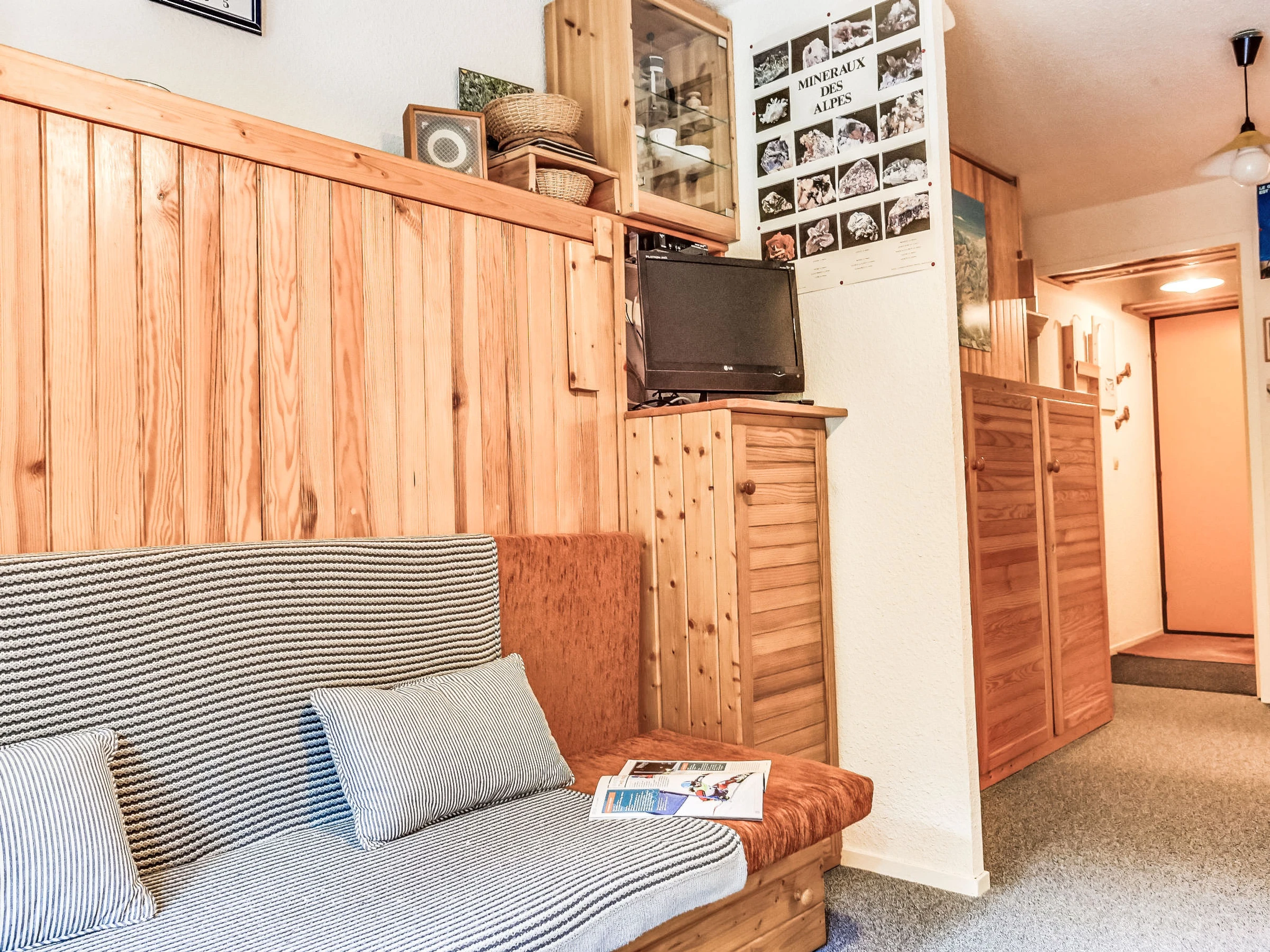 2-room apartment 23 m2 on 2nd floor. Simple and practical furnishings: living/dining room with 1 double wall-trunk bed (1 x 120 cm), TV. 1 open small room with 1 french bed (1 x 140 cm). Entrance hall with 1 wall-trunk bed (80 cm). Kitchenette (2 hot plates, oven, electric coffee machine). Bath/WC. Electric heating. Balcony, south-west facing position. Facilities: Internet (WiFi, extra). Parking (roofed), height 180 cm. Please note: non-smokers only.