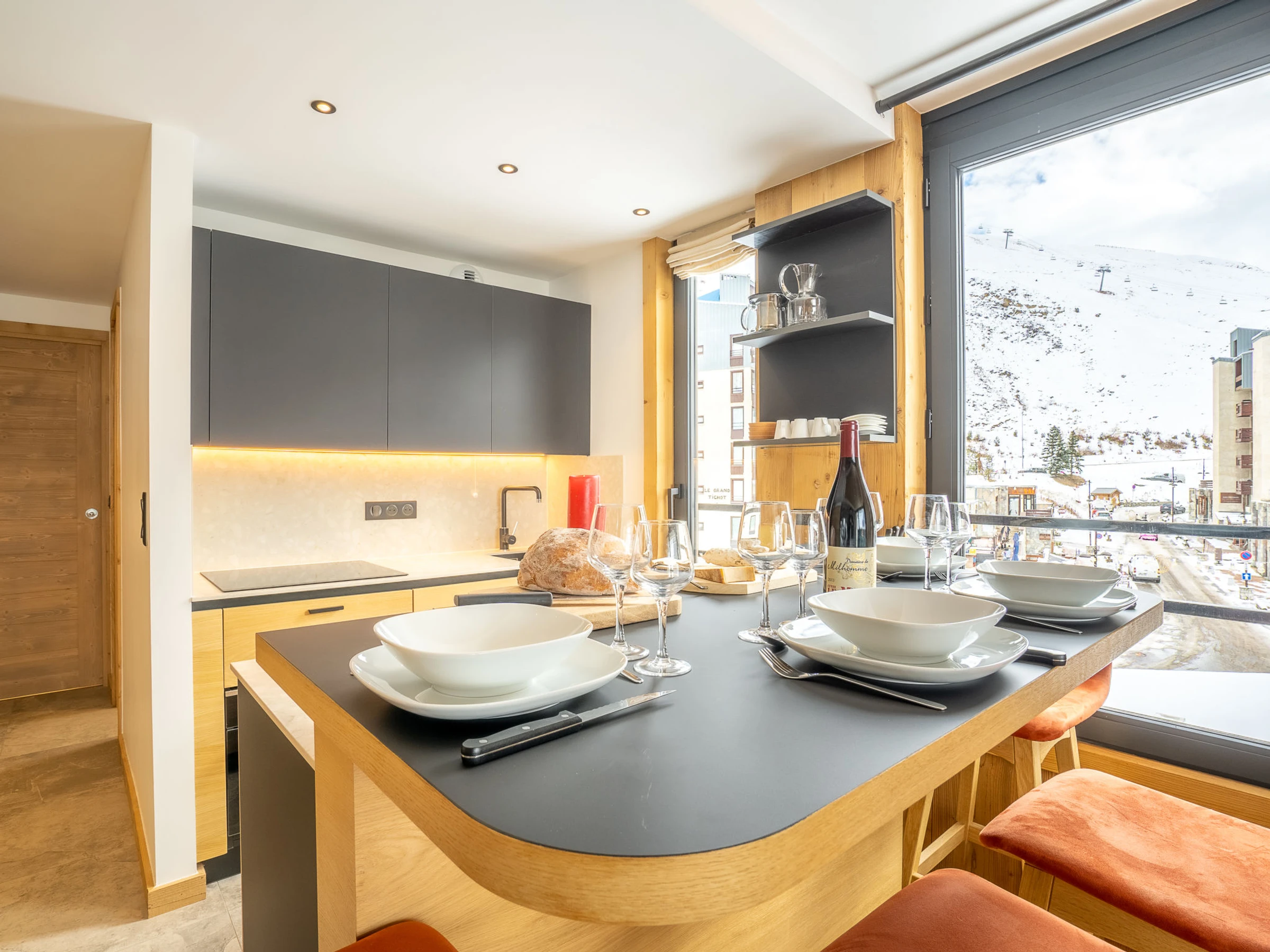 Tignes Val Claret: Residence "Les Grandes Platières (Val Claret)", 6 storeys. Val Claret, in a sunny position residential area (villas), 150 m from the skiing area. In the complex: restaurant, boutique, lift, storage room for skis, central heating system. Shop, grocery, supermarket, restaurant, bakery 10 m, bus stop 200 m, indoor swimming pool 2 km. Golf course (18 hole) 1 km, minigolf 800 m, sports centre 2 km, skisport facilities 150 m, ski rental 10 m, ski school 10 m, sled run 20 m. Well-known ski regions can easily be reached: Espace Killy 150 m. Hiking paths: Park de la Vanoise. Please note: ski bus (free of charge). 24hr guard. Residence with electric gates. Additional accommodations can be booked. Property ref. Grande Platiere is situated on the same property. All houses/apartments are individually designed/furnished. Access lift direct to the Grande-Motte parking.
