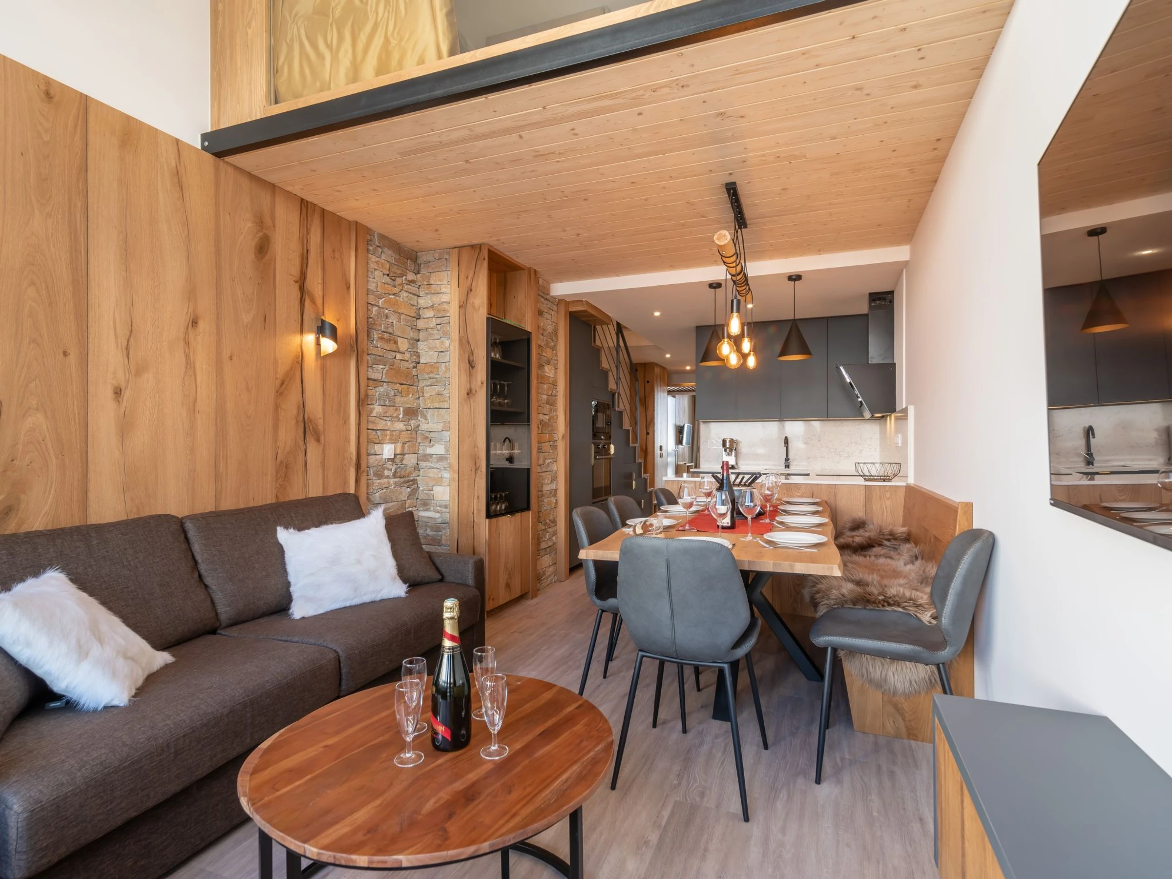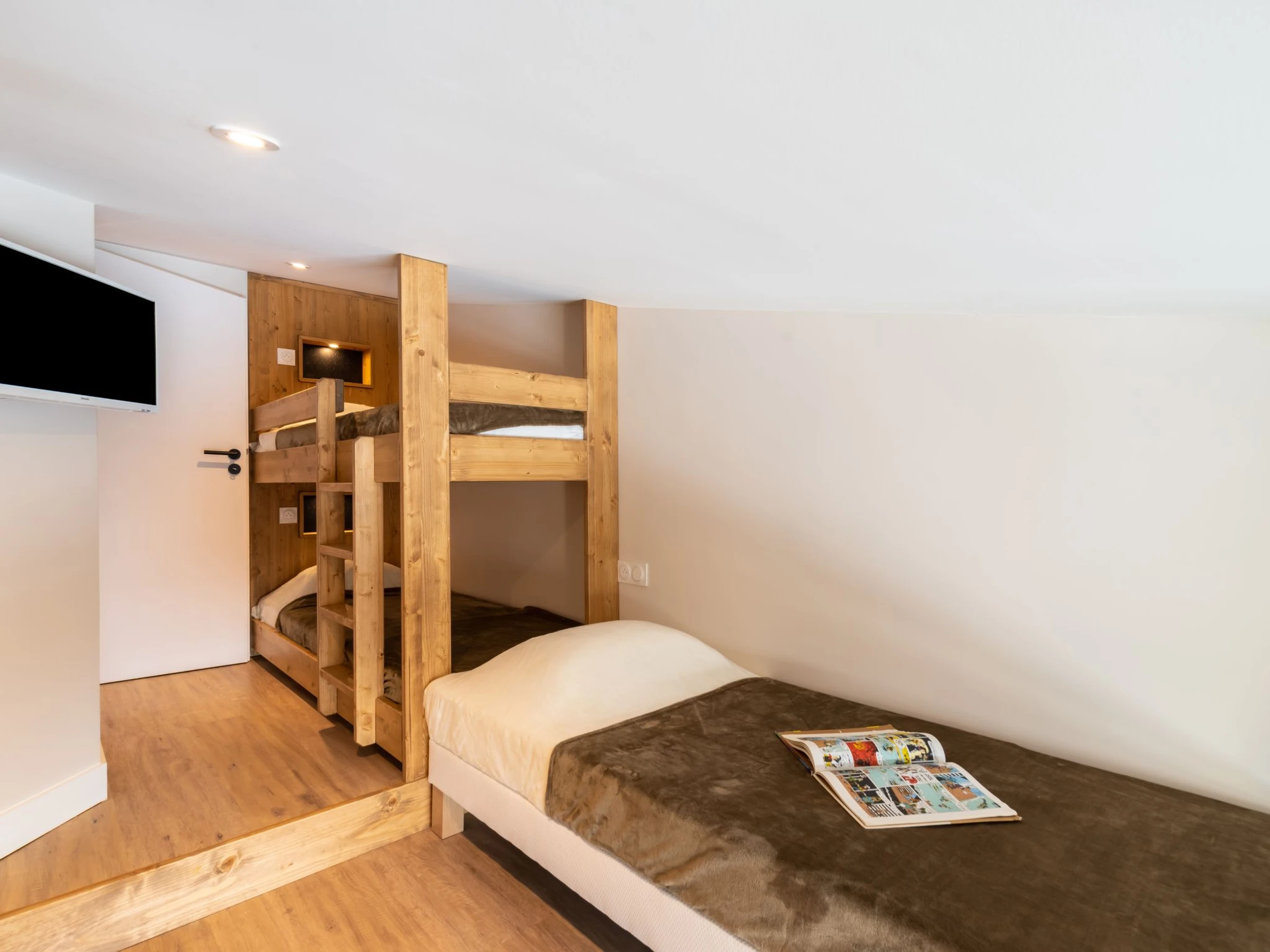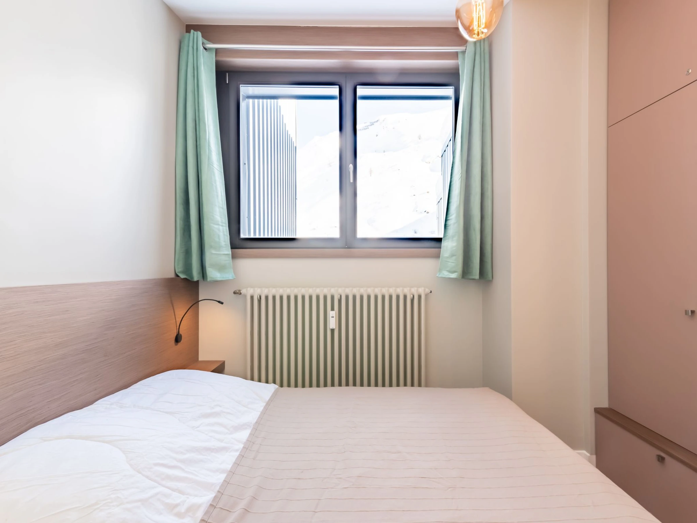 4-room apartment 60 m2 on 2 levels on 4th floor. Fully renovated in 2022, luxurious and stylish furnishings: living/dining room with TV (flat screen). Exit to the balcony, south-west facing position. 1 room with 1 french bed (160 cm, length 200 cm), TV (flat screen). Exit to the balcony, north facing position. Open kitchen (oven, dishwasher, 4 induction hot plates, toaster, kettle, microwave, electric coffee machine, raclette grill, fondue Set (cheese)). Bathroom, sep. WC. Upper floor: 1 large children's room 15 m2, with sloping ceilings, ceiling height 230 - 120 cm with panoramic window, window onto the living room with 2 beds (80 cm, length 190 cm), 1 x 2 bunk beds (80 cm, length 190 cm), TV (flat screen). 1 room with 1 french bed (140 cm, length 190 cm), TV (flat screen). Shower/WC. Marvellous panoramic view of the mountains and the ski run. Facilities: washing machine, iron, hair dryer. Internet (WiFi, free). Please note: non-smokers only. Smoke alarm. UNLOADING AREA AT THE FOOT OF THE BUILDING, SKI IN / SKI OUT, PICTURES WAITING, BOOT DRYER, 4TH AND LAST FLOOR.