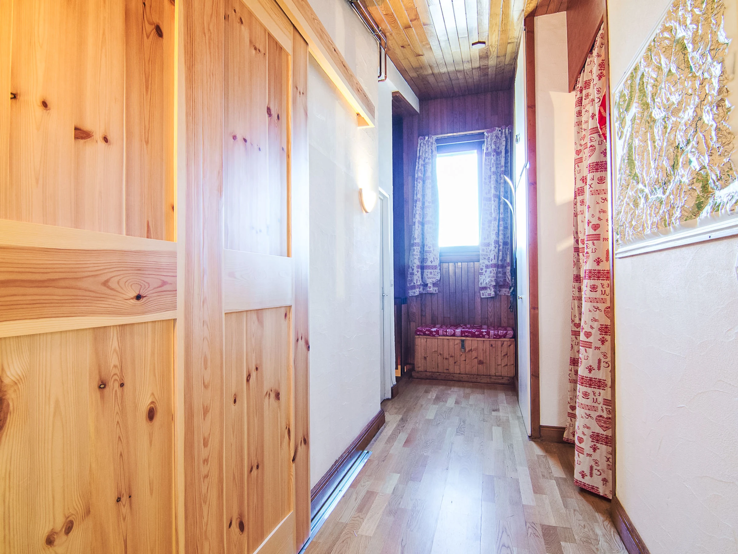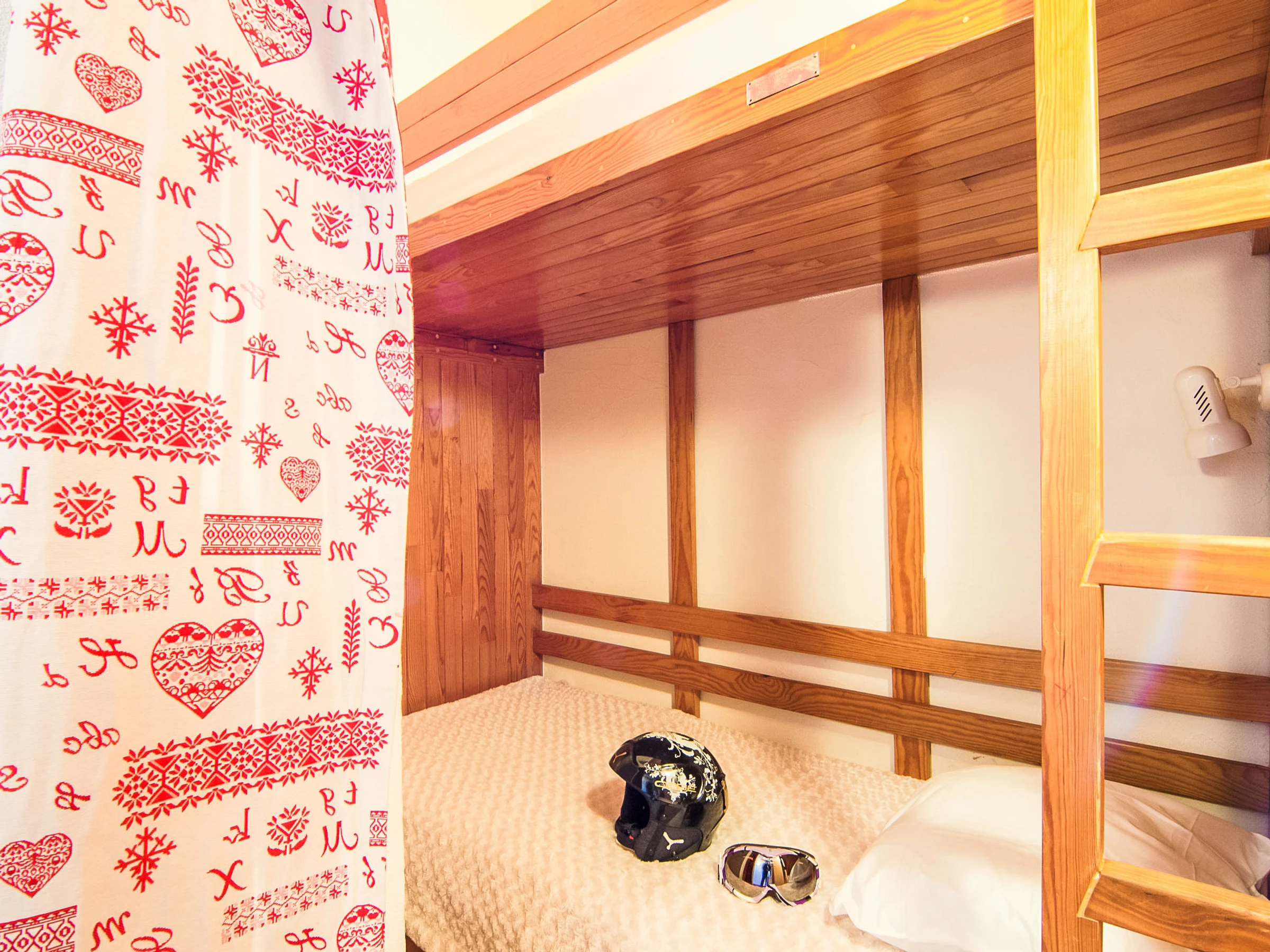 2-room apartment 45 m2 on 2 levels on 5th floor. Partly renovated: living/dining room with sliding door with 1 pull-out bed (2 pers. 2 x 80 cm), TV. Sleeping alcove with 1 x 2 bunk beds (80 cm). 1 room with 1 french bed (140 cm). Kitchenette (4 hot plates, mini-oven, dishwasher, microwave). Bathroom, sep. WC. Beautiful view of the mountains. Facilities: hair dryer. Internet (WiFi, extra). Please note: non-smokers only. Smoke alarm. Instead of an enclosed bedroom, some sleeping areas are located in an open-plan area (gallery, alcove, etc.). [hidden]