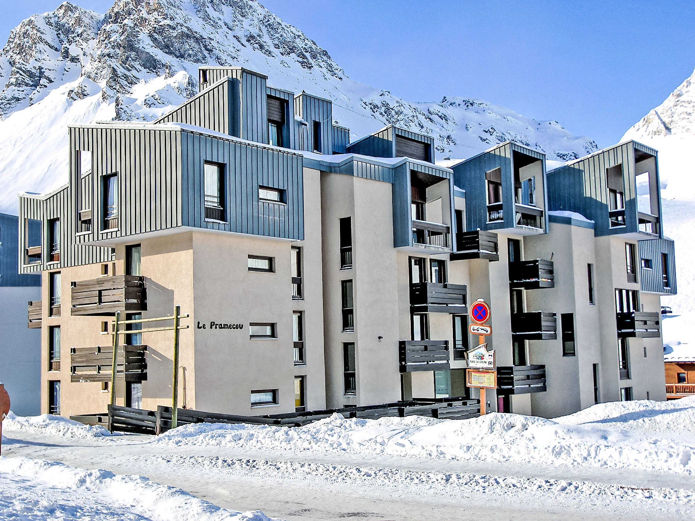 Tignes Val Claret: Apartment block "Le Pramecou (Val Claret)". In a quiet, sunny position, directly by the skiing area. In the complex: lift, central heating system. Shopping centre 200 m, restaurant, bar 100 m, bakery 200 m, bus stop 500 m, indoor swimming pool 2 km. Sports centre 2 km, skisport facilities 100 m. Well-known ski regions can easily be reached: Espace Tignes et Val D'Isère. 100 m. Please note: groups of teenagers on request only. Ski bus (free of charge). Additional accommodations can be booked. All houses/apartments are individually designed/furnished.