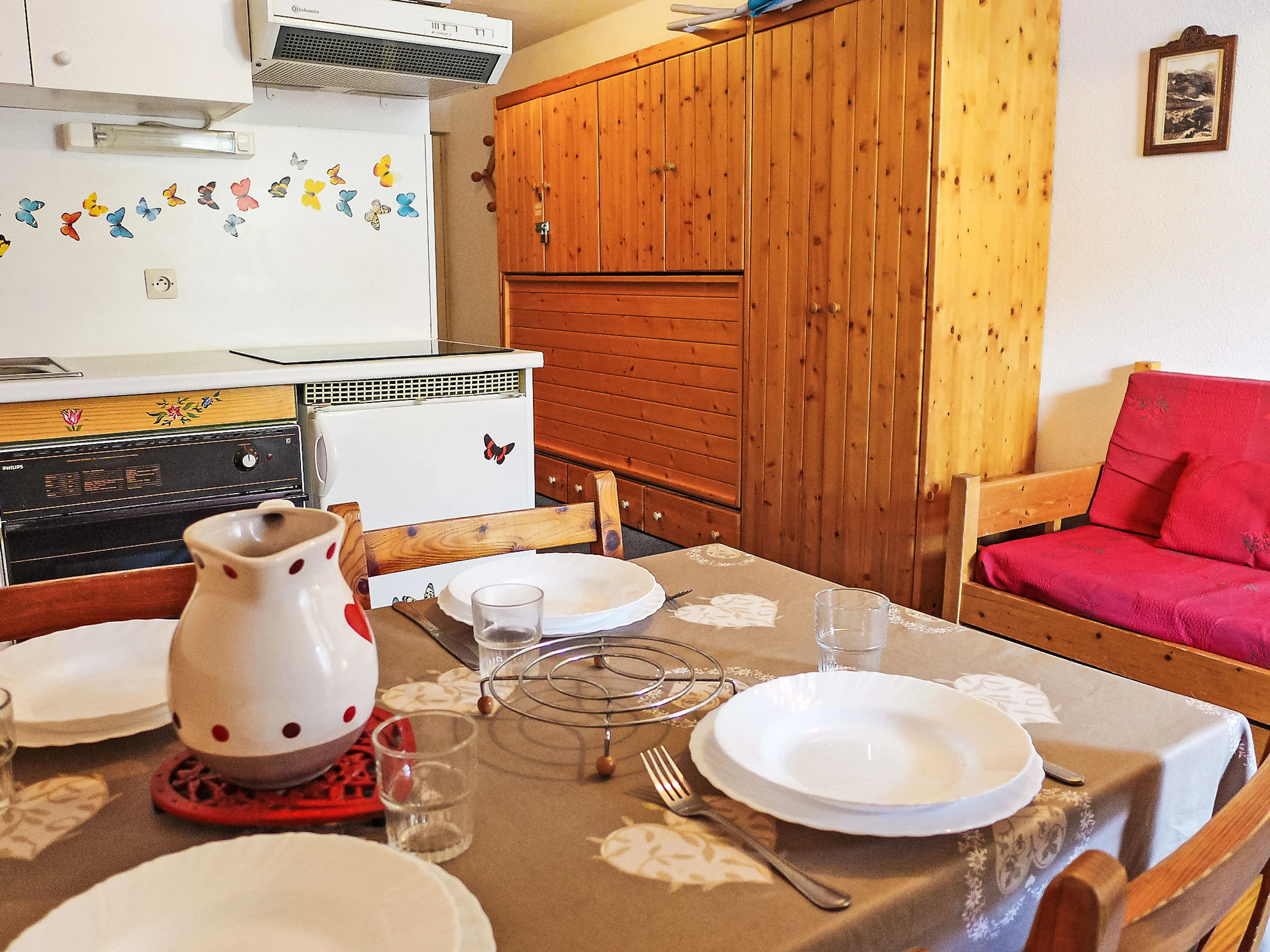 1-room apartment 28 m2 on 1st floor. Practical and beautiful furnishings: living/dining room with 1 pull-out bed (2 pers. 2 x 80 cm), satellite TV and flat screen. Sleeping alcove with curtain, without window with 1 x 2 bunk beds (80 cm). Entrance hall with 1 wall-trunk bed (80 cm). Kitchenette (oven, dishwasher, 3 induction hot plates, microwave, electric coffee machine). Bathroom, sep. WC. Beautiful view of the mountains and the ski run. Facilities: Internet (WiFi, extra). Please note: smoke alarm. Instead of an enclosed bedroom, some sleeping areas are located in an open-plan area (gallery, alcove, etc.).