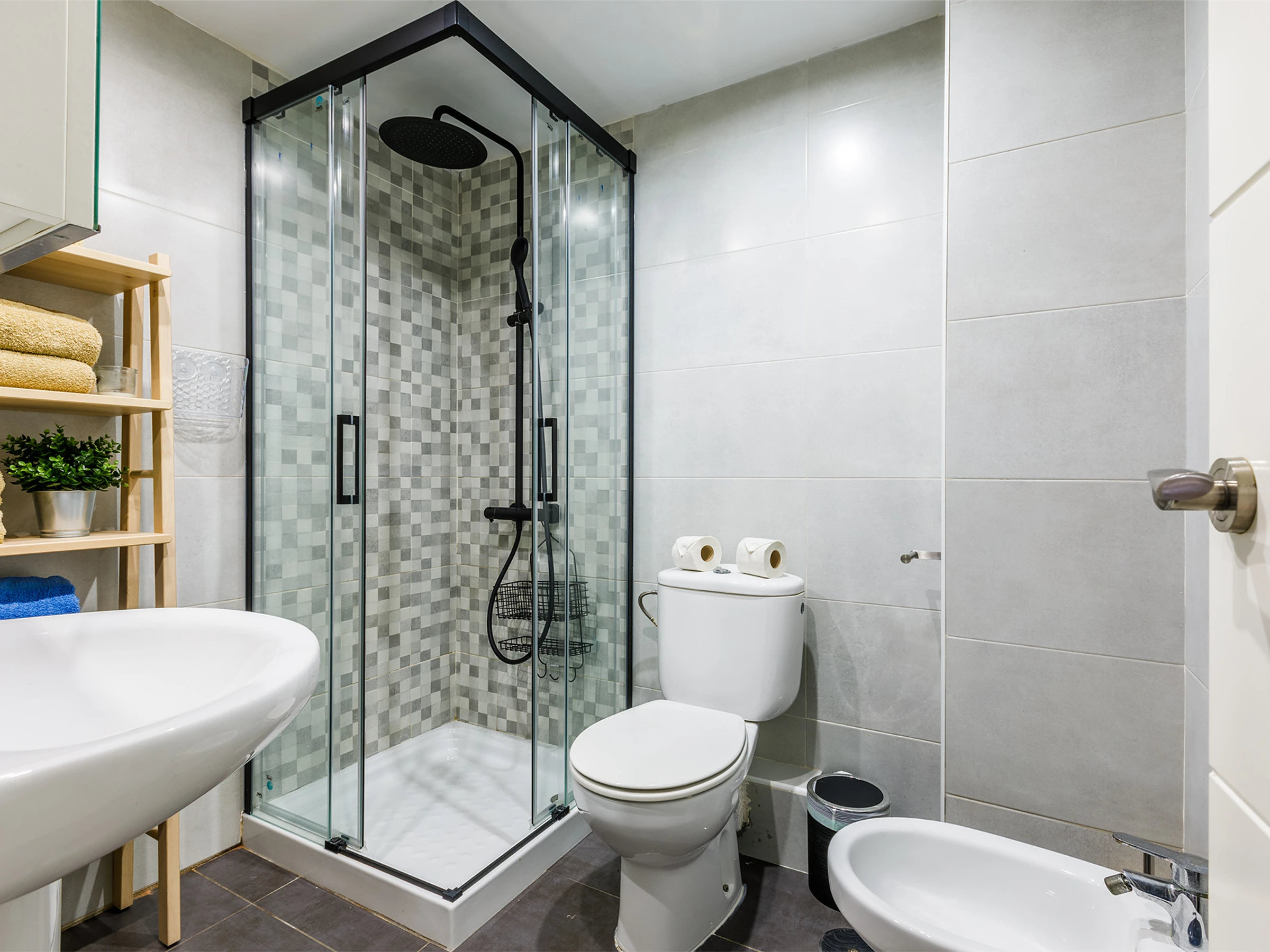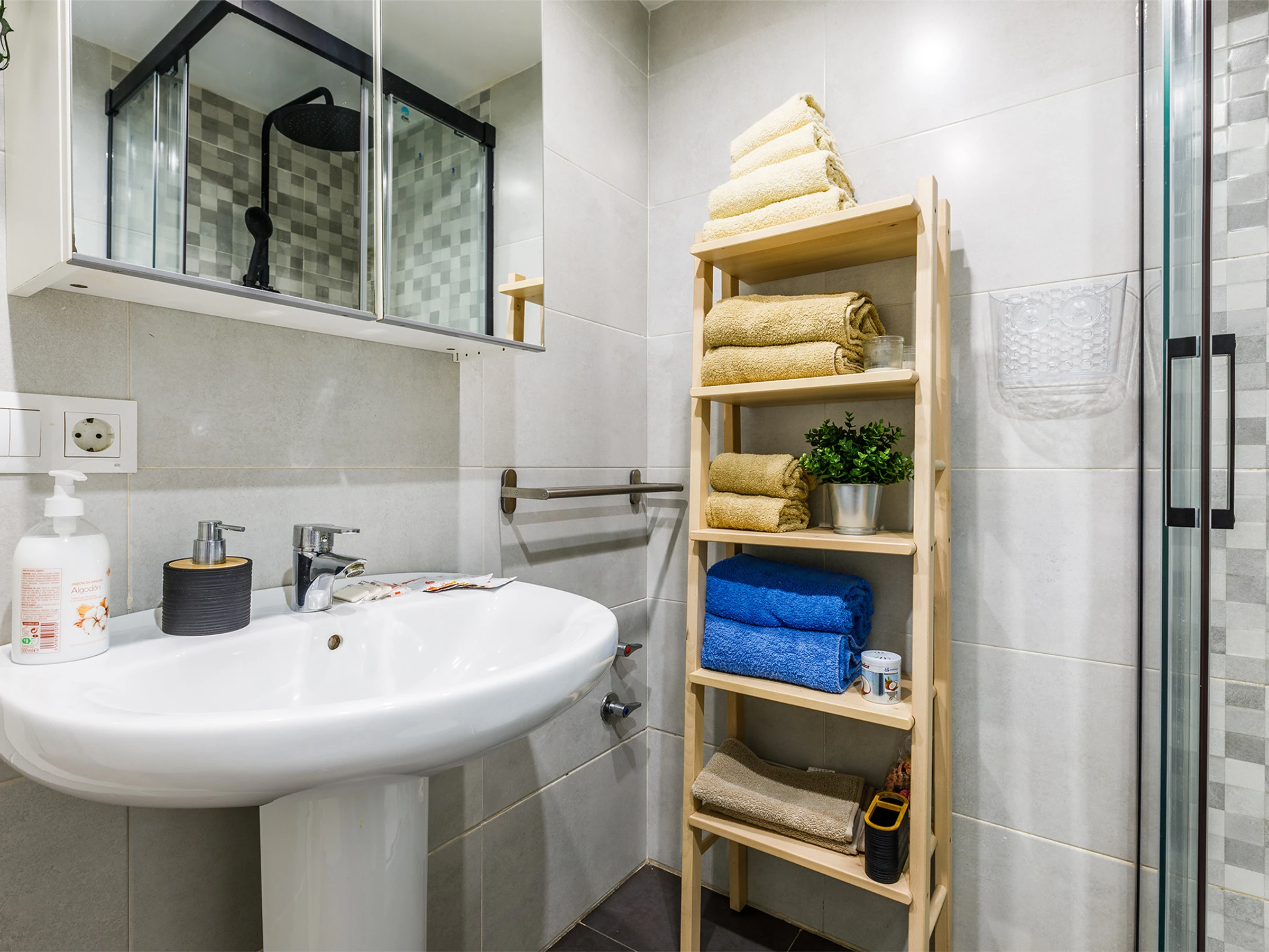 Moreover, it has a full bathroom with a shower, modern and practical.