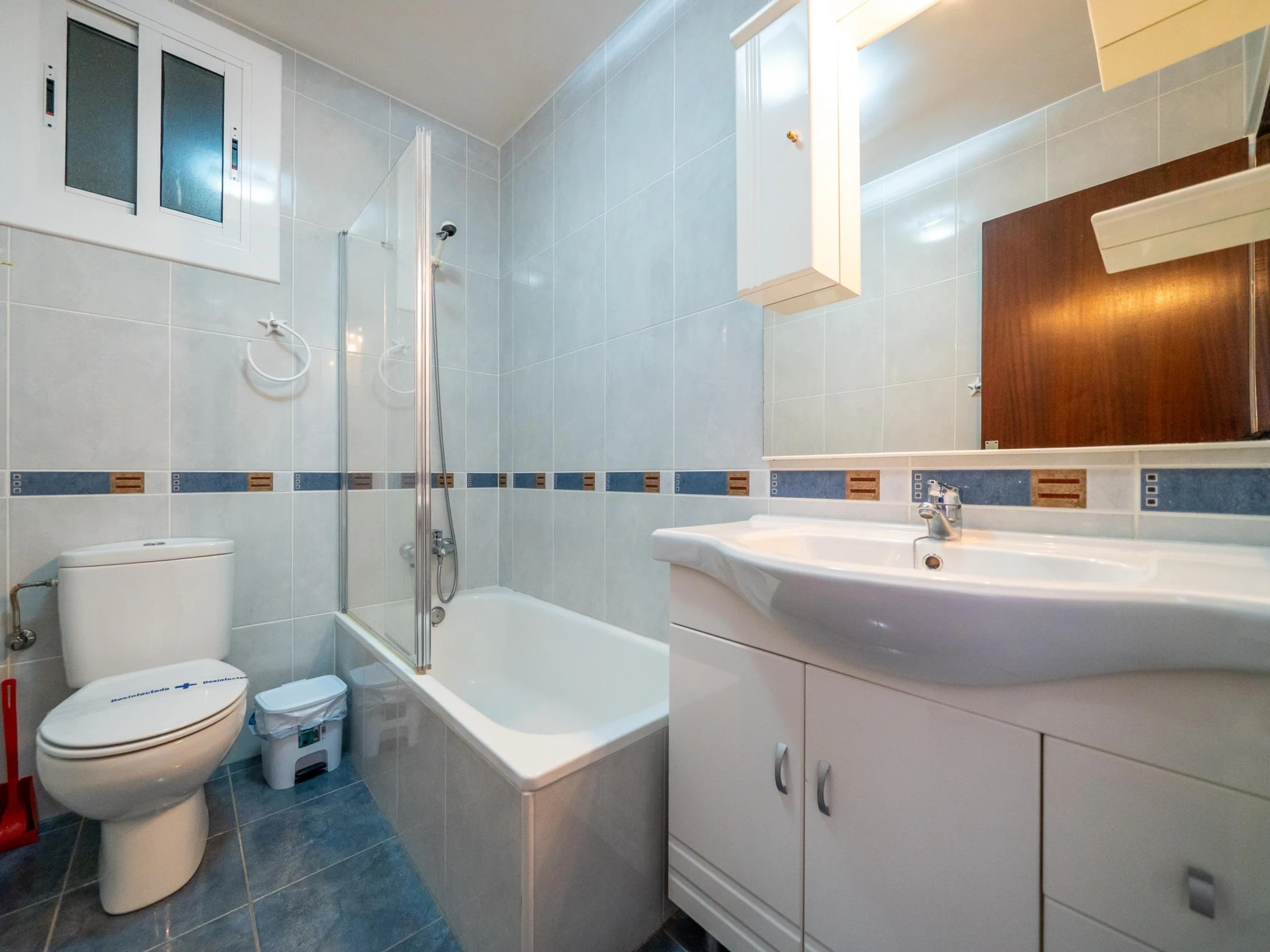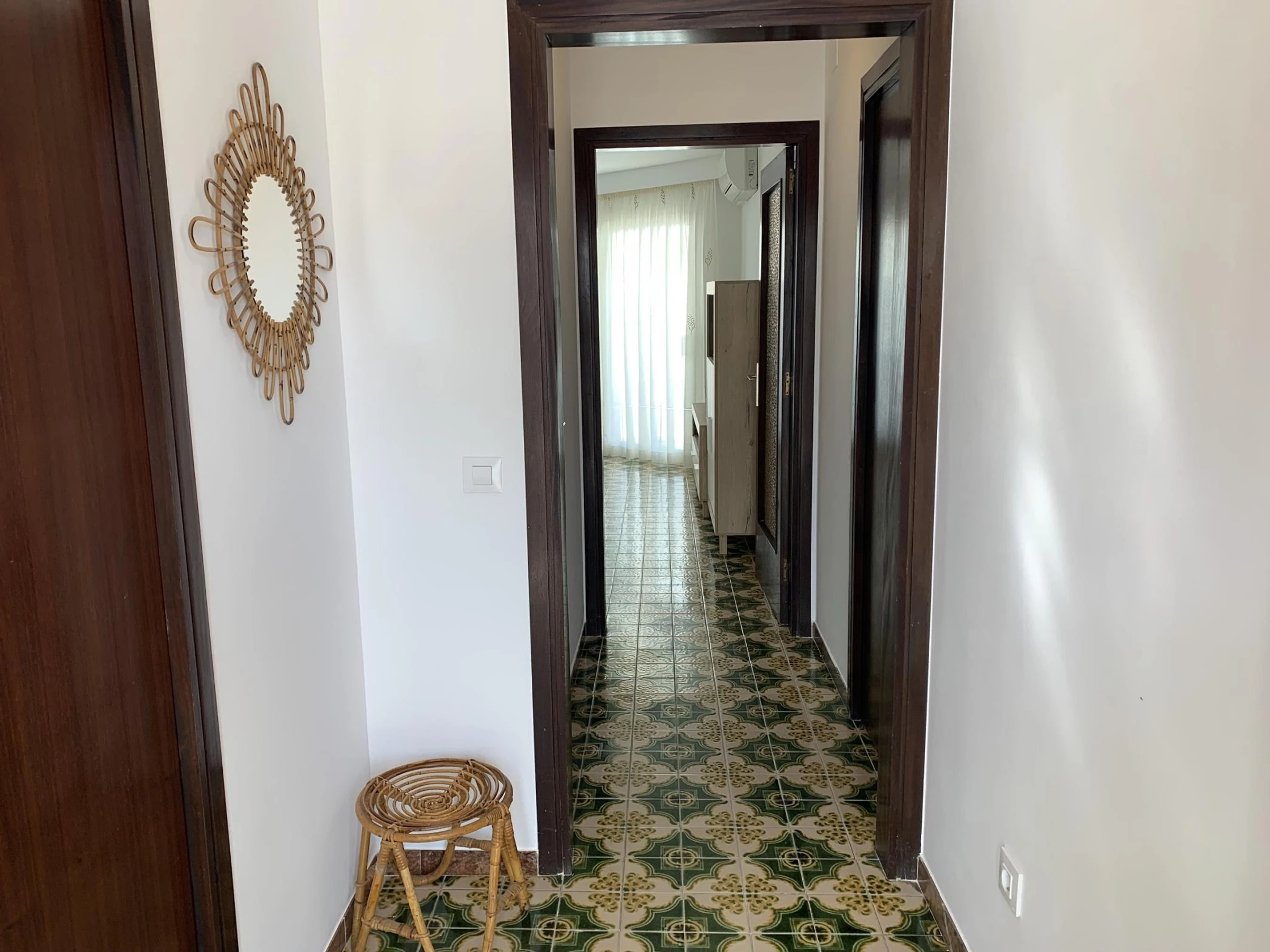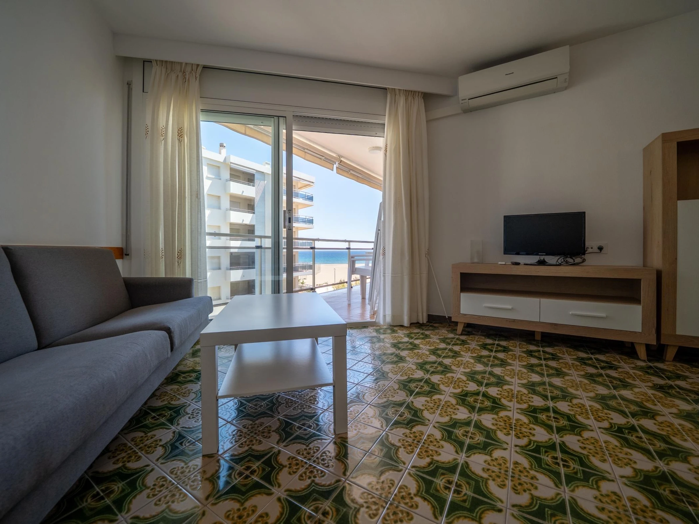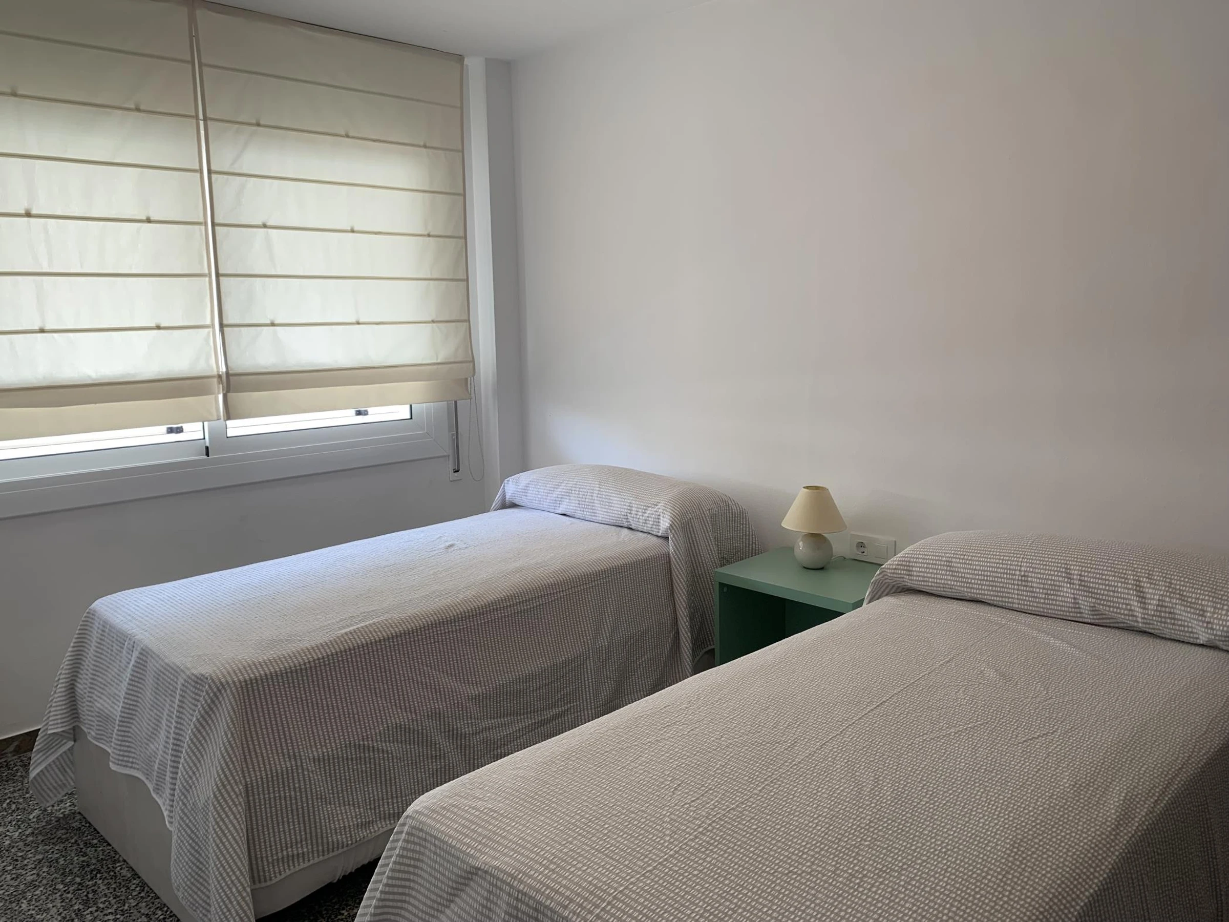 Flat in front of the sea of 60 m2 on the 2nd floor with lift. It has 2 bedrooms (both with single beds and one of them with a trundle bed for children), 1 bathroom with bathtub and fully equipped kitchen. It also has air conditioning in the dining room, balcony with good sea views and communal area without swimming pool (there is a shower to wash off the sand from the beach). It also has Wifi and an undergound parking space. The flat also includes bed linen and bath towels.