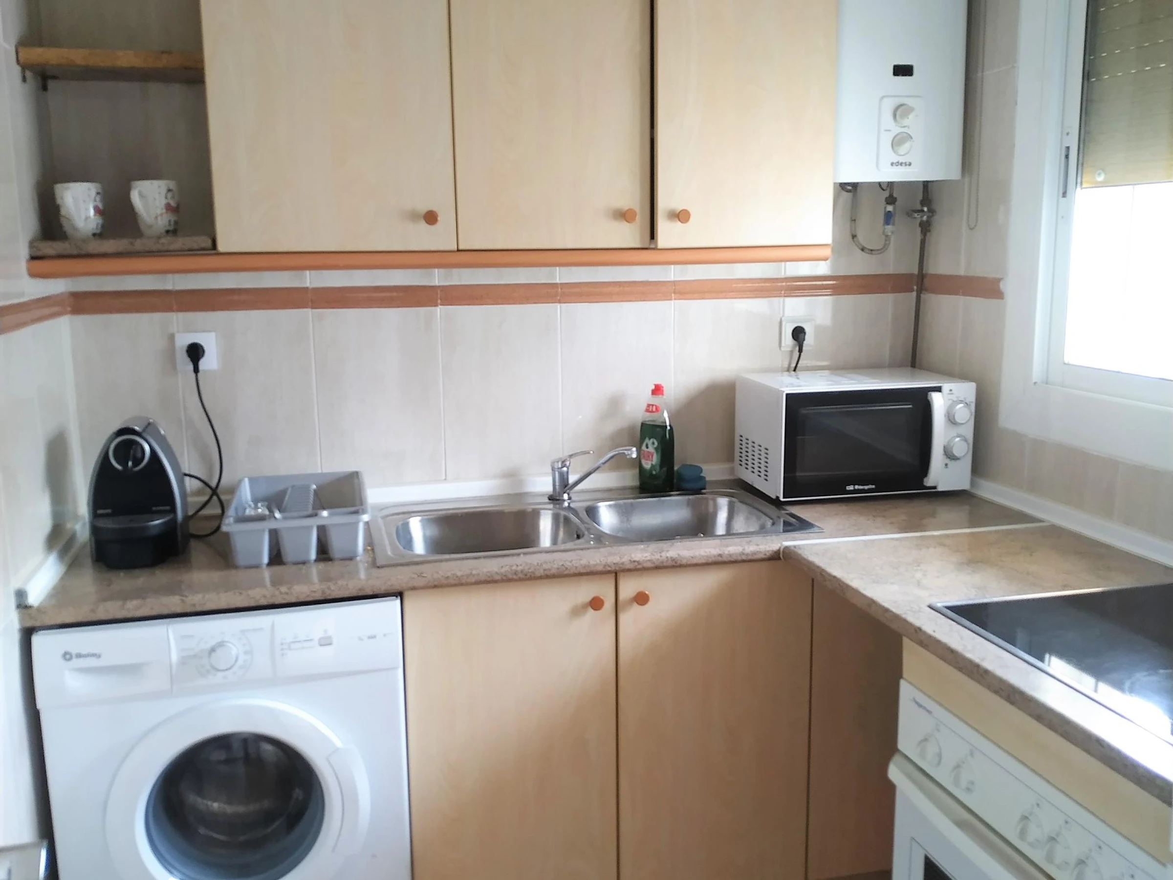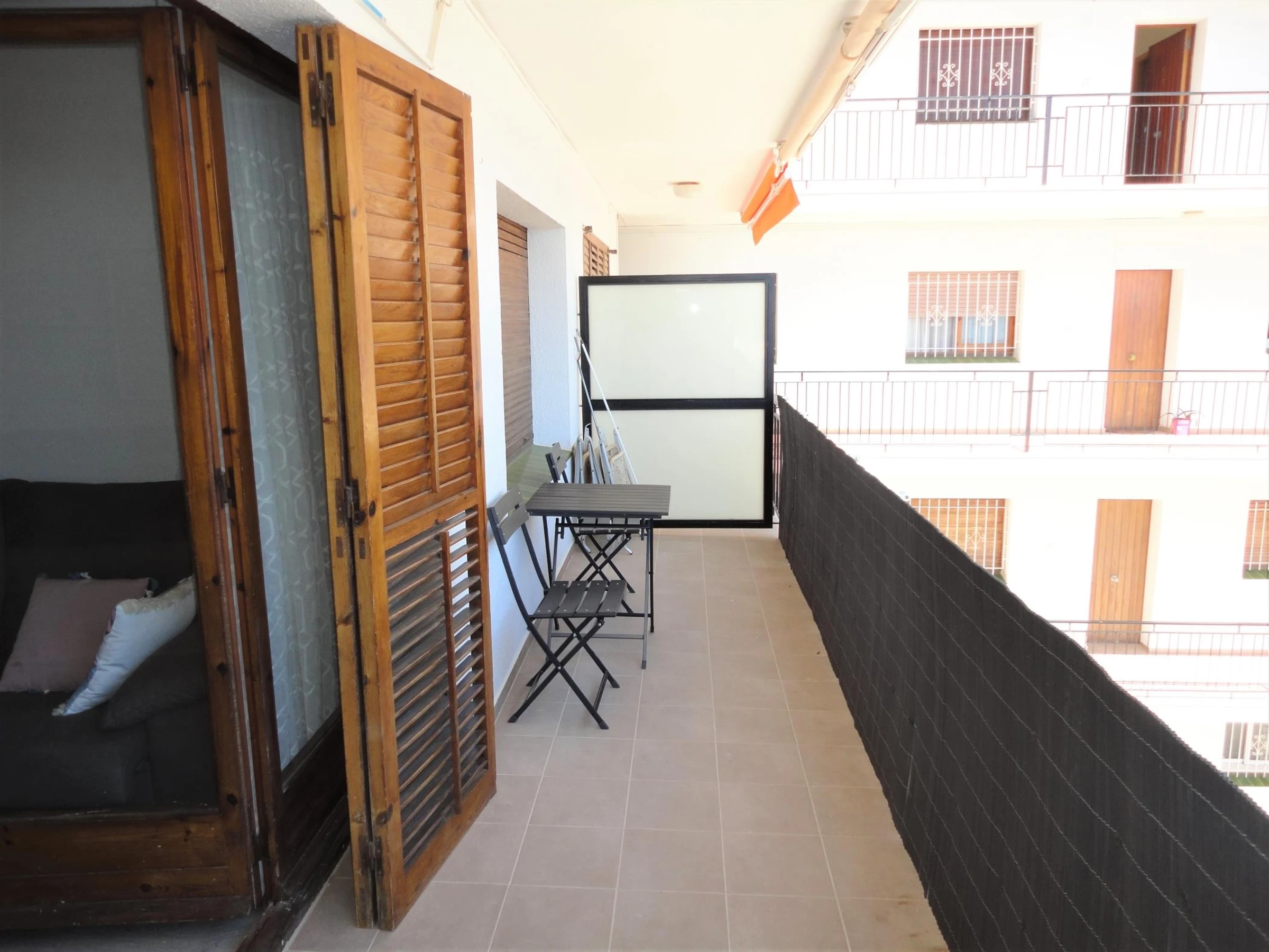 Renovated flat 150 meters from the sea of 40 m2 on the 4th floor with lift. It has 1 bedroom with large double bed, bathroom with shower and fully equipped kitchen. In addition, it has 2 fans (one in the bedroom and one in the dining room), flat screen TV, internet connection with fibre optic and Wifi. It also has a terrace with lateral sea views, communal parking without guaranteed parking space and a communal area without swimming pool, but with showers to wash off the sand from the beach. The flat also includes bed linen and bath towels.