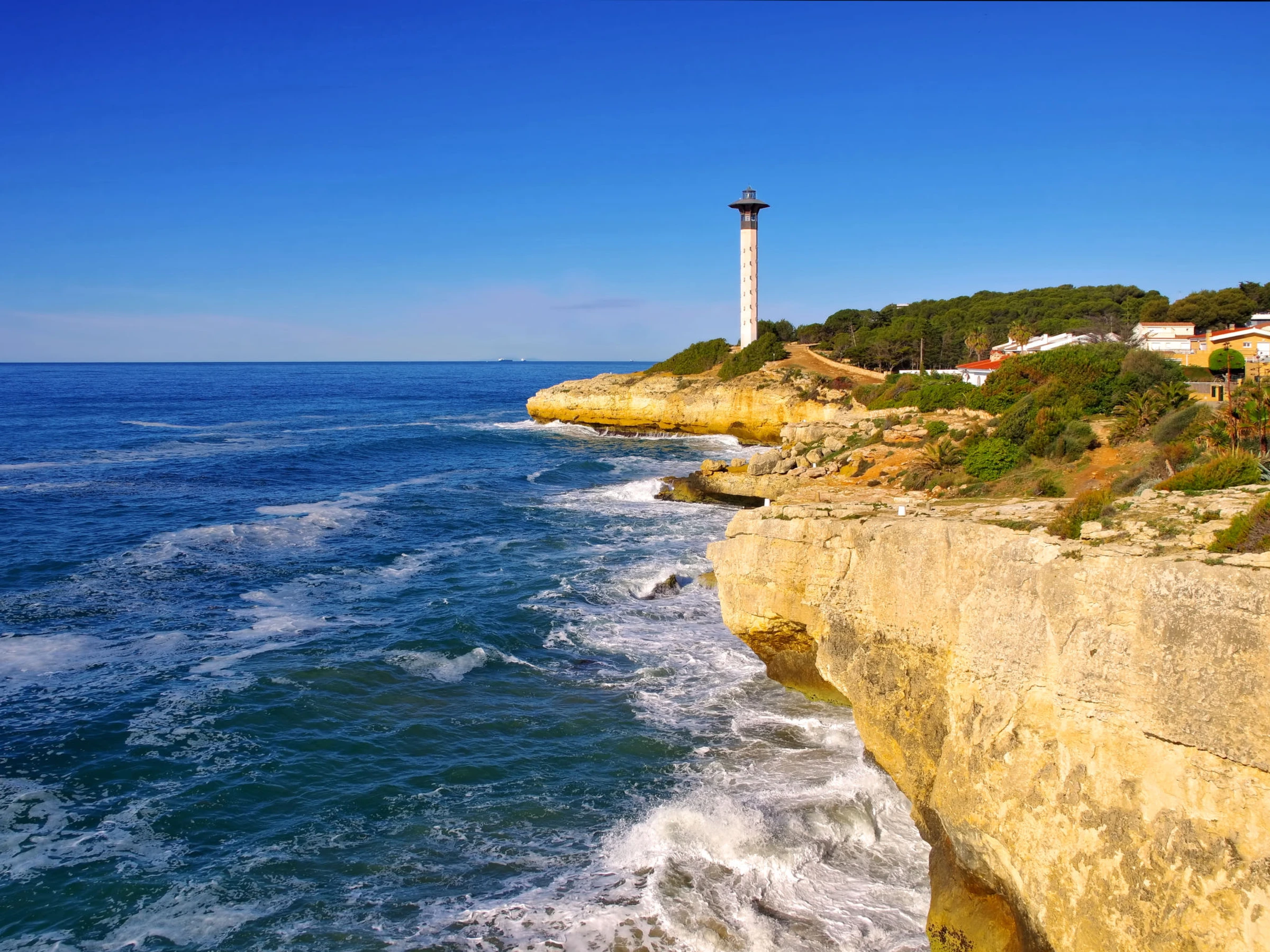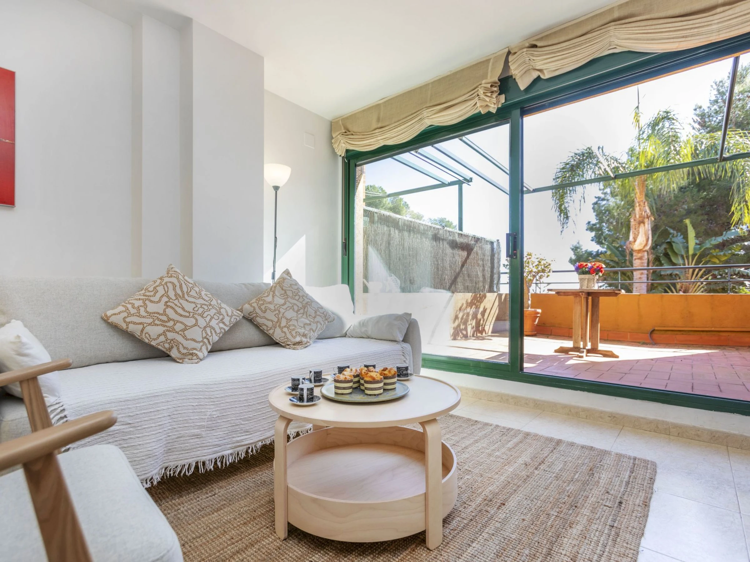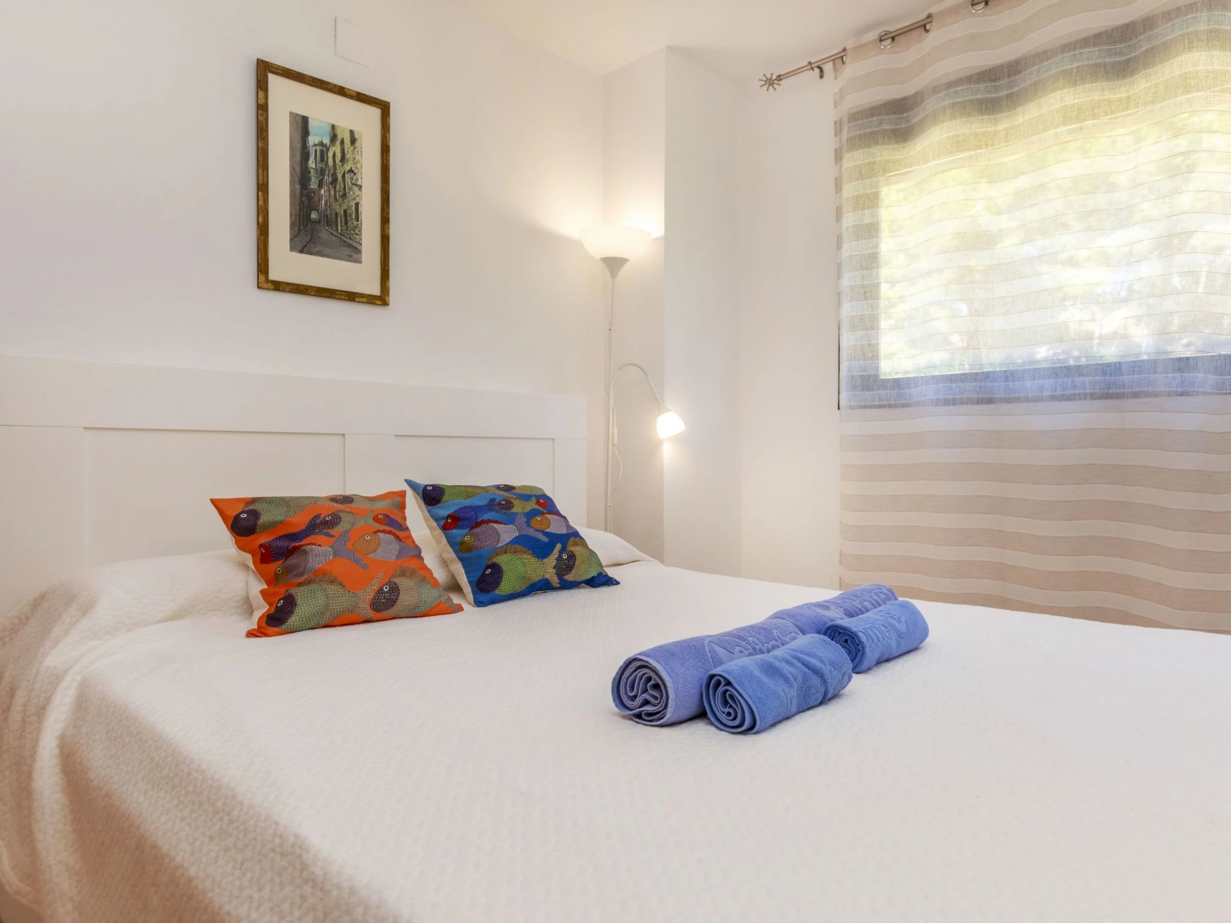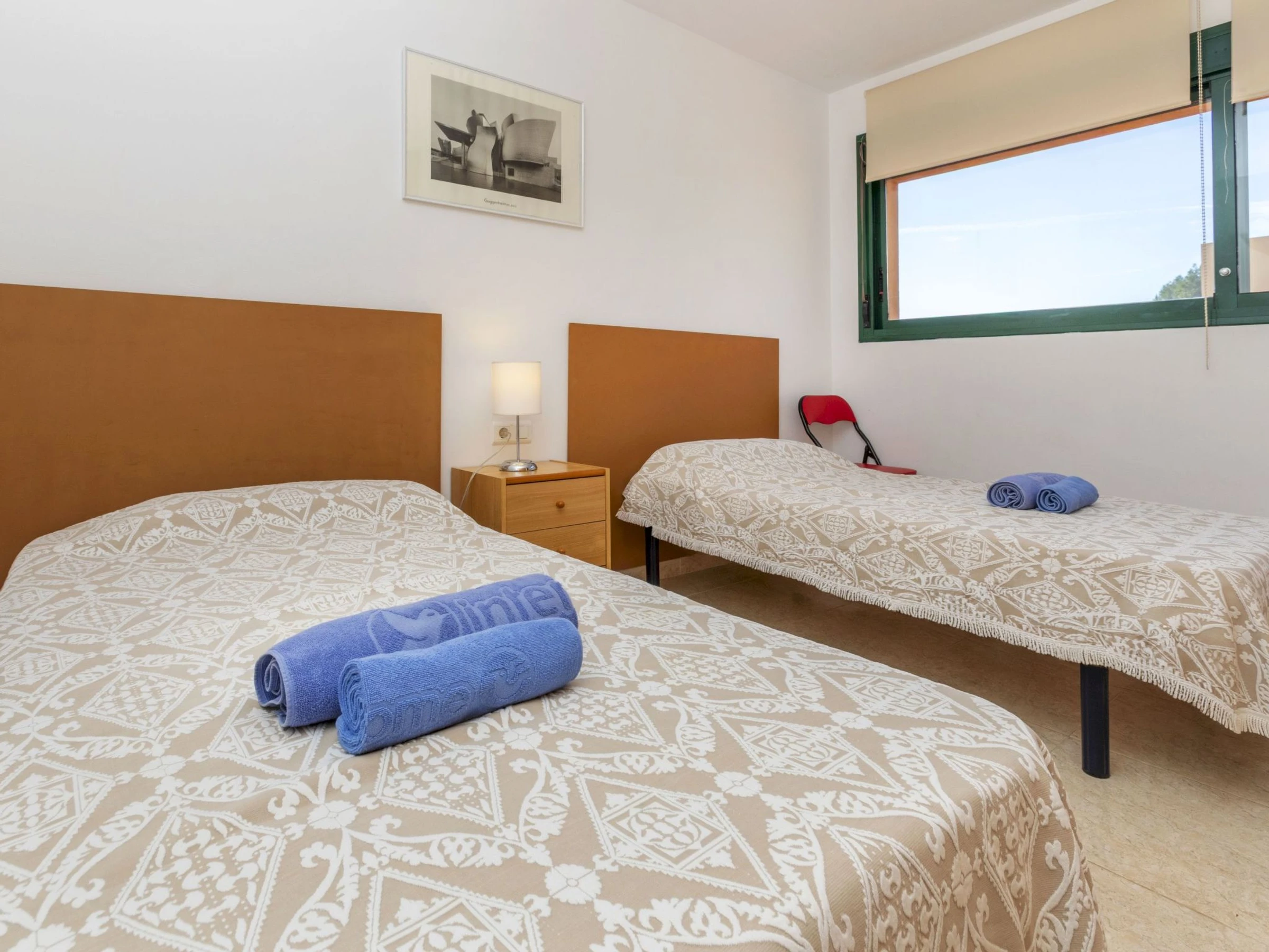 Tamarit 13 km from Tarragona: Very beautiful, comfortable terraced house "Vistamar", 2 storeys, semi-detached. 20 houses in the resort. In the district of Tamarit - La Mora, outside the resort, 13 km from the centre of Tarragona, in a quiet, sunny, elevated position residential area (villas), 10 m from the edge of the forest, 1 km from the sea, 1 km from the beach, in a cul-de-sac. For shared use: garden (fenced) with lawn, swimming pool kidney-shaped (seasonal availability: [hidden] - [hidden] pool opening hours: 10:00-22:00). Outdoor shower. Private: beautiful garden with lawn and trees. In the house: WiFi. Public parking on the road. Shop 1.4 km, grocery 1.4 km, supermarket 2.3 km, shopping centre 2.3 km, restaurant 1.4 km, bar 1.4 km, bakery 1.4 km, café 1.4 km, bus stop "Passeig de l'Esquirol" 350 m, railway station "AVE Camp de Tarragona" 25 km, sandy beach "Tamarit" 1.4 km. Sports harbour 6 km, marina 6 km, golf course (19 hole) 8 km, surf school 4 km, tennis 1 km, riding stable 11 km. Nearby attractions: Port Aventura 25 km, Aquopolis 25 km, Parque de aventura Jungle Trek 200 m, Pista de básquet y fútbol 800 m. Hiking paths: El Medol 3 km. Please note: car recommended. Suitable for families, baby equipment on request (extra). The owner does not accept any youth groups. Loading and unloading of baggage is possible at the holiday house. Neighbourhood highly sensitive to noise. Quietness and good behaviour expected.