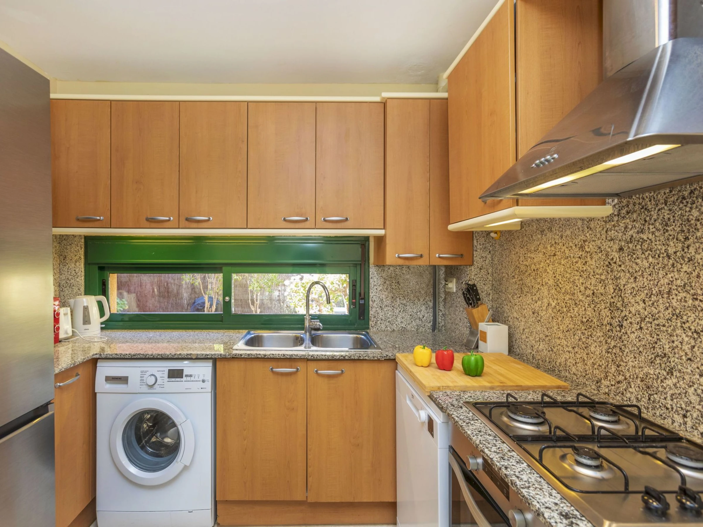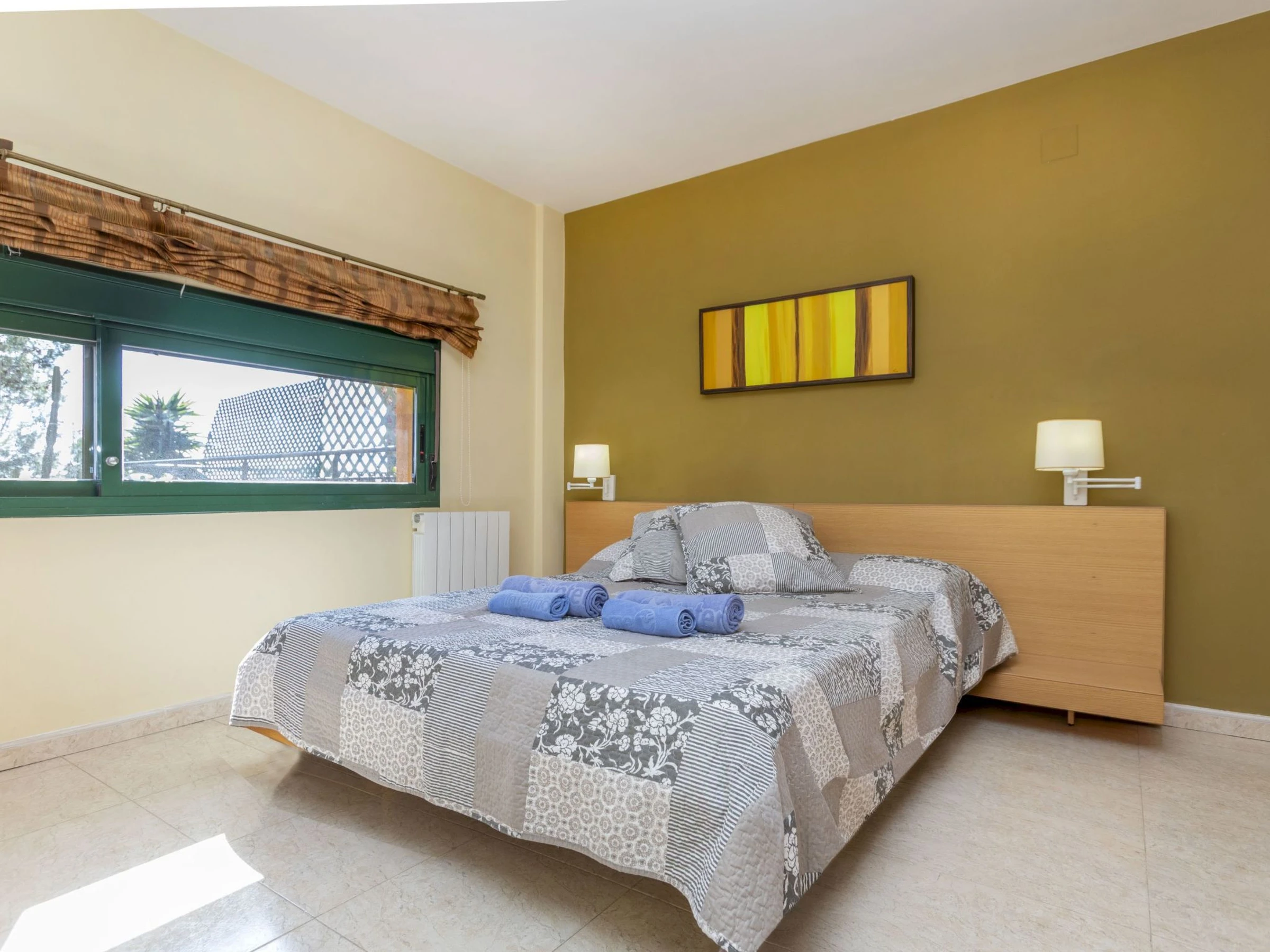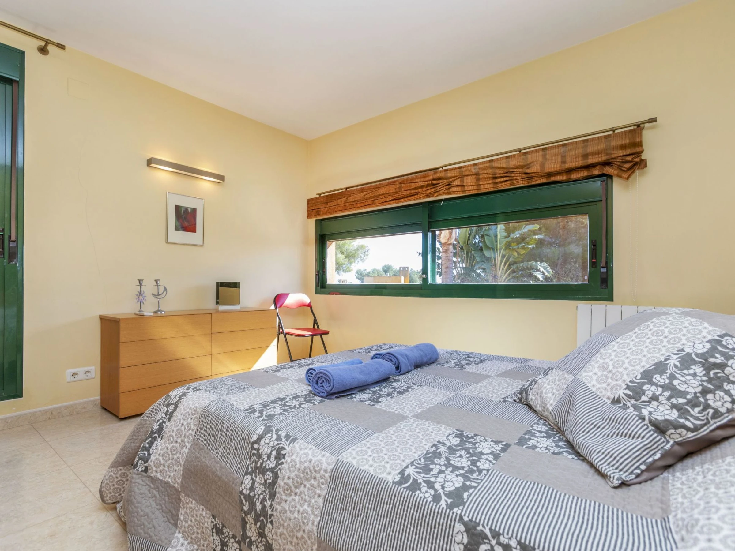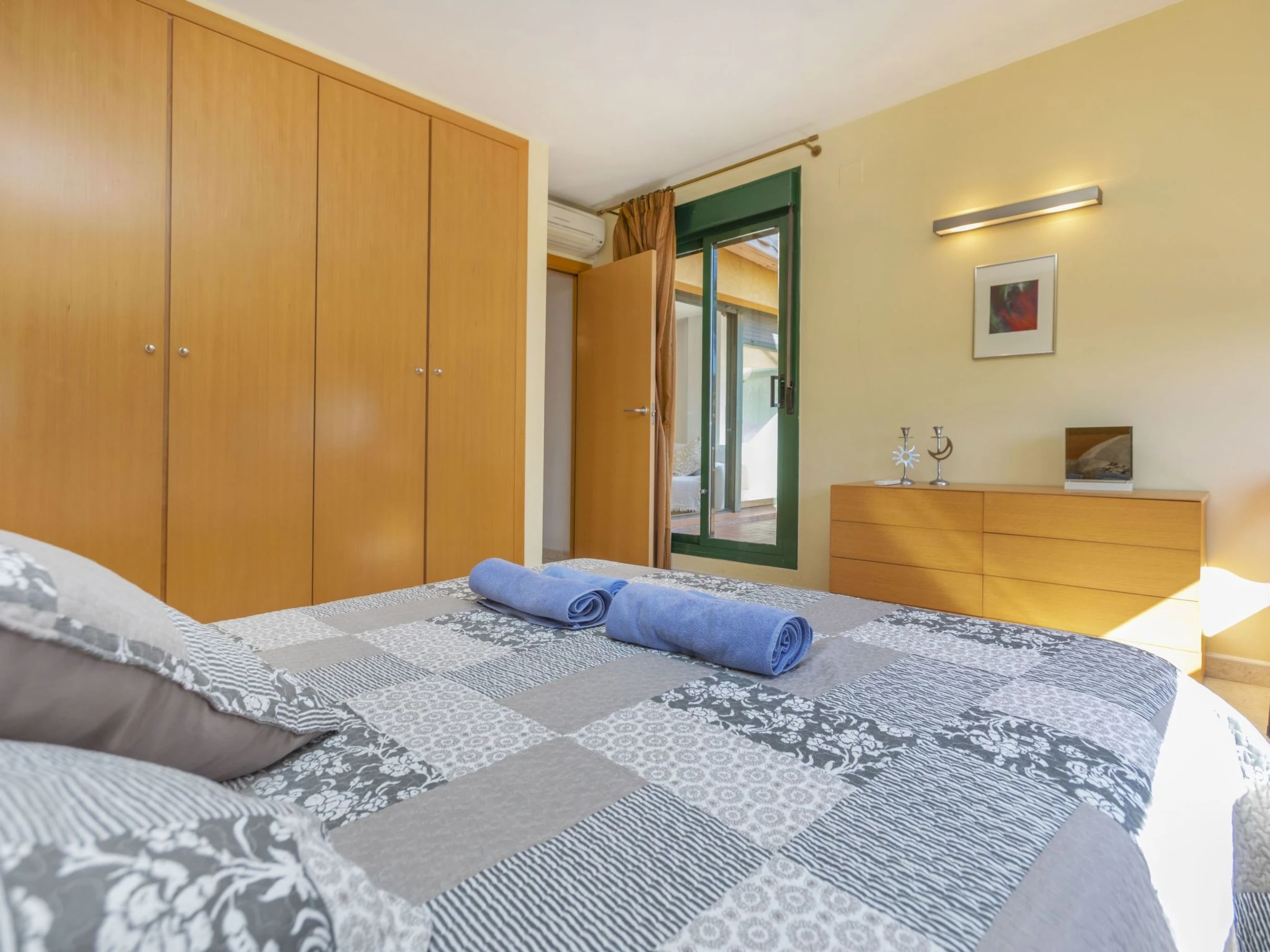 "Vistamar", 4-room terraced house 130 m2 on 2 levels. Object suitable for 4 adults + 2 children. Bright, comfortable and beautiful furnishings: living/dining room with satellite TV, digital TV, flat screen, gas heating, air conditioning and forced-air heating. Exit to the garden, to the terrace. 1 double bedroom with 1 french bed, air conditioning and forced-air heating. Kitchen (4 hot plates, oven, dishwasher, microwave, electric coffee machine, Capsules for coffee machine (Nespresso)). Exit to the garden. Shower/bidet/WC. Gas heating. Upper floor: 1 room with 2 beds, air conditioning and forced-air heating. 1 double bedroom with 1 french bed, air conditioning and forced-air heating. Bath/bidet/WC. Small terrace, large garden, lawn. Terrace furniture, barbecue, deck chairs. Marvellous distant view of the sea and the countryside. Facilities: washing machine, iron, children's high chair, hair dryer. Internet (WiFi, free). Please note: suitable for families. Non-smoking house. [hidden] // Reg. Nr.: ESFCTU00004301500057902400000000000000000[hidden]7