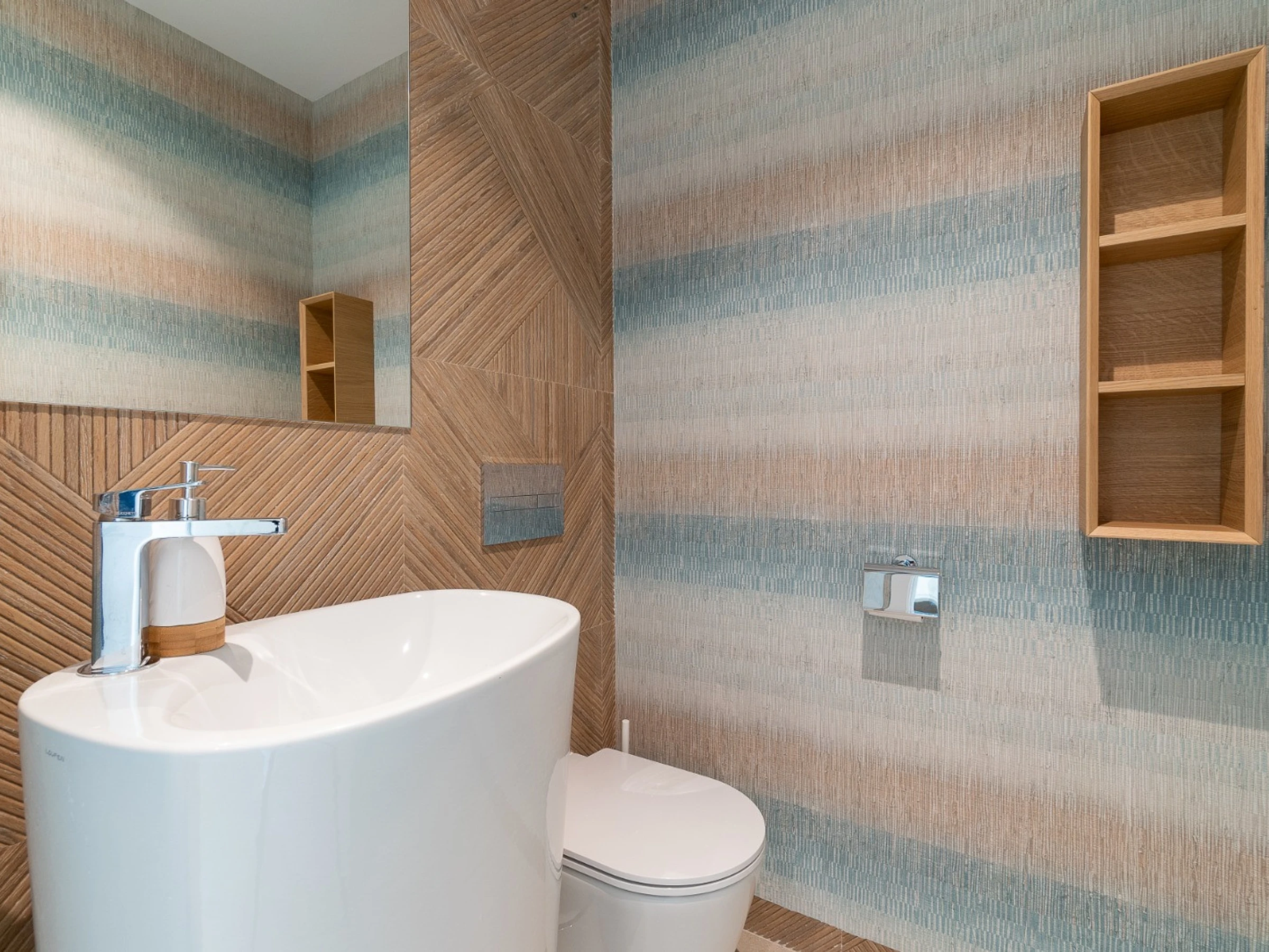 The living room is a nice place to cool down after a warm beach day, with comfortable furniture, television and Wi-Fi. The kitchen is fully equipped, ideal for cooking something yourself or making a quick lunch before heading back to the beach or the boulevard. Thanks to the air conditioning, it remains comfortable inside even during hot summer days.