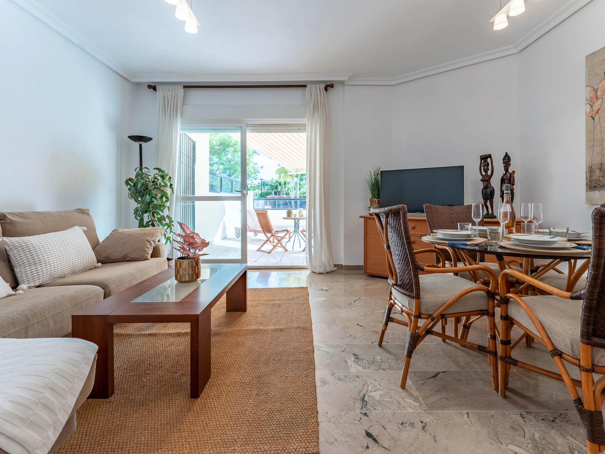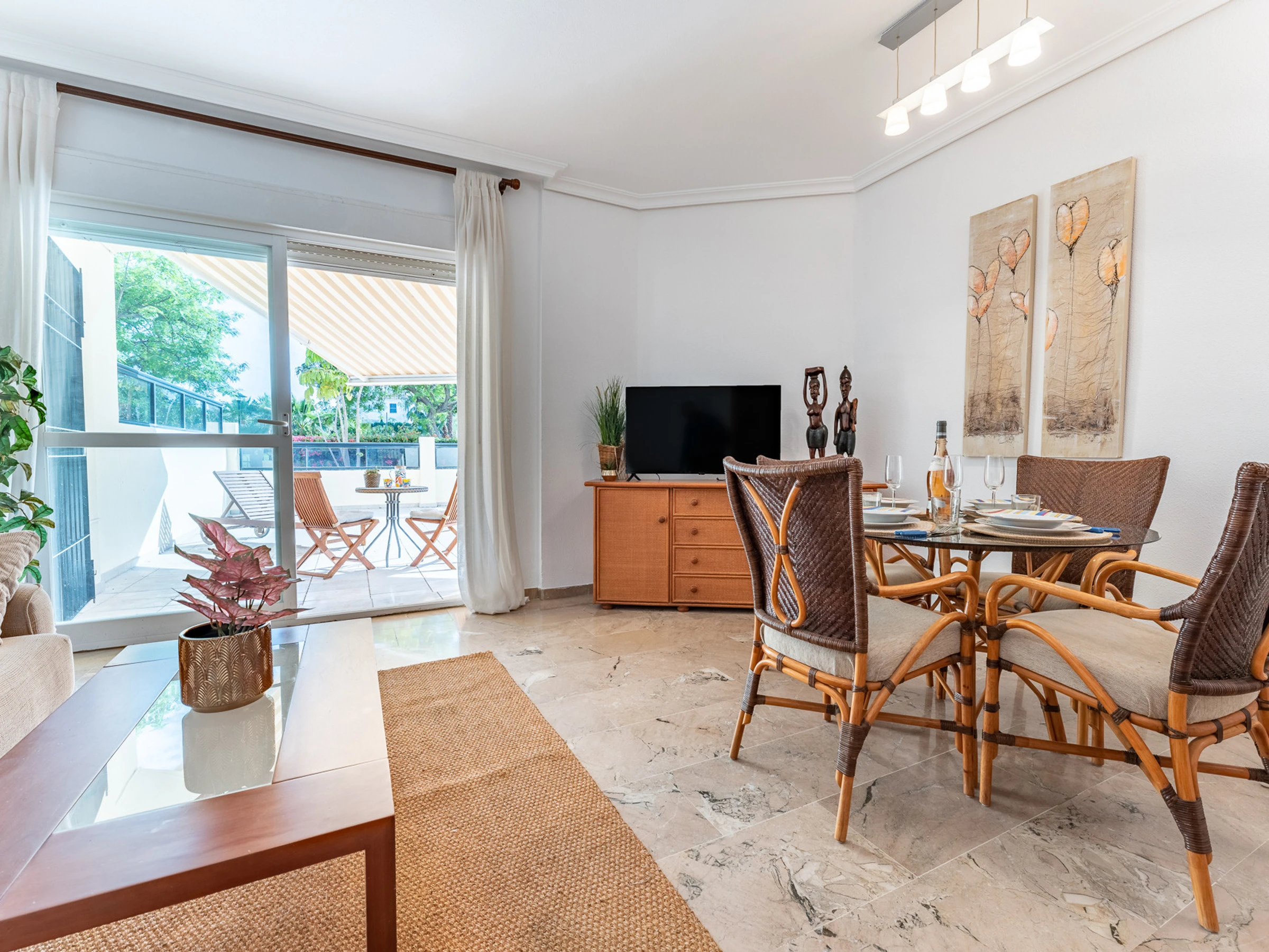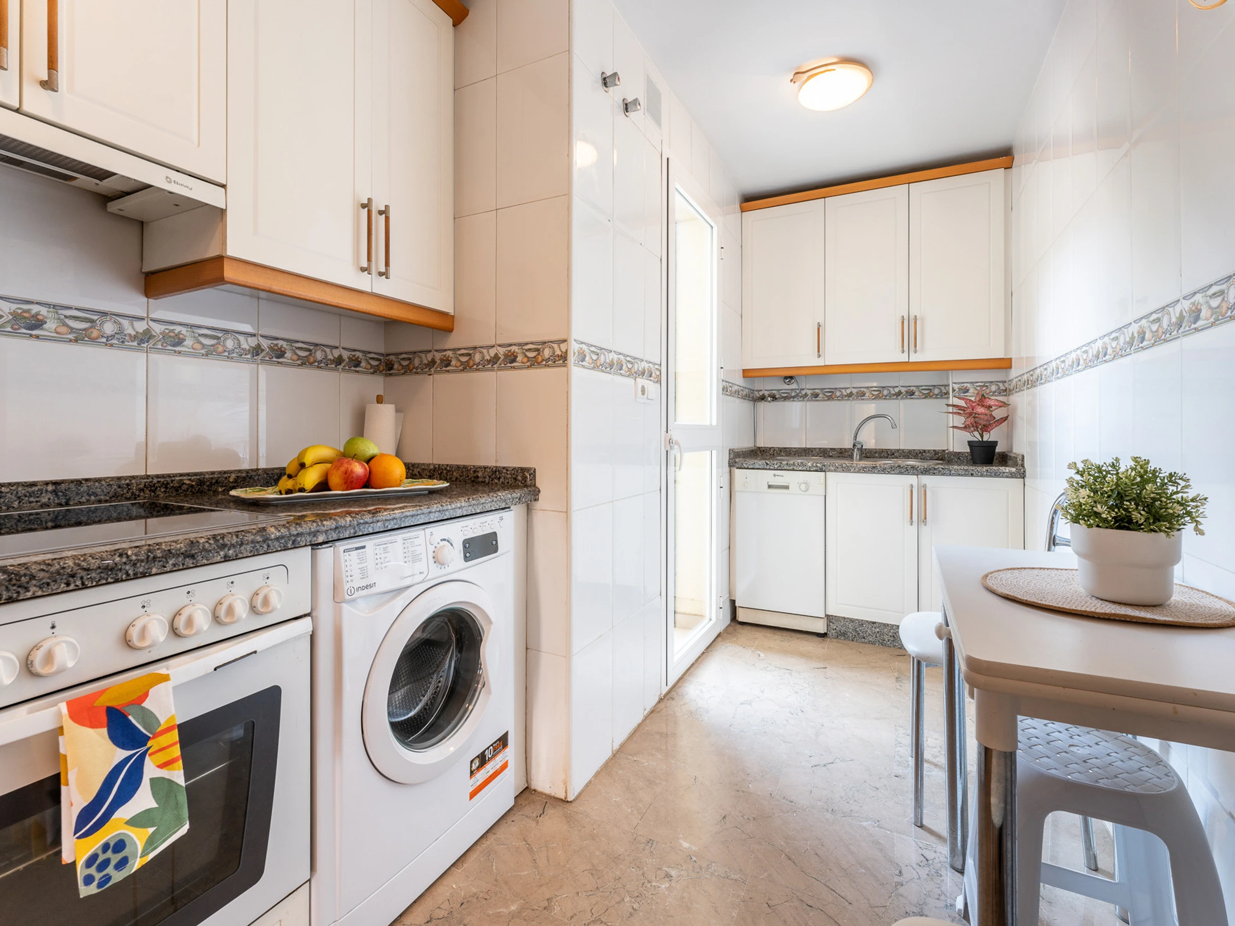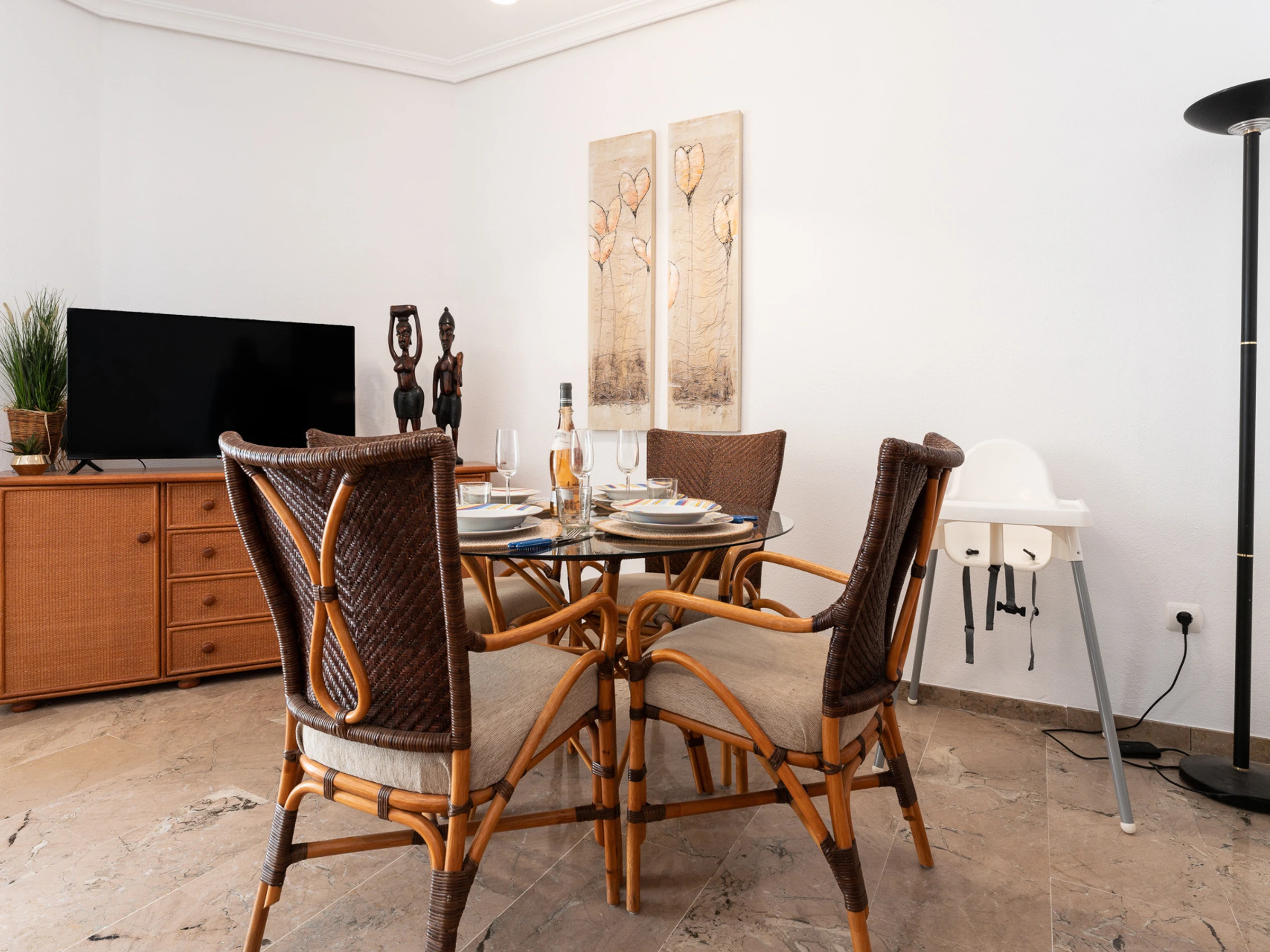 The apartment has a very well furnished living room with television, dining room and a comfortable sofa. In addition, this accommodation has a large terrace, an ideal place to enjoy the outdoors and has garden furniture. The kitchen is fully equipped with a fridge, freezer, oven, microwave, coffee maker, toaster..