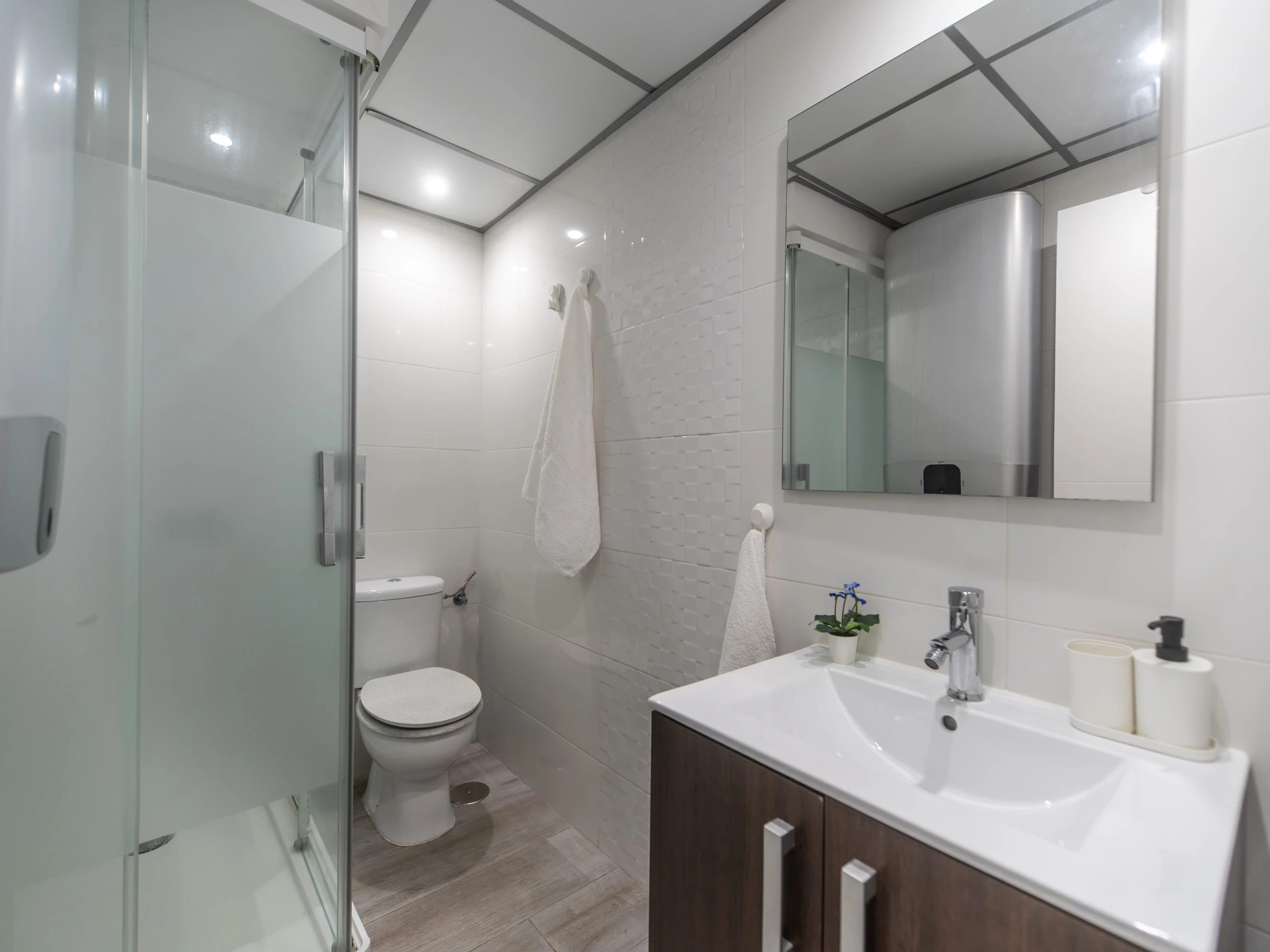 Bathroom with shower. The apartment also has air conditioning and central heating to ensure your comfort throughout the year.