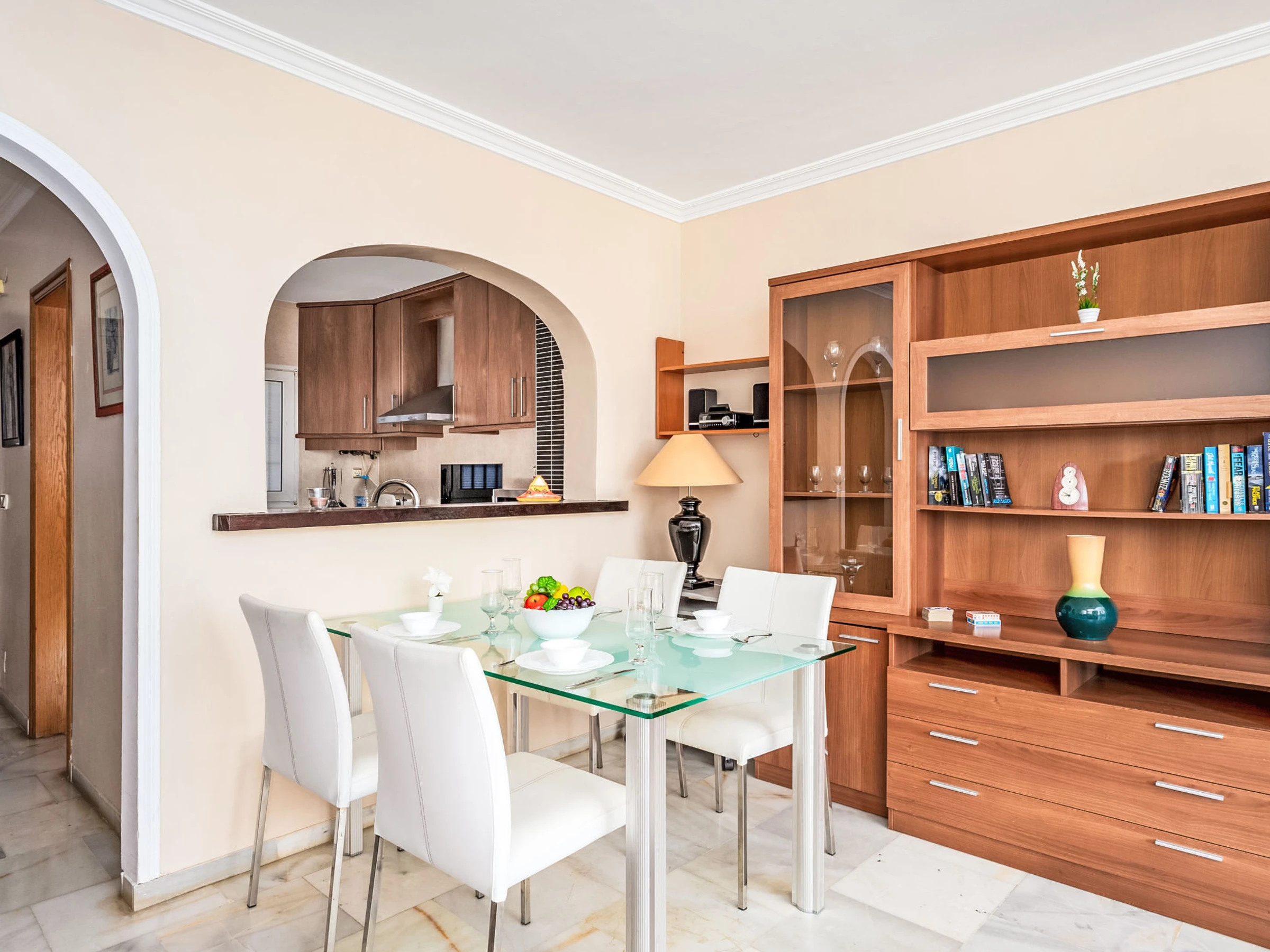 3-room apartment 92 m2 on 1st floor. Object suitable for 4 adults + 1 child. Comfortable and cosy furnishings: living/dining room with digital TV, flat screen and air conditioning. Exit to the terrace. 1 room with 1 french bed. 1 room with 2 beds (90 cm), 1 folding bed. Kitchen (oven, 3 ceramic glass hob hotplates, microwave, freezer) with dining table. Bath/WC. Heating, air-conditioning. Terrace furniture. Panoramic view. Facilities: washing machine. Parking. Suitable for families. [hidden] // Reg. Nr.: ESFCTU0000290210005080320000000000000000[hidden]7