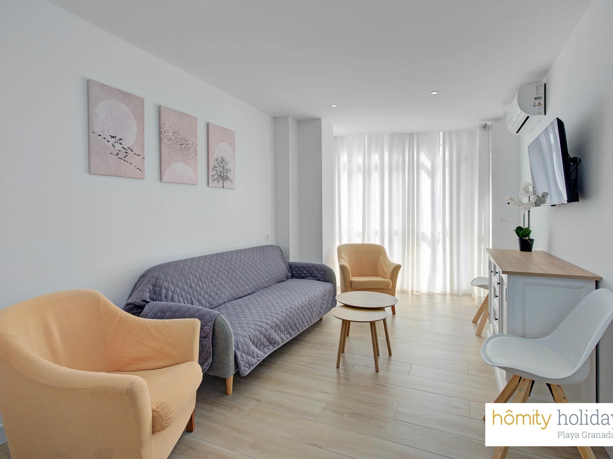 The accommodation has a 2 m² terrace, washing machine, iron, internet access (wifi), hairdryer, alarm, heat pump heating, air conditioning, two electric mosquito repellent devices and television.