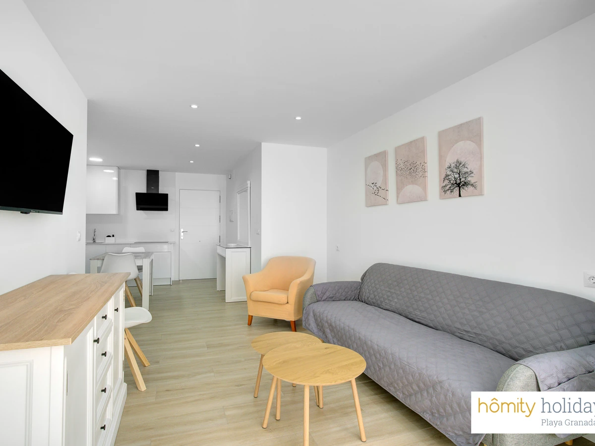 It is located in a quiet area and next to the sea, just 55 m from the supermarket, 200 m from the rocky beach Playa Torrenueva, 100 km from the Sierra Nevada ski resort and 100 km from Málaga international airport