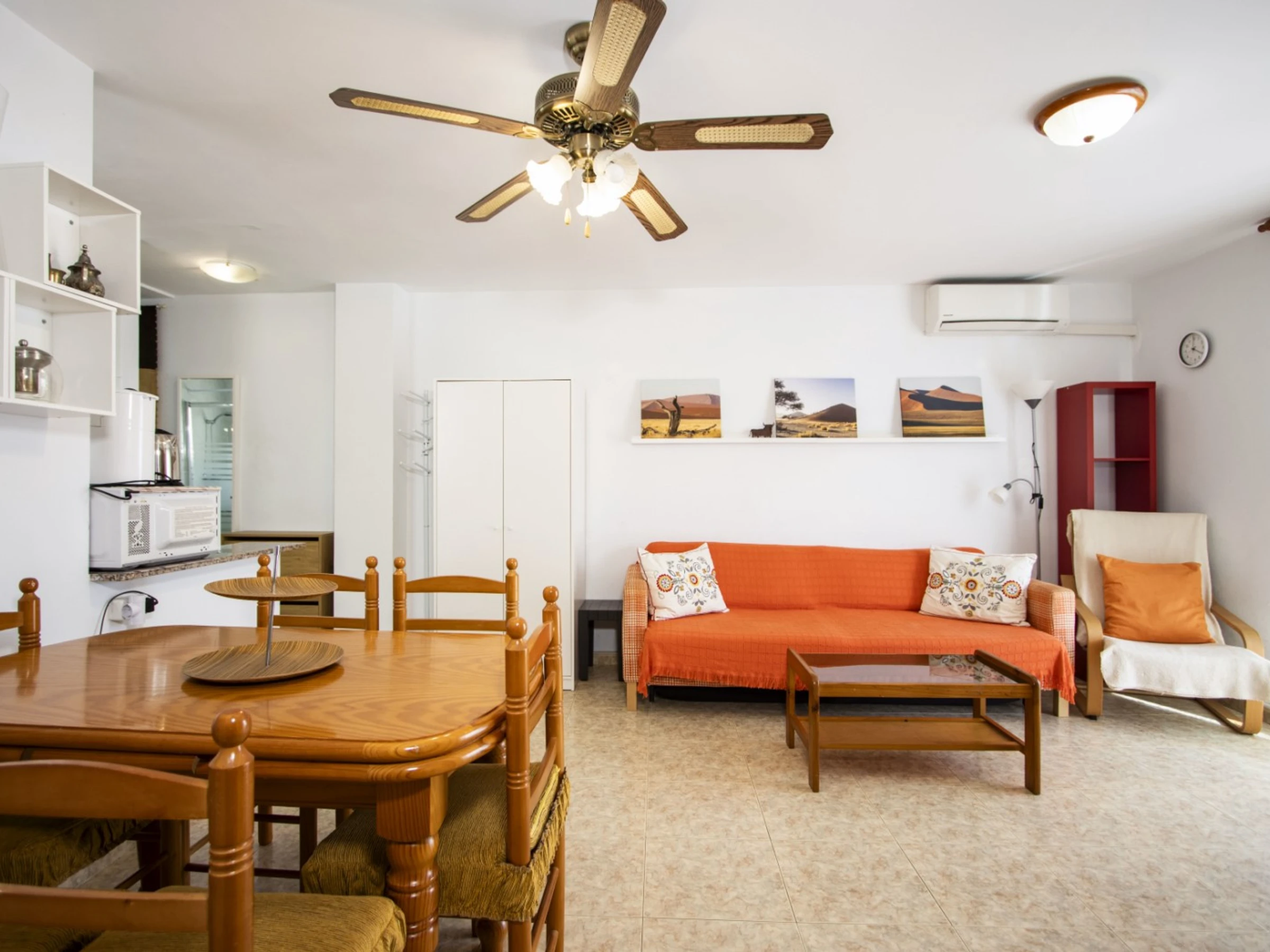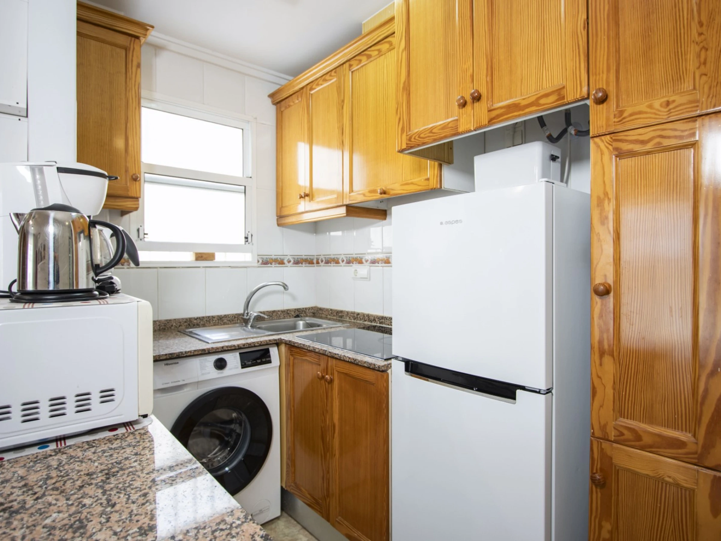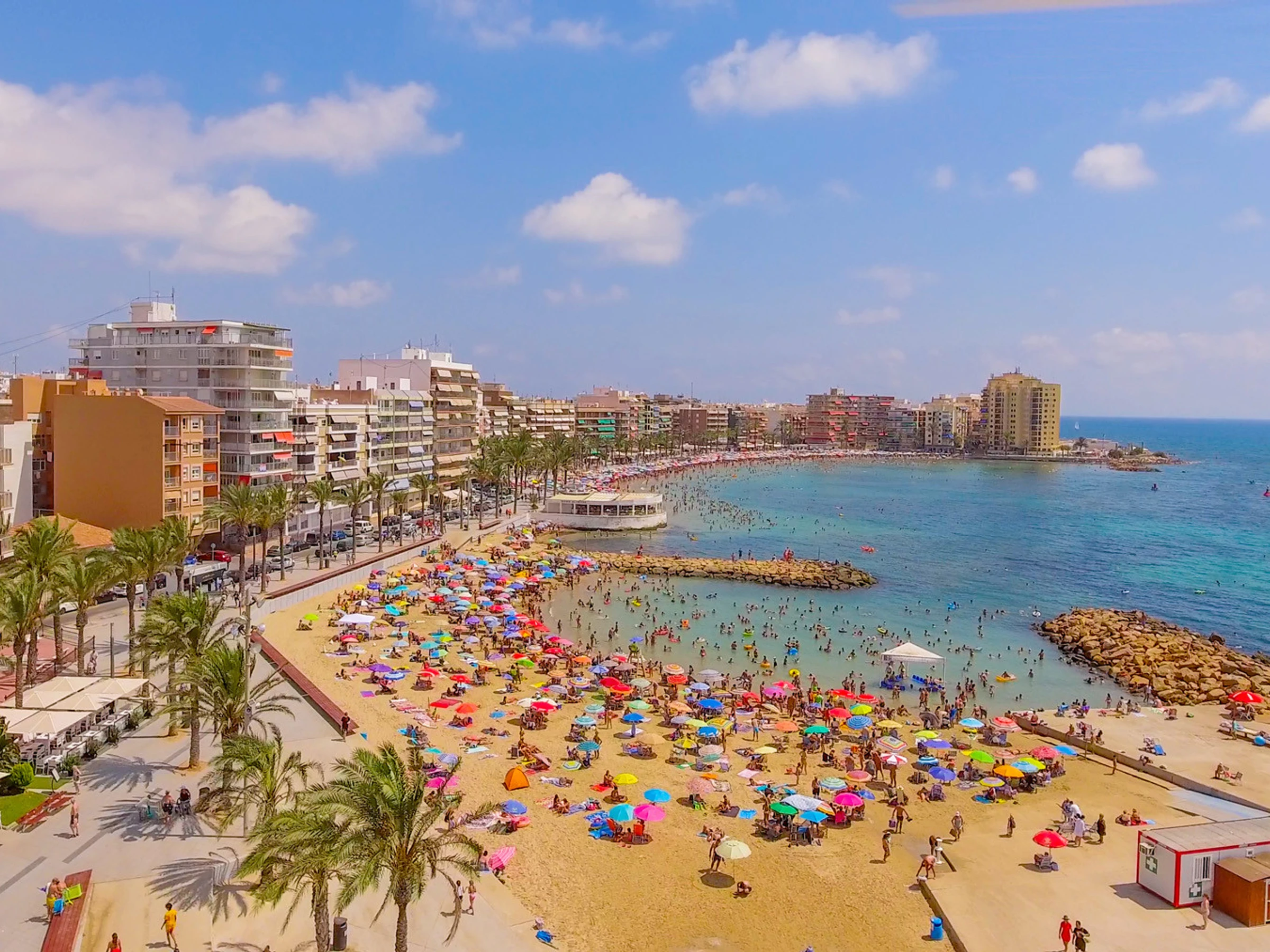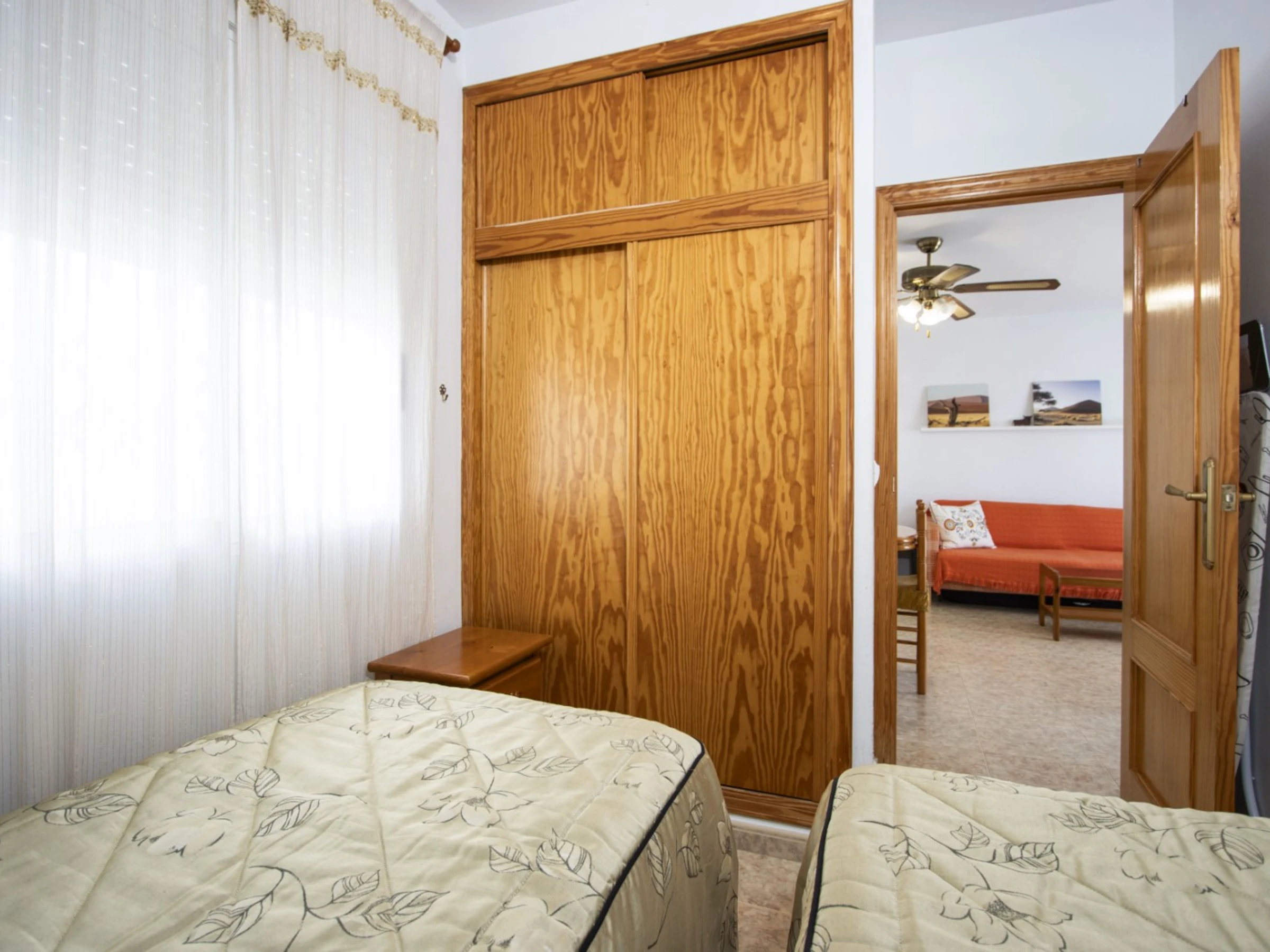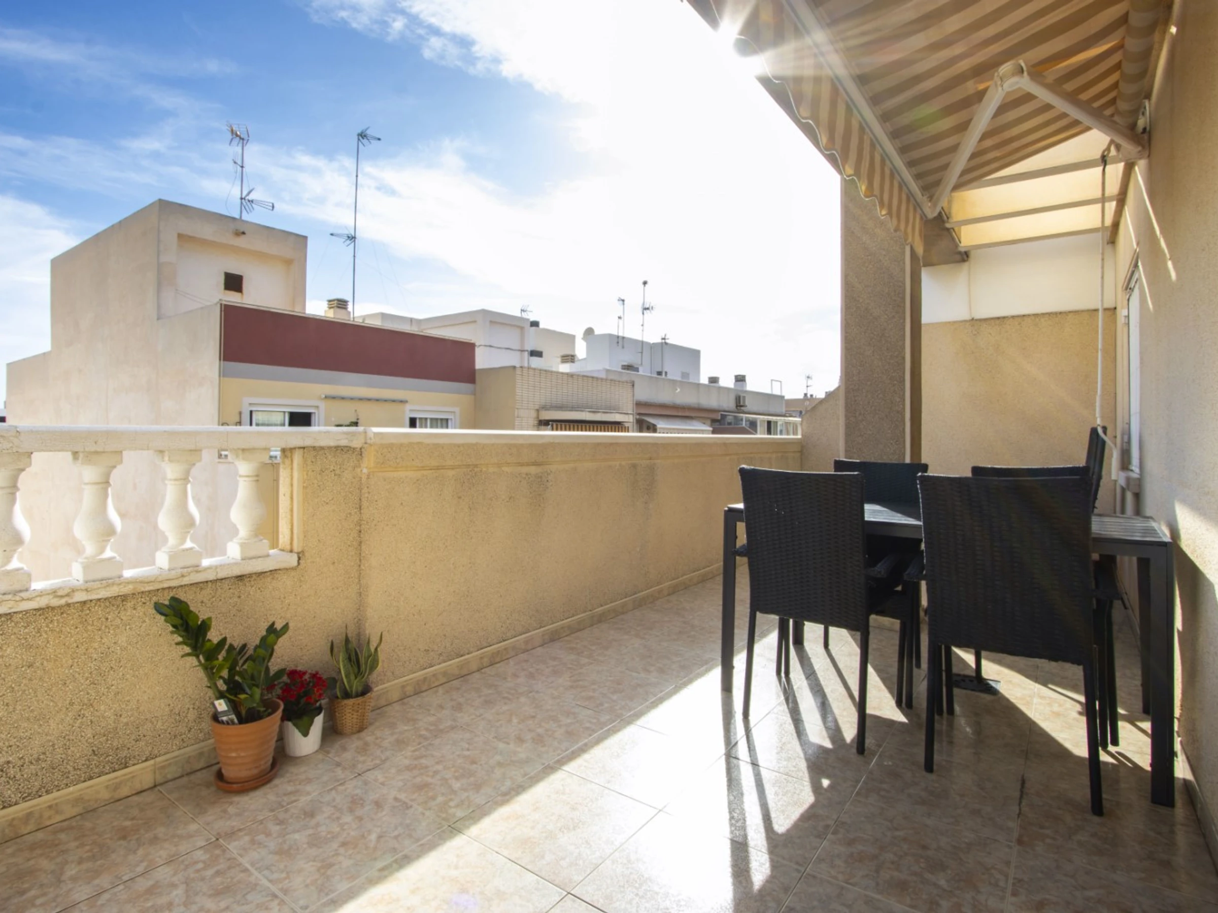 Spacious penthouse with a large terrace in the centre of Torrevieja. It is spread out over 65 m2 and consists of a large living room, two bedrooms, kitchen, bathroom and a nice terrace which can be used as a solarium and a place for the whole family to relax and enjoy the Spanish sunshine. The apartment sleeps up to 5 people. It is equipped with furniture, linen, dishes, appliances, fan, TV, air conditioning. Within easy walking distance of many restaurants, bars, shops, a pharmacy, supermarket, bus stop and much more local amenities . The blue flag beach of Del Cura beach is only 200 meters away. The location of the apartment gives you the benefit to take a walk through the traditional city streets complete with its tapas bars, cafes, many restaurants and marinas.