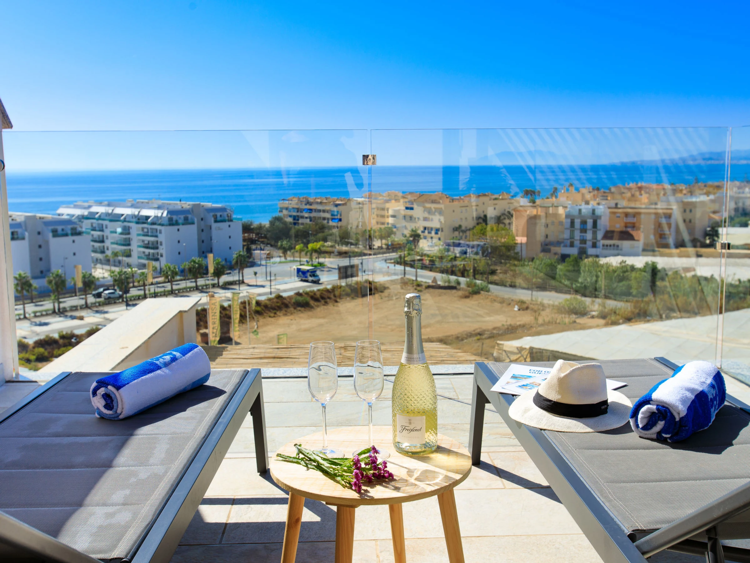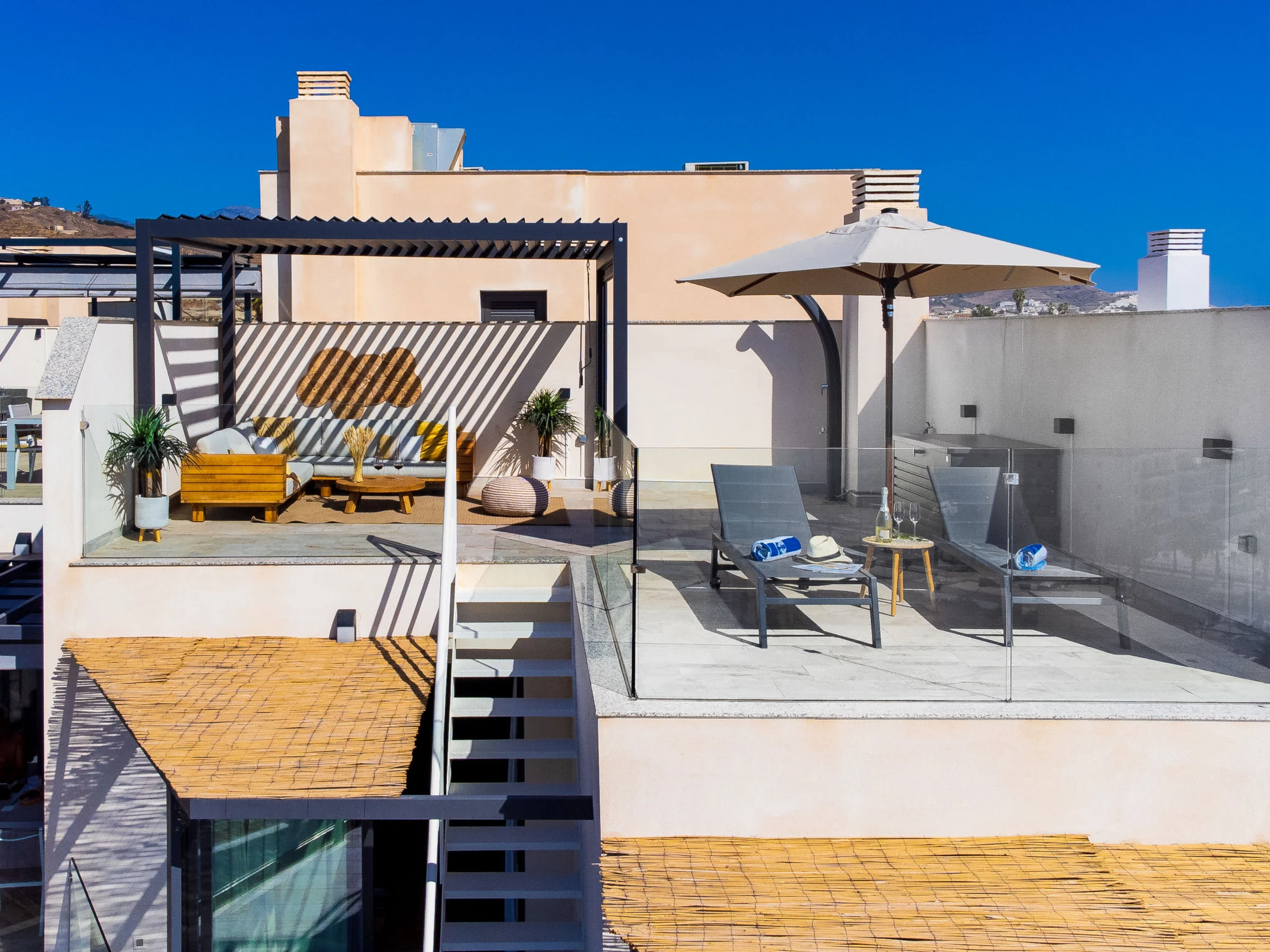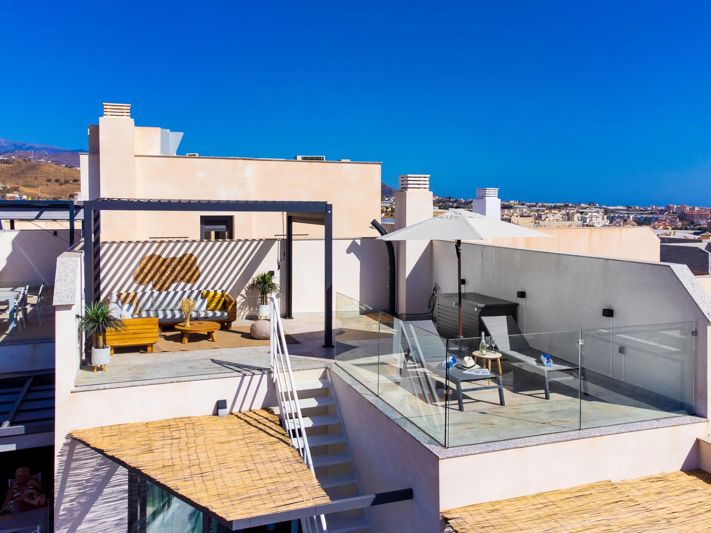 Torrox Costa: The property has: Wifi, community pool, air conditioning / hot air heating, smart tv and community parking space. In the bathroom there is a washer and dryer. Kitchen is very well equipped with: oven, microwave, dishwasher, wine fridge, fridge/freezer, blender, juicer, kettle, electric coffee maker. On the terrace in front of the living room there is a large table and chairs. The roof terrace has two sun loungers, parasols, an outdoor shower, a pergola covers a comfortable sofa. Beautiful, comfortable apartment block "Marinsa Beach Sea View/Roof Terrace". In a sunny position, [hidden] m from the sea, [hidden] m from the beach. For shared use: lawn for sunbathing, swimming pool angular (10 x 4 m, depth [hidden] - [hidden] cm, seasonal availability: [hidden] - [hidden] Shower/WC in the pool area, terrace. In the house: internet access, WiFi, solarium, lift, central heating system, air conditioning, burglar alarm system, washing machine, tumble dryer. Roofed, parking space n 12. Shop 1 km, supermarket 1 km, shopping centre 20 km, restaurant [hidden] m, bakery 1 km, pedestrian zone [hidden] m, bus stop "Torrox Costa" [hidden] m, railway station "Malaga" 50 km, ferry "Malaga" 50 km, sandy beach [hidden] m, diving center 12 km. Sports harbour 8 km, marina 8 km, golf course (18 hole) 13 km, surf school 11 km, sailing school 11 km, tennis 11 km. Nearby attractions: Nerja, Frigiliana, Malaga, Competa, Torre del Mar, Almuñecar. Well-known ski regions can easily be reached: Sierra Nevada. Hiking paths: Sierra Almijara, Sierra Tejeda. Please note: baby equipment (included). The owner does not accept any youth groups. Loading and unloading of baggage is possible at the holiday house.