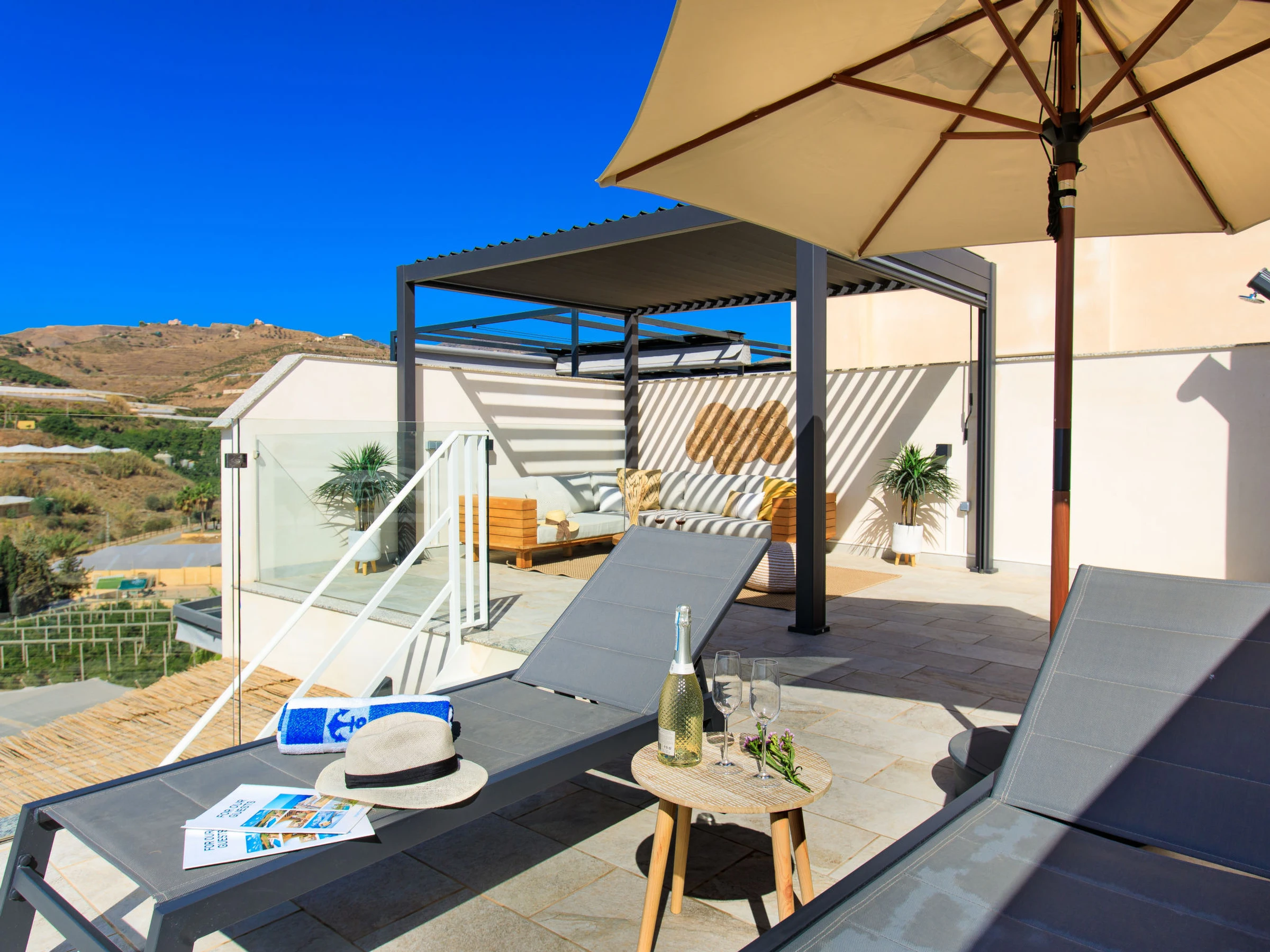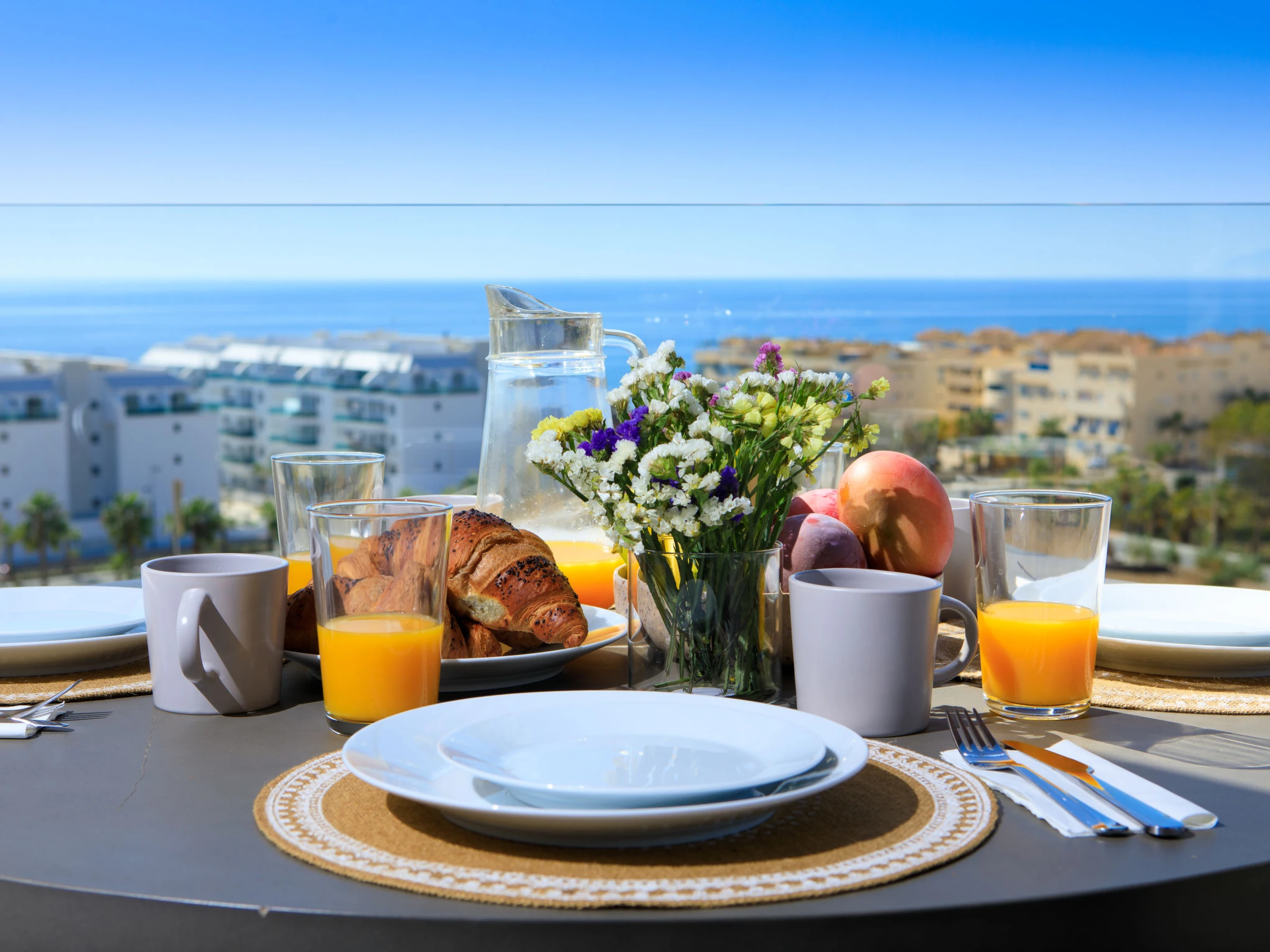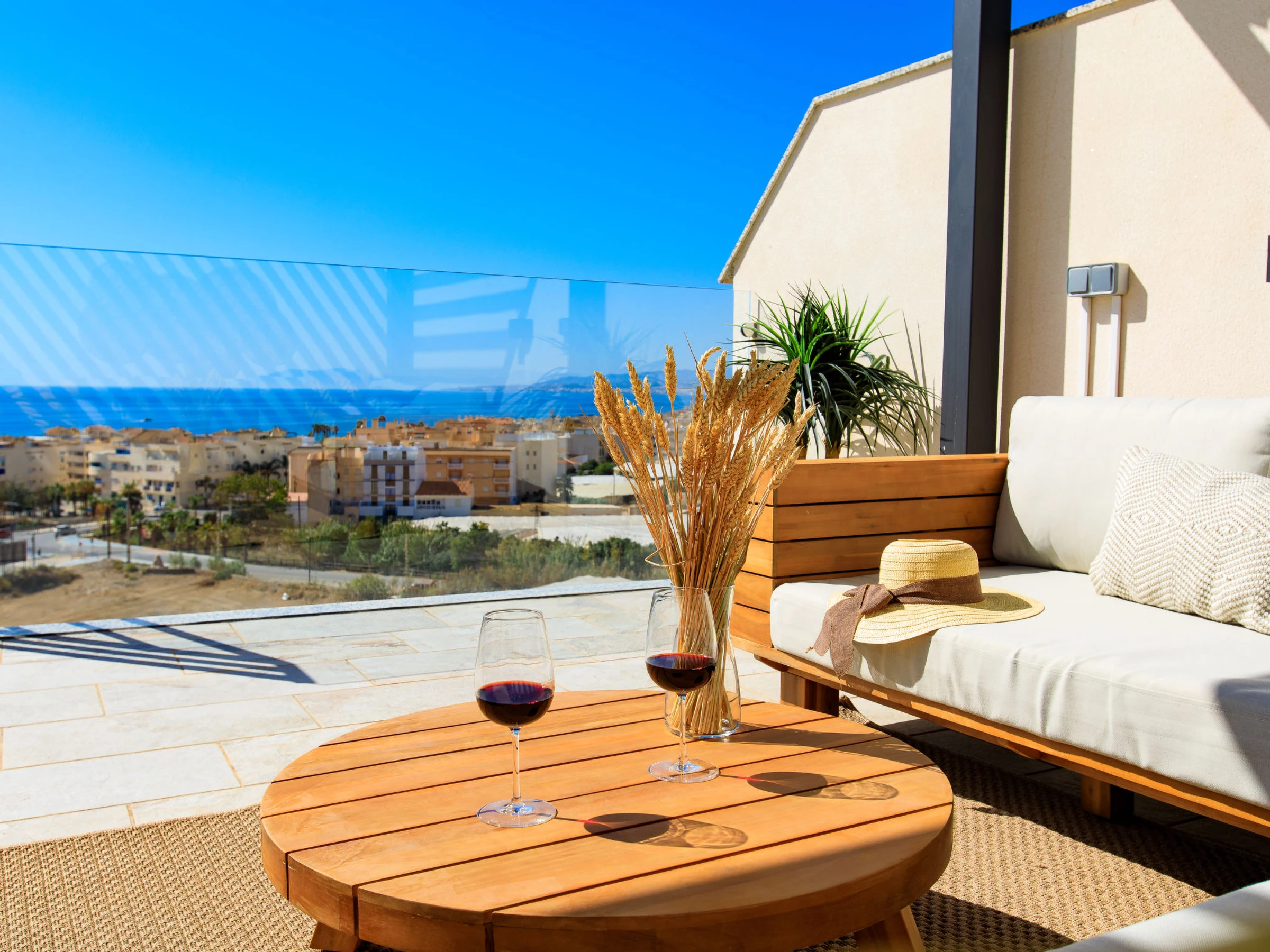 Torrox Costa: The property has: Wifi, community pool, air conditioning / hot air heating, smart tv and community parking space. In the bathroom there is a washer and dryer. Kitchen is very well equipped with: oven, microwave, dishwasher, wine fridge, fridge/freezer, blender, juicer, kettle, electric coffee maker. On the terrace in front of the living room there is a large table and chairs. The roof terrace has two sun loungers, parasols, an outdoor shower, a pergola covers a comfortable sofa. Beautiful, comfortable apartment block "Marinsa Beach Sea View/Roof Terrace". In a sunny position, [hidden] m from the sea, [hidden] m from the beach. For shared use: lawn for sunbathing, swimming pool angular (10 x 4 m, depth [hidden] - [hidden] cm, seasonal availability: [hidden] - [hidden] Shower/WC in the pool area, terrace. In the house: internet access, WiFi, solarium, lift, central heating system, air conditioning, burglar alarm system, washing machine, tumble dryer. Roofed, parking space n 12. Shop 1 km, supermarket 1 km, shopping centre 20 km, restaurant [hidden] m, bakery 1 km, pedestrian zone [hidden] m, bus stop "Torrox Costa" [hidden] m, railway station "Malaga" 50 km, ferry "Malaga" 50 km, sandy beach [hidden] m, diving center 12 km. Sports harbour 8 km, marina 8 km, golf course (18 hole) 13 km, surf school 11 km, sailing school 11 km, tennis 11 km. Nearby attractions: Nerja, Frigiliana, Malaga, Competa, Torre del Mar, Almuñecar. Well-known ski regions can easily be reached: Sierra Nevada. Hiking paths: Sierra Almijara, Sierra Tejeda. Please note: baby equipment (included). The owner does not accept any youth groups. Loading and unloading of baggage is possible at the holiday house.