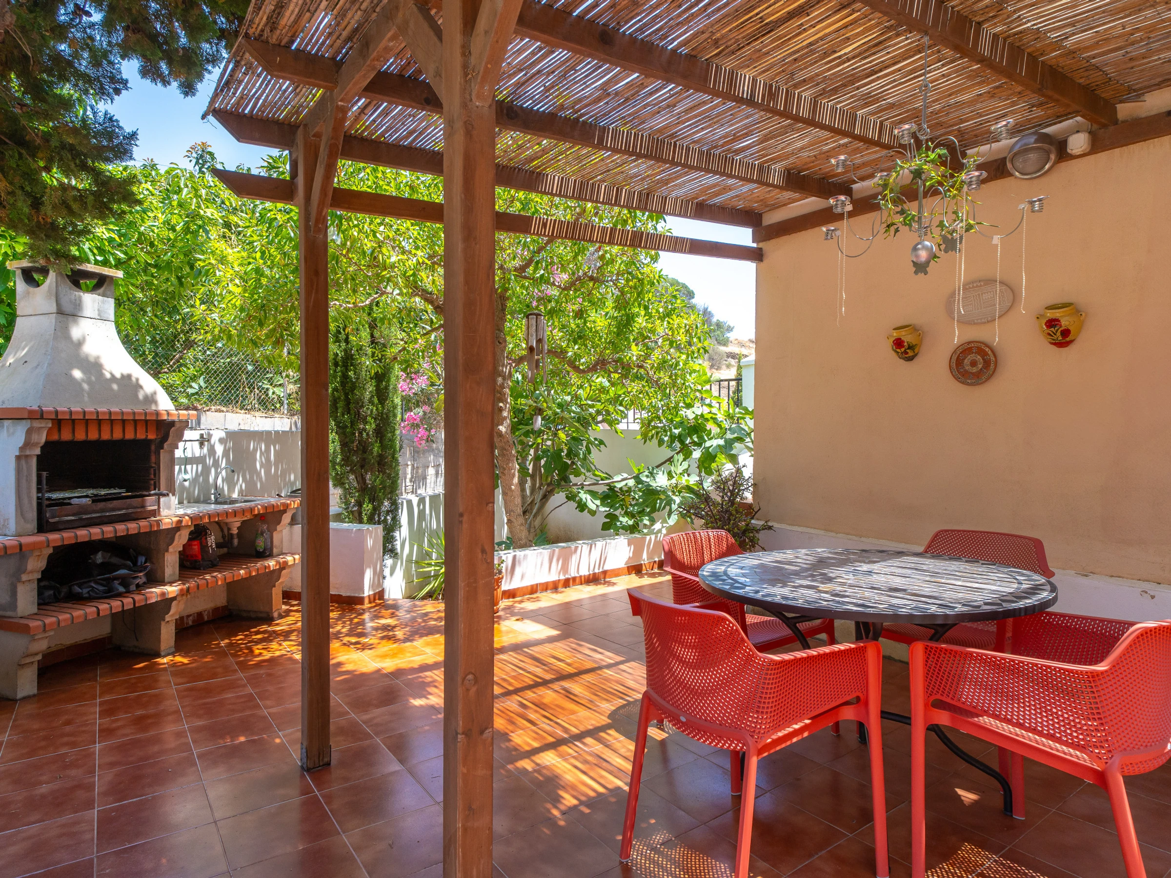 Indoor and outdoor living: The property is designed to open up to the landscape and the blue Mediterranean. The living room connects to a terrace that leads to the private swimming pool, surrounded by sun loungers and oriented to enjoy the sea views. Of particular note is its wooded side area, a cool corner with an outdoor dining table and built-in barbecue, ideal for extending your after-dinner conversations outdoors.