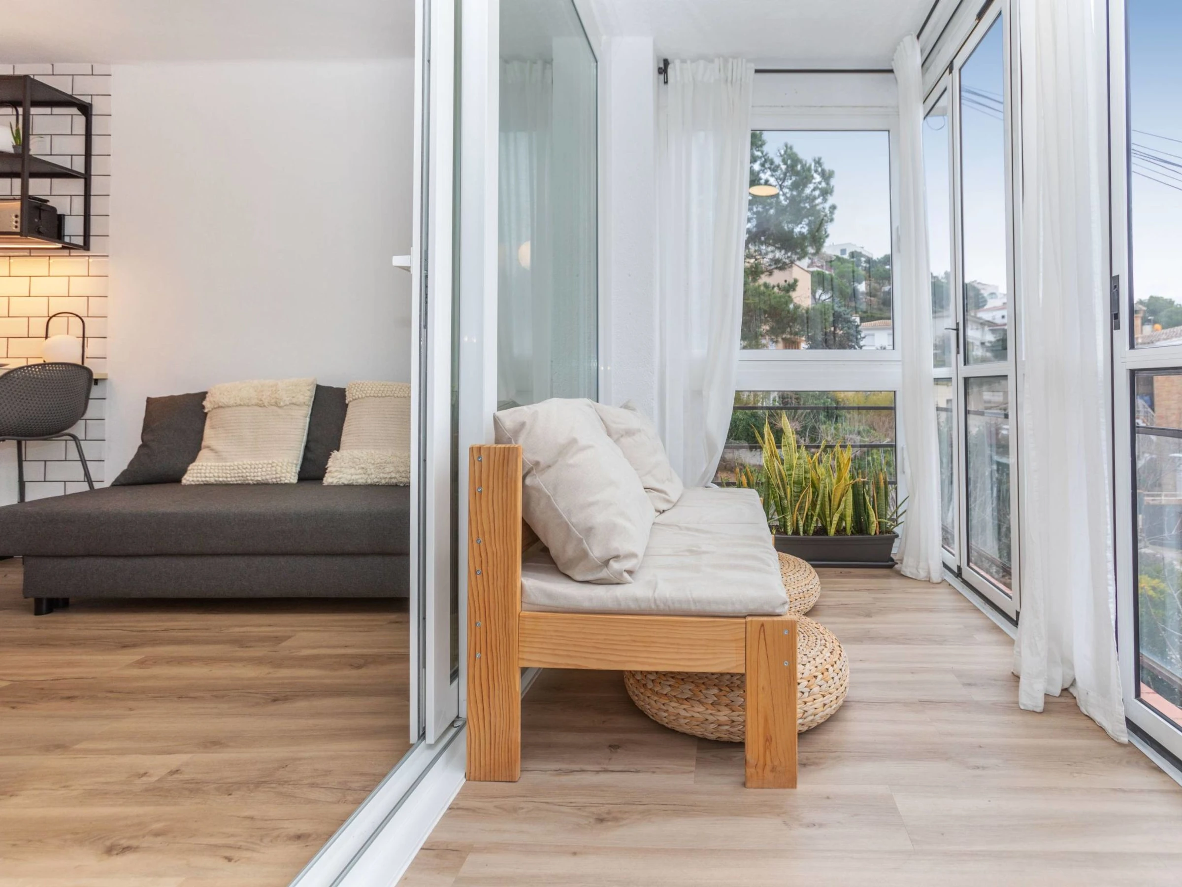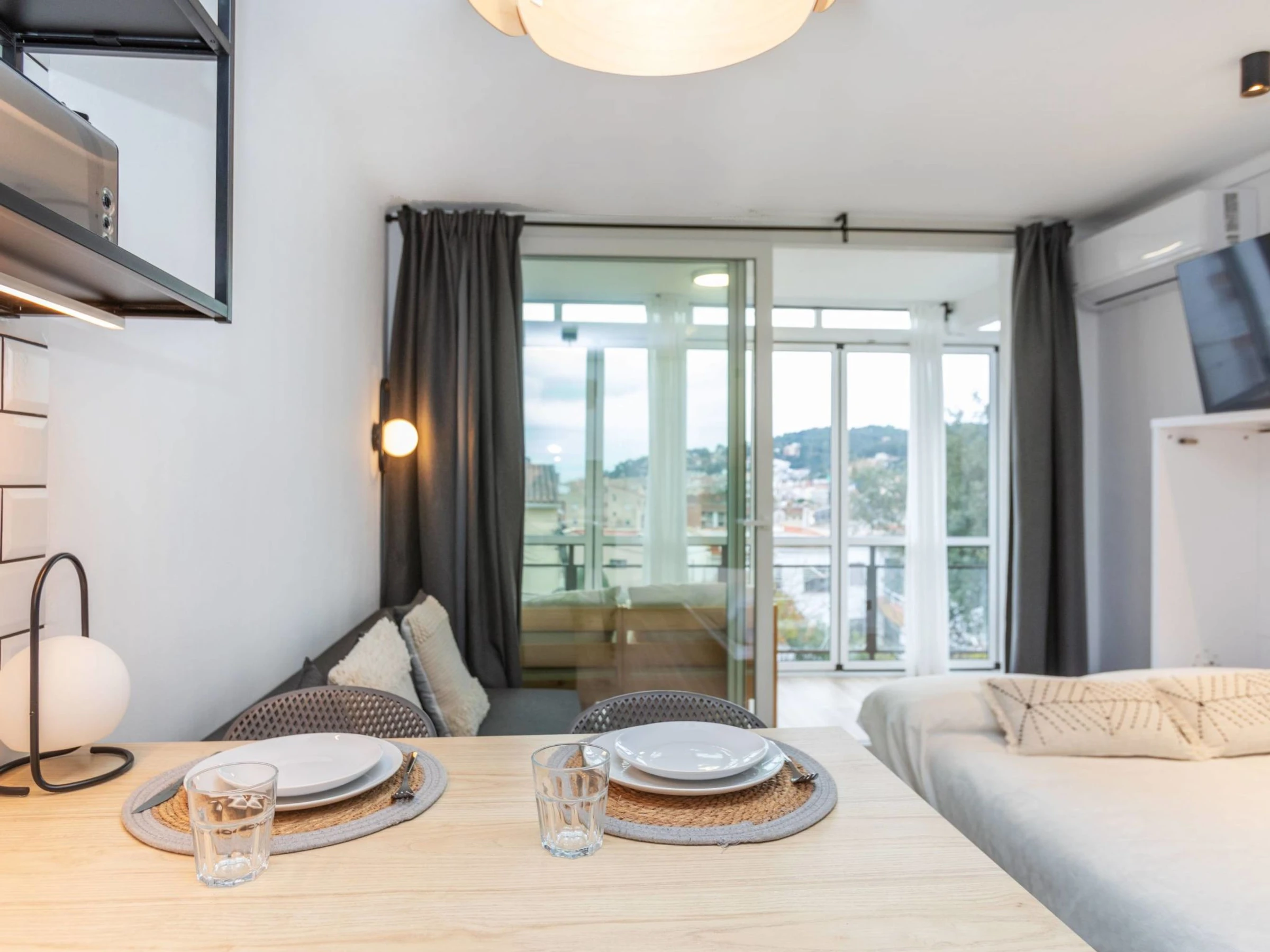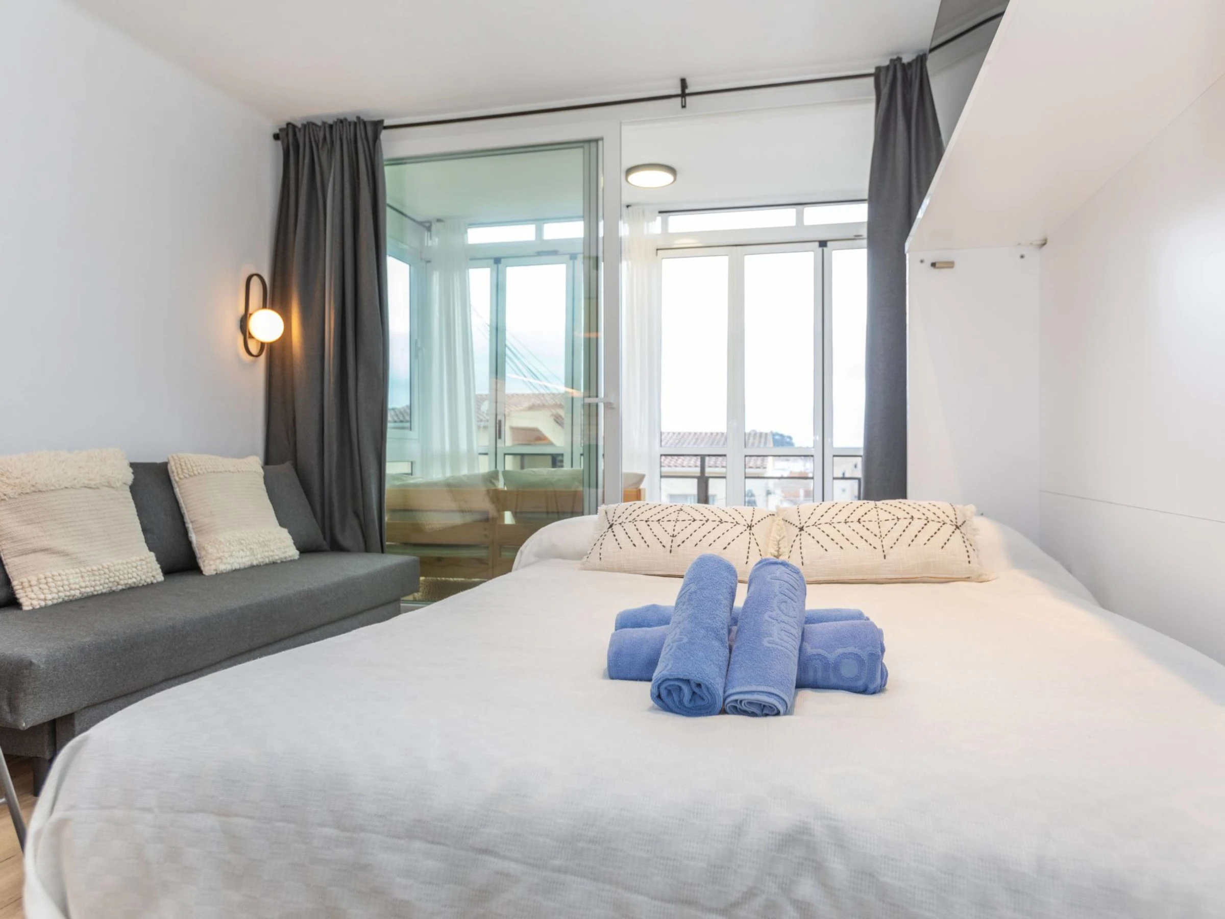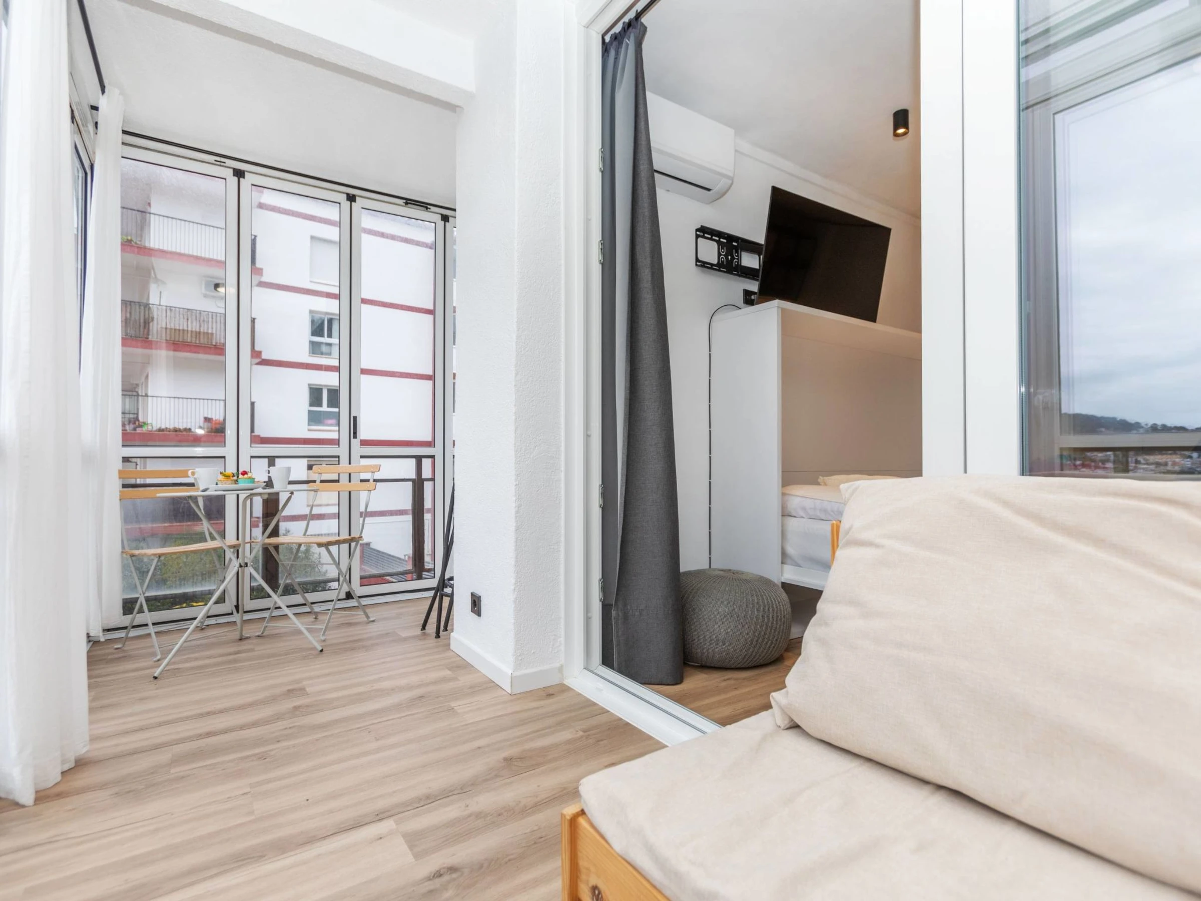 "Loftie", 1-room Loft 39 m2 on 1st floor. Object suitable for 2 adults. Bright, renovated in 2023, modern and cosy furnishings: living/dining room with dining table, digital TV, air conditioning and forced-air heating. Exit to the balcony. Studio with 1 french bed (140 cm, length 190 cm). Exit to the veranda. Open kitchen (dishwasher, 2 ceramic glass hob hotplates, toaster, kettle, microwave, freezer, electric coffee machine). Shower/WC. View of the resort. Facilities: washing machine, iron, hair dryer. Internet (WiFi, free). Please note: not suitable for small children. Non-smokers only. TV only ES. Parking possible but limited with 15 places. [hidden] // Reg. Nr.: ESFCNT00001702100041794000000000000000000000000000005