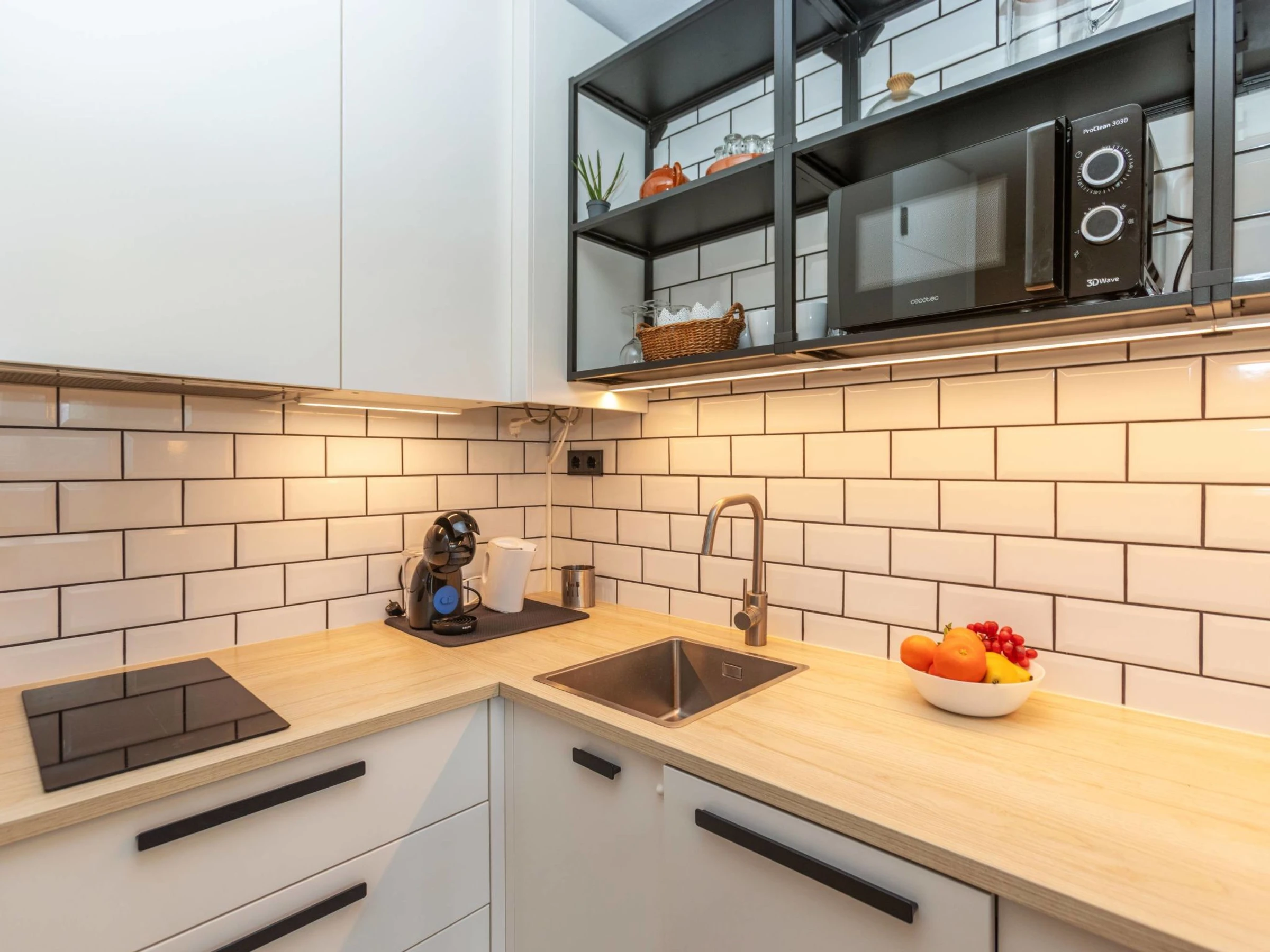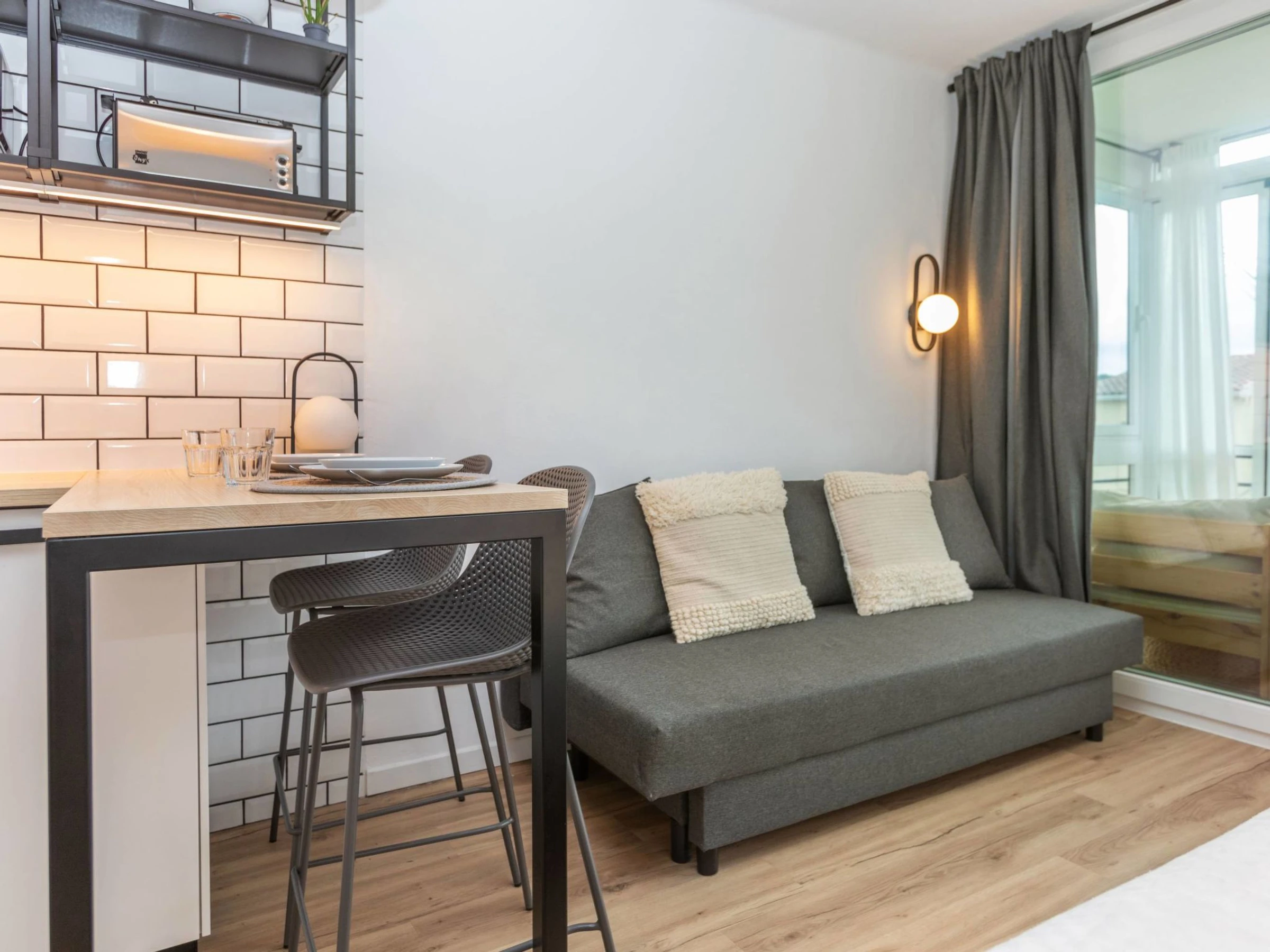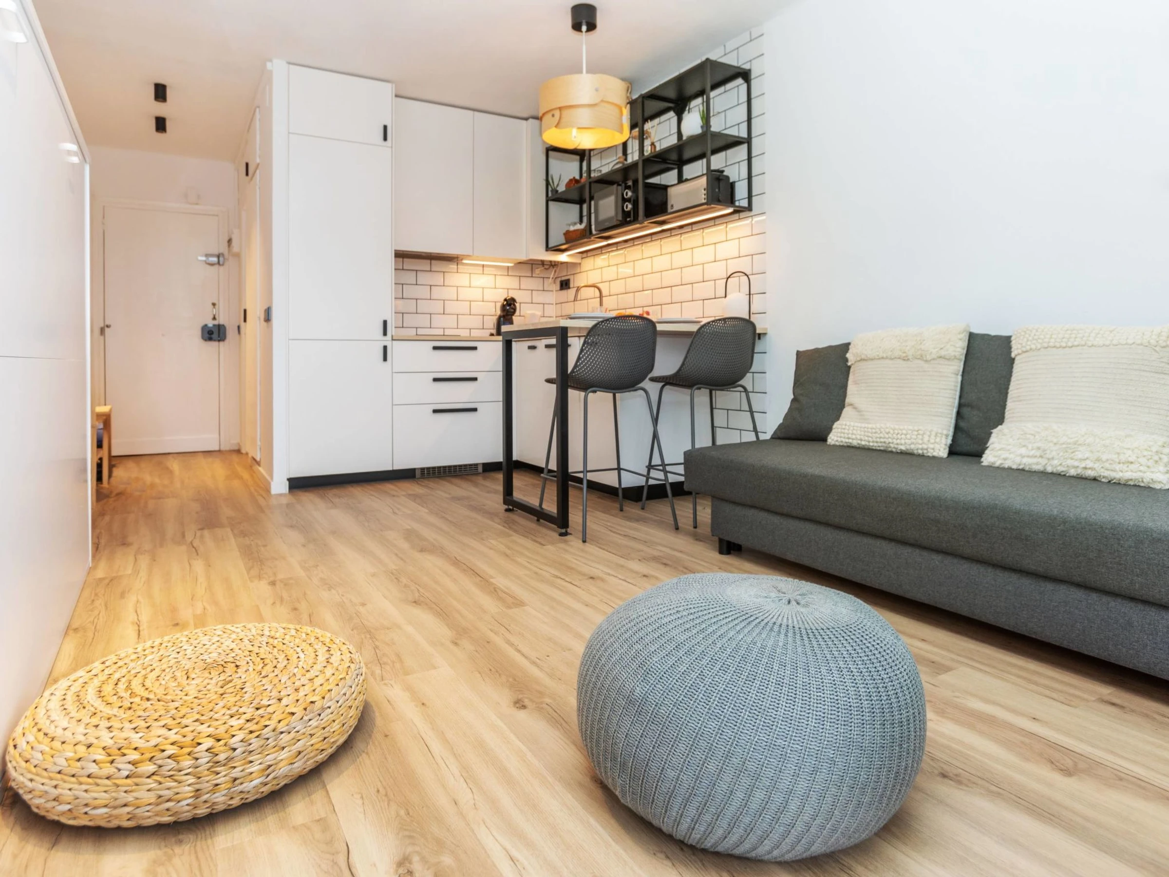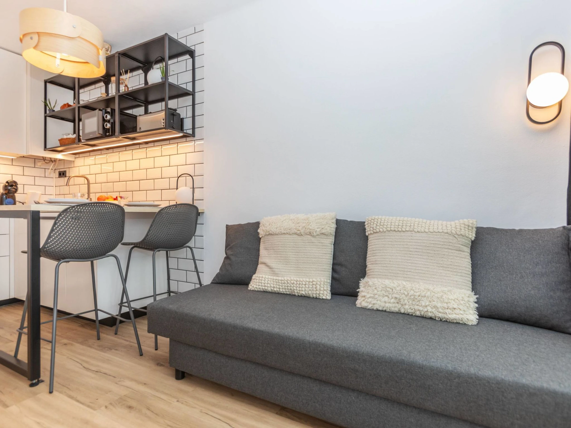 "Loftie", 1-room Loft 39 m2 on 1st floor. Object suitable for 2 adults. Bright, renovated in 2023, modern and cosy furnishings: living/dining room with dining table, digital TV, air conditioning and forced-air heating. Exit to the balcony. Studio with 1 french bed (140 cm, length 190 cm). Exit to the veranda. Open kitchen (dishwasher, 2 ceramic glass hob hotplates, toaster, kettle, microwave, freezer, electric coffee machine). Shower/WC. View of the resort. Facilities: washing machine, iron, hair dryer. Internet (WiFi, free). Please note: not suitable for small children. Non-smokers only. TV only ES. Parking possible but limited with 15 places. [hidden] // Reg. Nr.: ESFCNT00001702100041794000000000000000000000000000005