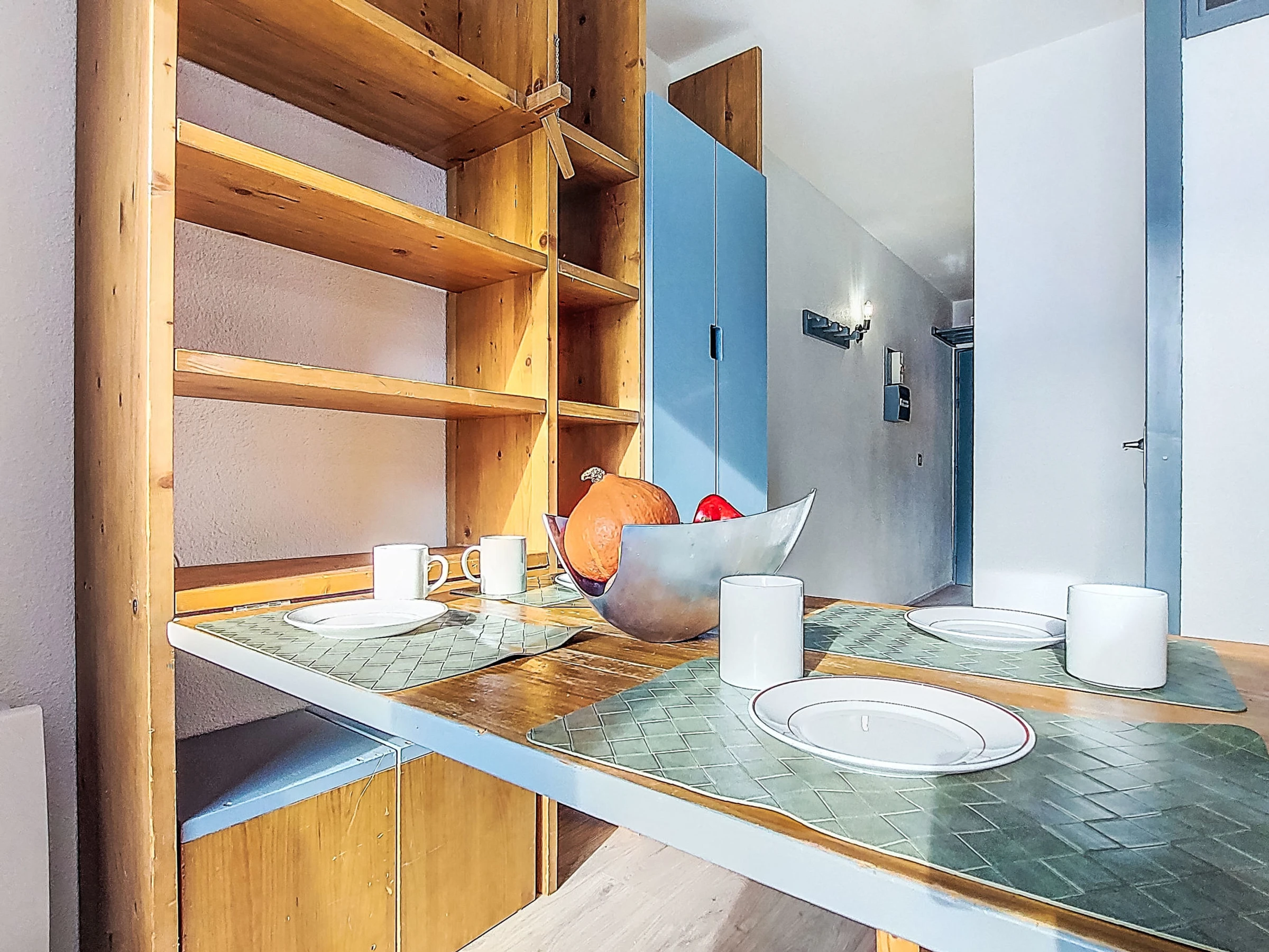1-room studio 21 m2 on 6th floor. Partly renovated in 2025, beautiful and tasteful furnishings: living/dining room with 1 double sofabed (1 x 140 cm, length 190 cm), dining table and TV (flat screen). Exit to the balcony, south facing position. Entrance hall with dining nook. Sleeping alcove with 1 x 2 bunk beds (80 cm, length 190 cm). Kitchenette (dishwasher, 2 induction hot plates, toaster, kettle, microwave, grill, electric coffee machine). Bath/WC. Parquet floors. Small balcony 3 m2, south facing position. Very beautiful panoramic view of the mountains, the valley, the ski run and the resort. Facilities: Internet (WiFi, extra). Please note: non-smokers only. Offer by a private individual according to Art. 155, IV of CGI. [hidden]