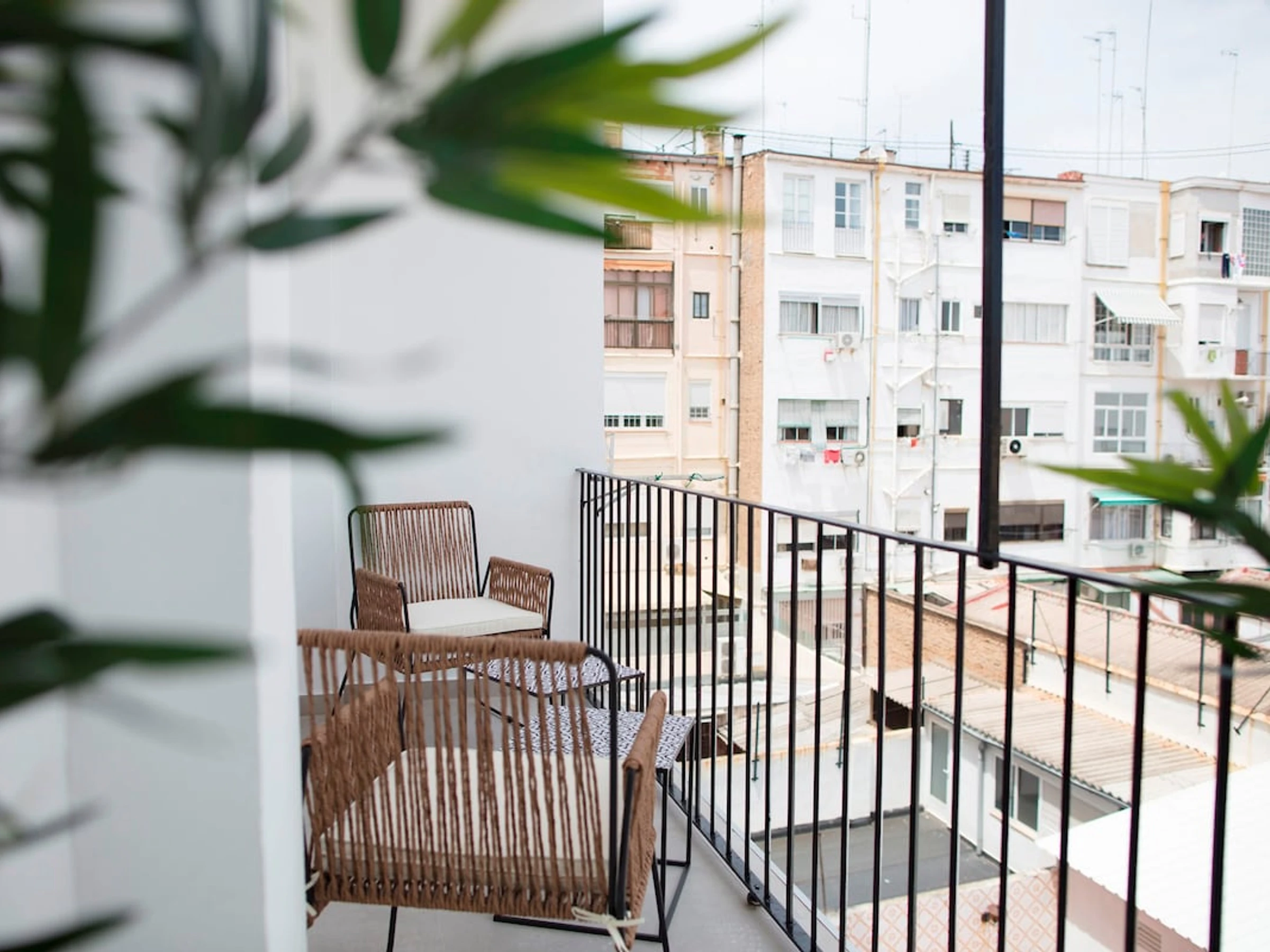 In the living area you have three different spaces and carefully decorated and lighting, work area with a beautiful desk, seating area with sofa for three people and two individual seats, large TV, internet, etc. and dining area. This space also has two balconies that overlook Maestro Gozalbo Street. You do not want your trip to end and you will want to stay and live, no doubt.