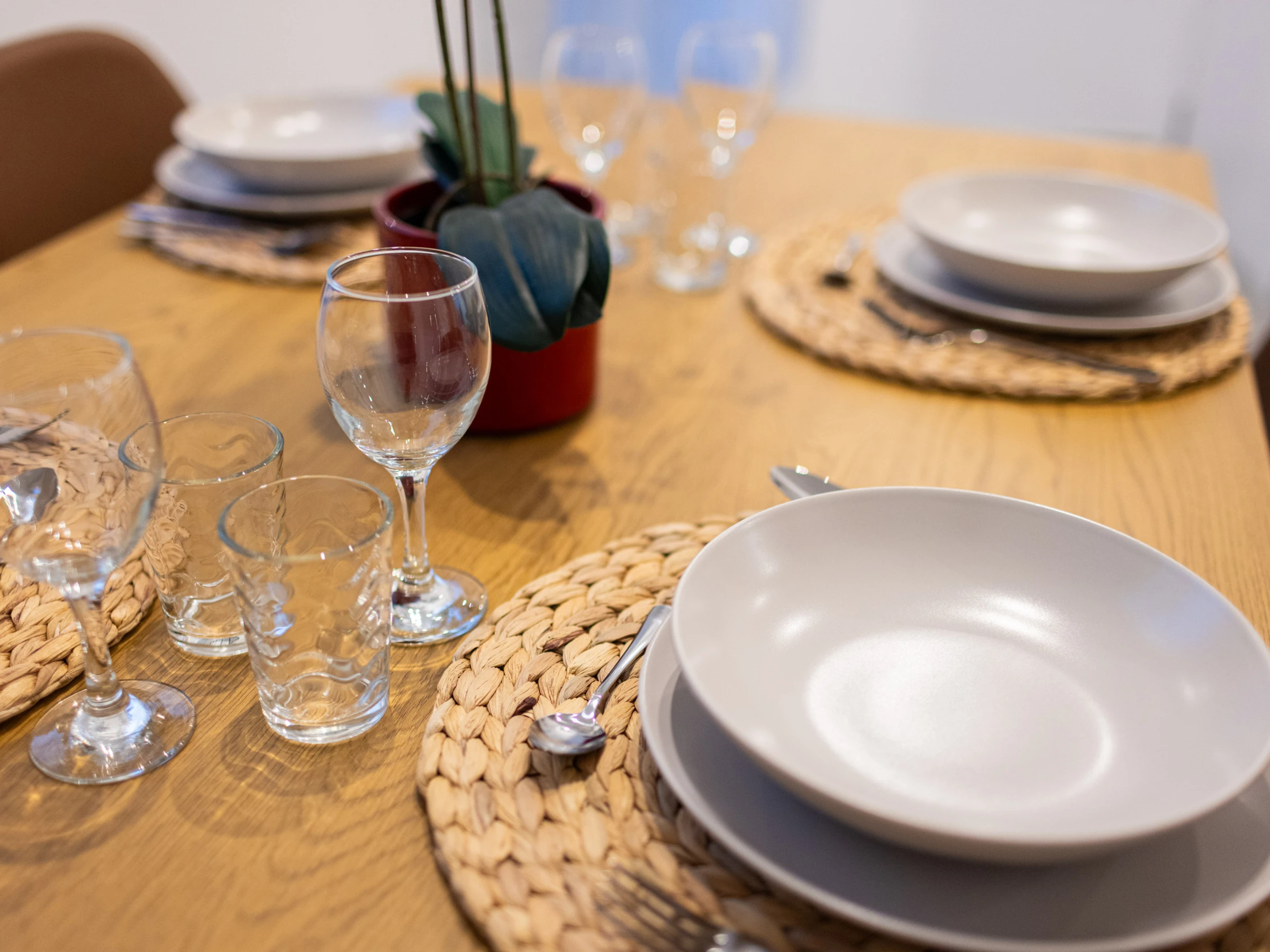 Enjoy the freedom offered by the fully equipped kitchen, with everything you need to prepare your meals: refrigerator, oven, microwave, stovetop, toaster, kettle, and coffee maker with complimentary coffee capsules and teas. Everything is designed so you can enjoy your meals at home, providing a comfortable and economical alternative.