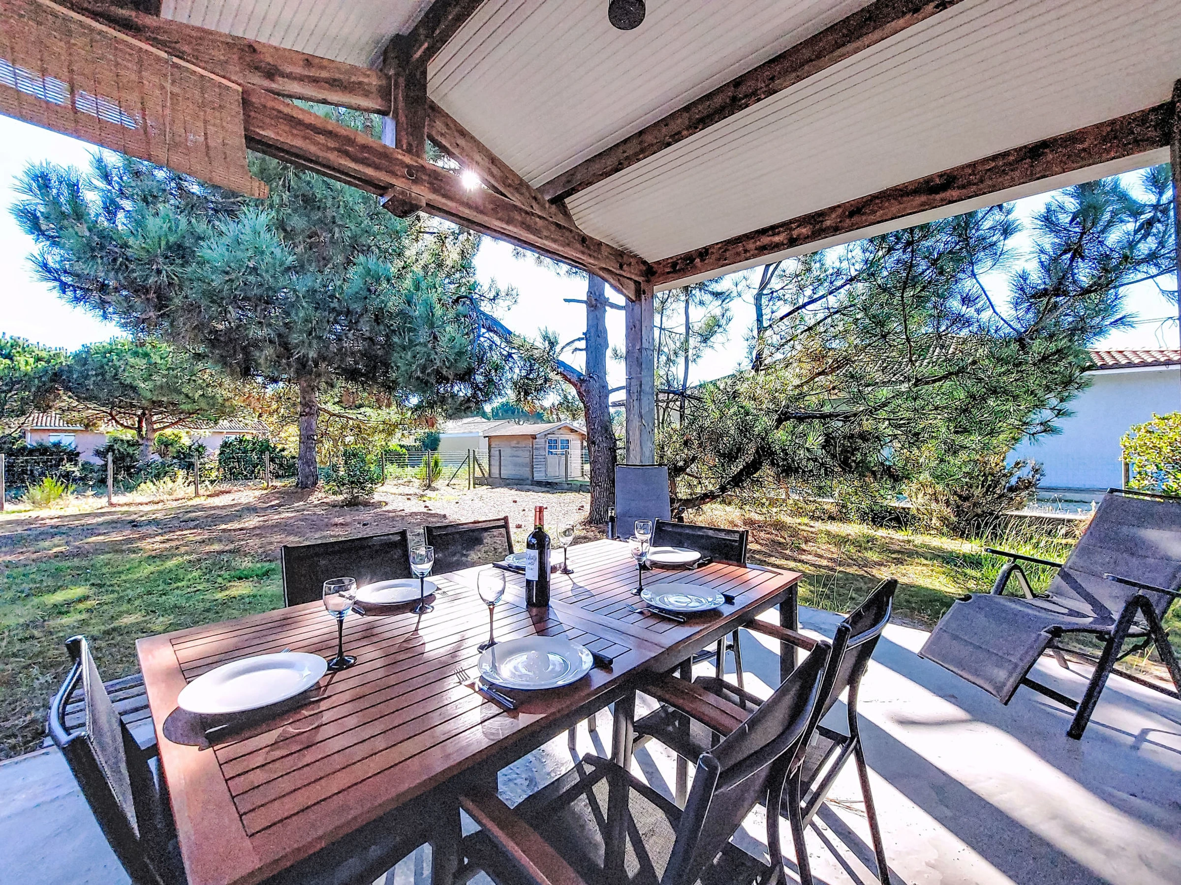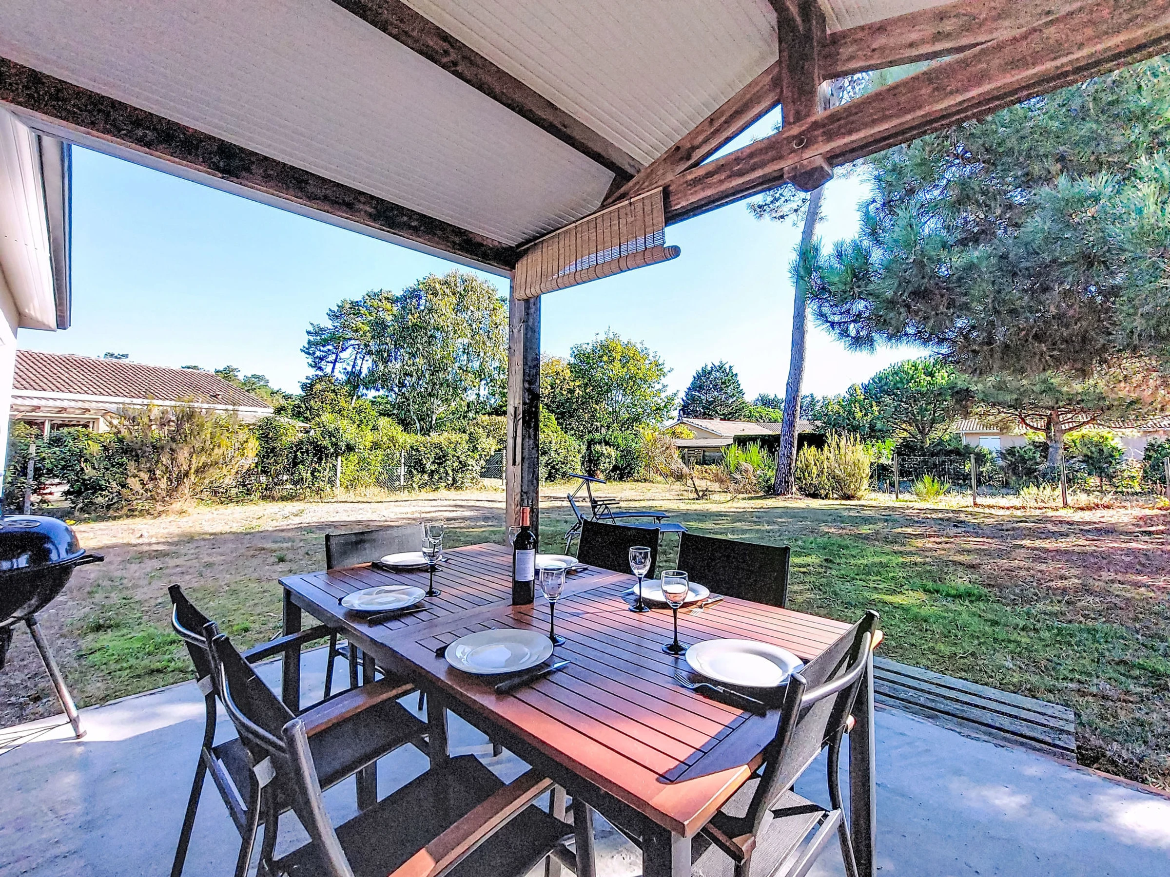 Single-family house. In the district of Le Hameau des Pins 1 km from the centre of Montalivet, 7.5 km from the centre of Vendays, 19 km from the centre of Soulac-sur-Mer, in the residential district, 1.4 km from the sea, 1.4 km from the beach, in a cul-de-sac. Private: natural state property 800 m2 (fenced), parking at the house on the premises. Shop 1 km, supermarket 1.2 km, bus stop "Av. De l'Europe/Montalivet" 650 m, sandy beach "Montalivet" 1.4 km, bathing lake "Hourtin" 30 km. Nearby attractions: Lacanau 50 km, Bordeaux 80 km.