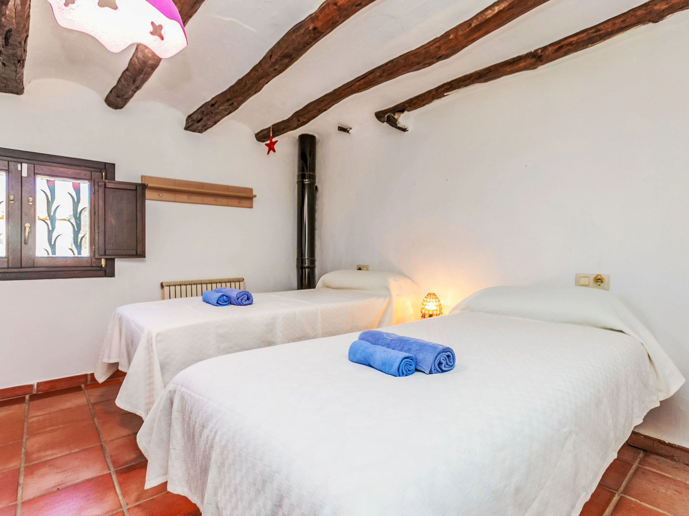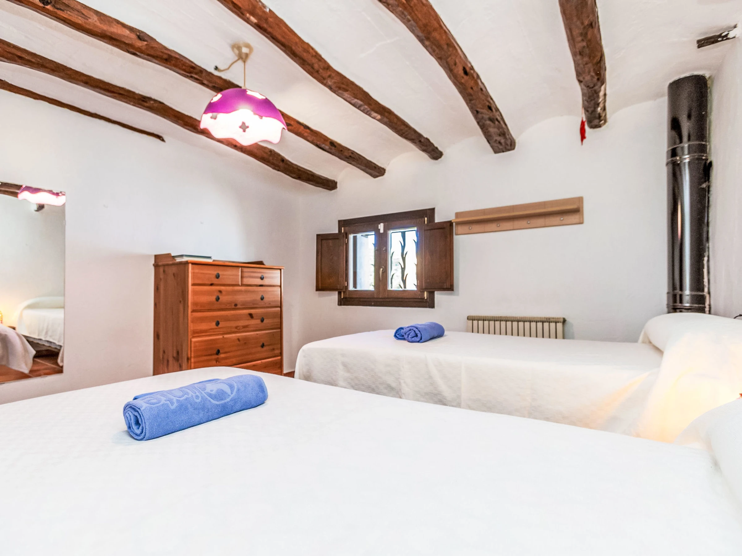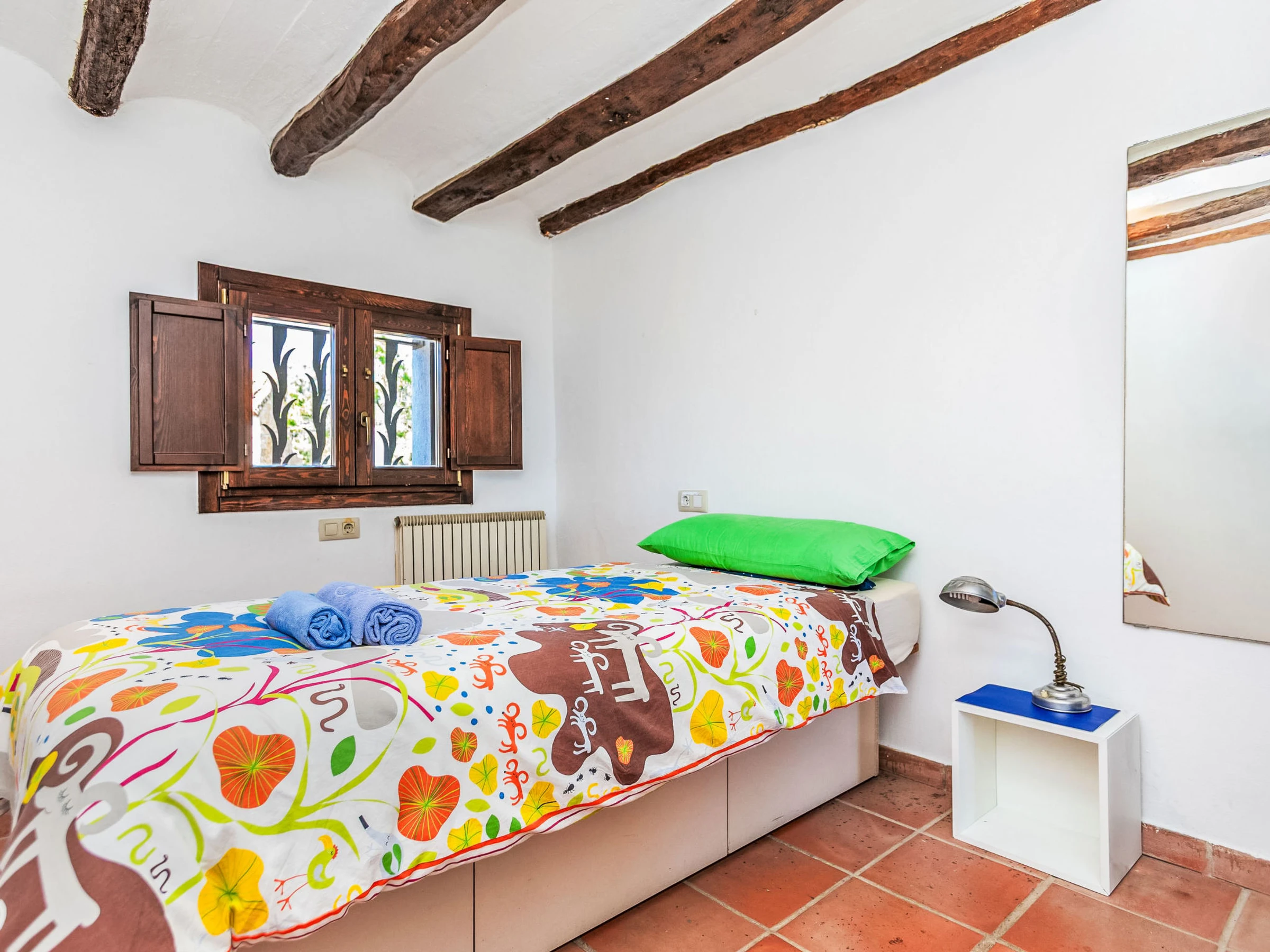 "Esl Masos de Vespella", 5-room farmhouse 145 m2 on 3 levels. Object suitable for 4 adults + 2 children. Spacious, partly renovated, practical and rustic furnishings: living/dining room with digital TV. Exit to the patio. Kitchen). No heating option. Upper floor: 1 room with 2 beds (90 cm, length 200 cm). 1 room with 1 french bed (1 x 150 cm, length 190 cm). Shower/WC. No heating option. 2nd upper floor: 1 room with 2 beds (90 cm, length 190 cm), fan. Shower/WC. No heating option. Large patio. Terrace furniture, barbecue, deck chairs (2). View of the garden and the countryside. Facilities: washing machine, iron, children's high chair, baby cot for up to 3 year olds, hair dryer. Internet (WiFi, free). Parking. Please note: suitable for families. Non-smoking house. TV only ES. [hidden] // Reg. Nr.: ESFCTU00004302700029879900000000000000000[hidden]2