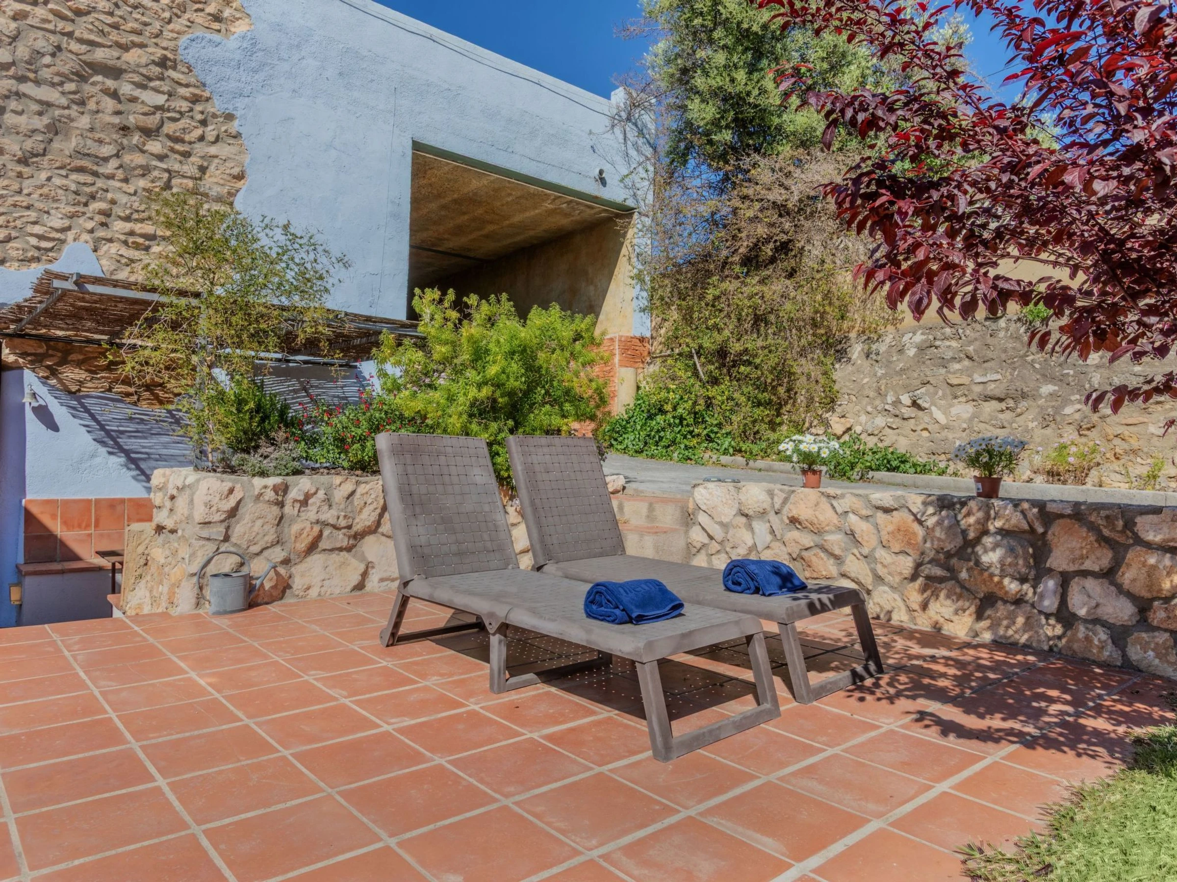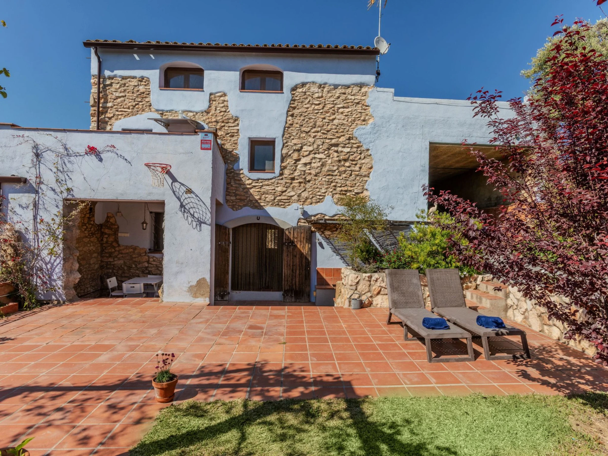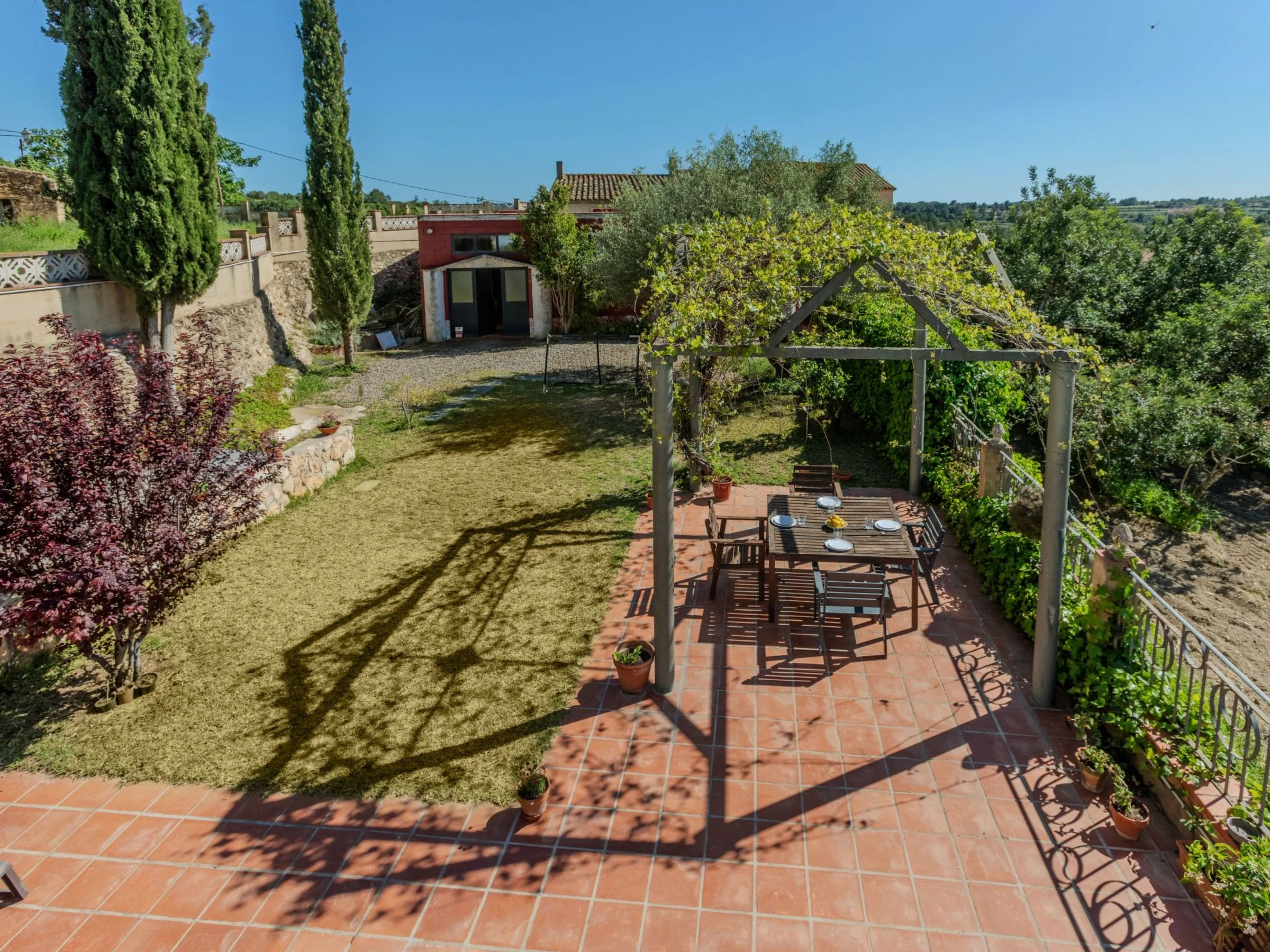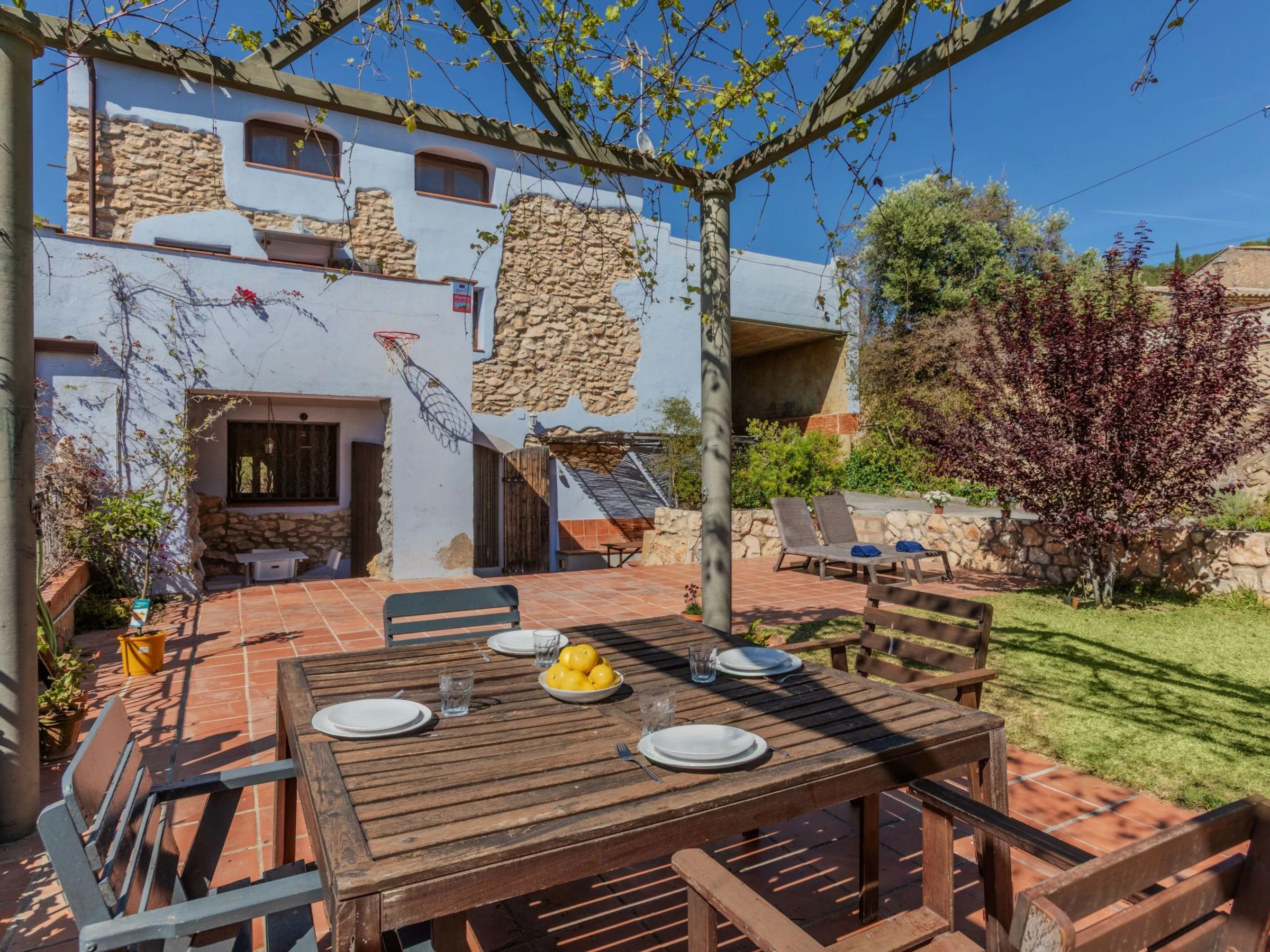 Masos Vespella 10 km from Torredembarra: Large, cosy farmhouse "Els Masos de Vespella", 2 storeys, detached. Outside the resort, 1.2 km from the centre of Vespella de Gaia, in the district Masos de Vespella, in a secluded, quiet position, 11 km from the sea, 11 km from the beach. Private: beautiful garden to relax. Patio (305 m2), terrace (45 m2), garden furniture, barbecue, parking (for 2 cars). Shop 5 km, grocery 5 km, supermarket 5 km, restaurant 3 km, bar 100 m, bus stop "bus urbano" 50 m, railway station "Torredembarra" 10 km, sandy beach "La Paella Torredembarra" 11 km. Sports harbour 11 km, golf course (18 hole) 14 km, riding stable 9 km, walking paths from the house, cycle lane 80 m. Nearby attractions: Barcelona 100 km, Tarragona 23 km, Port Aventura 35 km. Hiking paths: Vespella/La Riera/La Nou de Gaia 80 m. Please note: car recommended. Object suitable for 4 adults + 2 children. The owner does not accept any groups. The owner does not accept any youth groups. Neighbourhood highly sensitive to noise. Quietness and good behaviour expected.