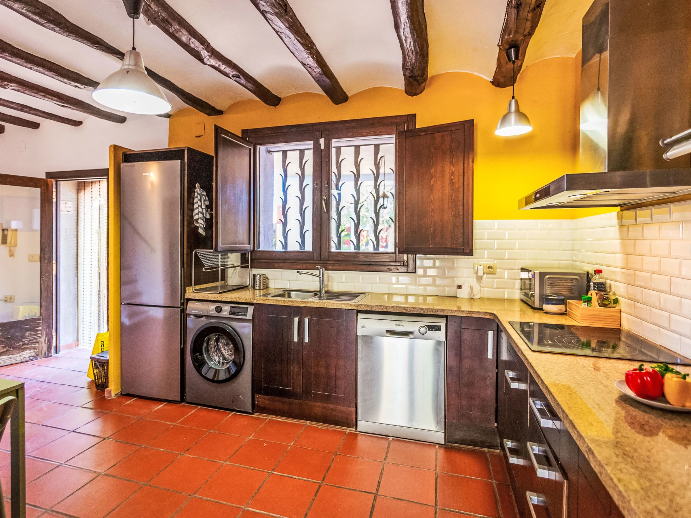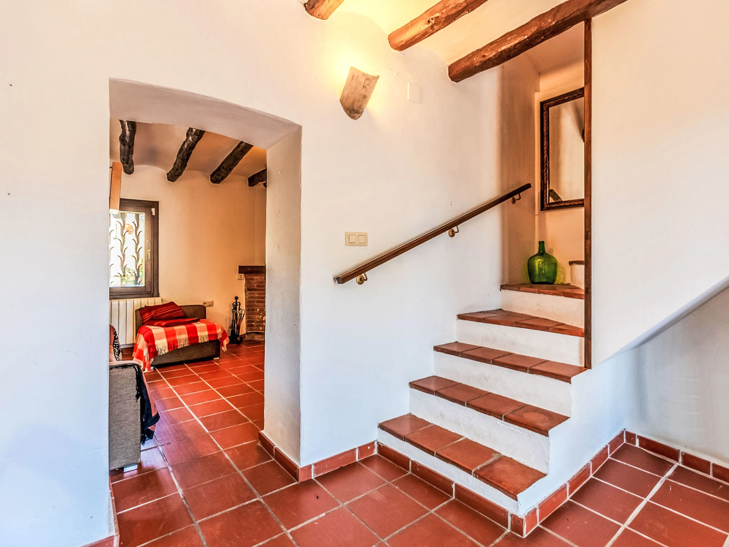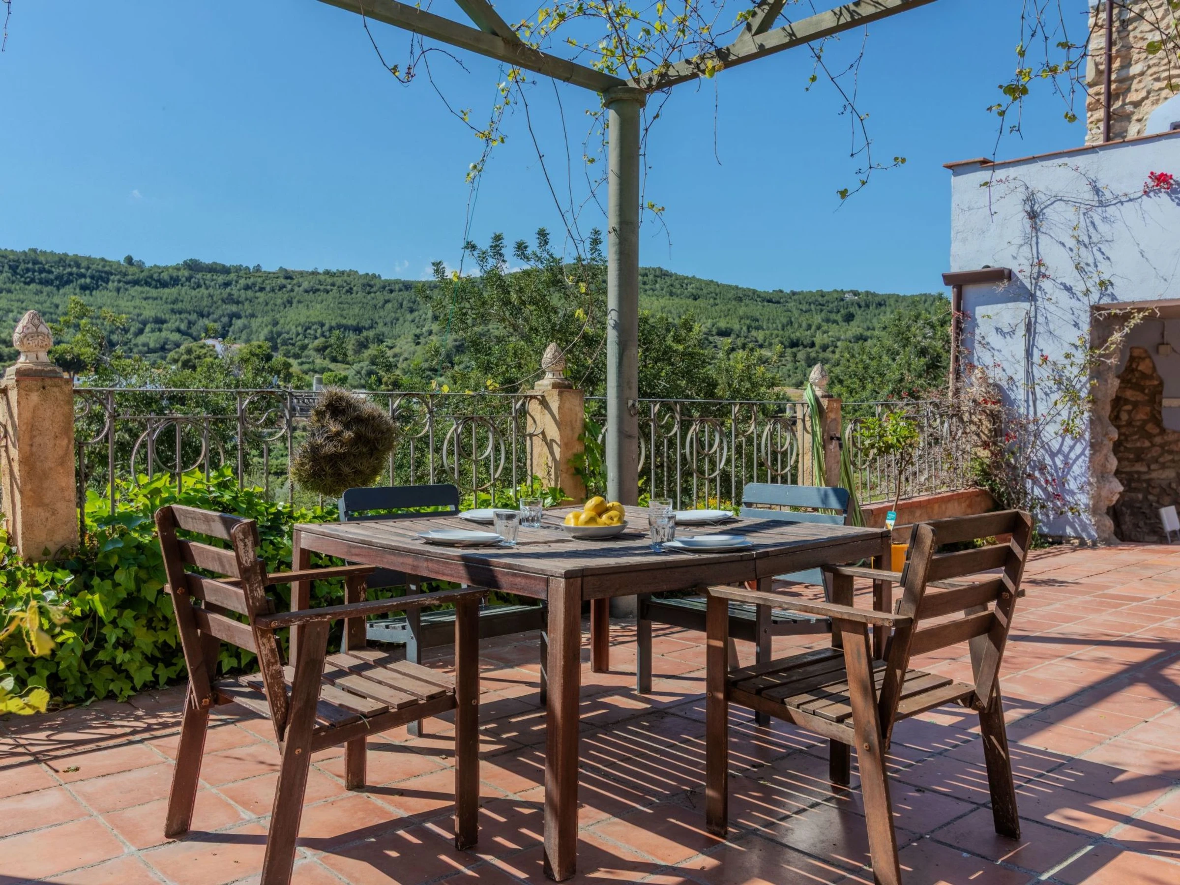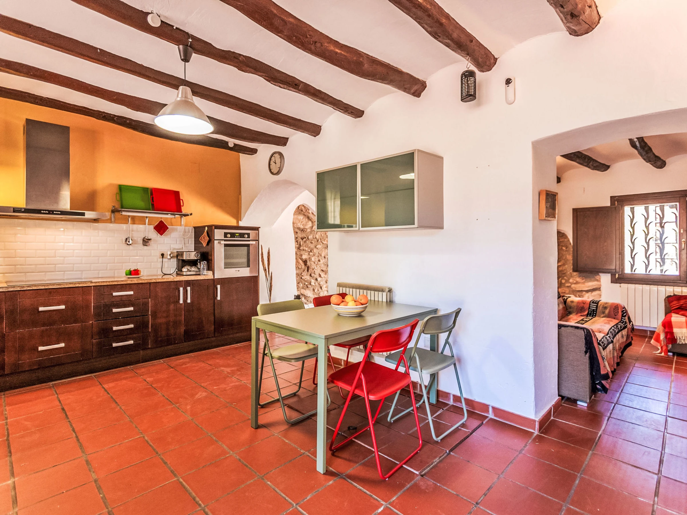 Masos Vespella 10 km from Torredembarra: Large, cosy farmhouse "Els Masos de Vespella", 2 storeys, detached. Outside the resort, 1.2 km from the centre of Vespella de Gaia, in the district Masos de Vespella, in a secluded, quiet position, 11 km from the sea, 11 km from the beach. Private: beautiful garden to relax. Patio (305 m2), terrace (45 m2), garden furniture, barbecue, parking (for 2 cars). Shop 5 km, grocery 5 km, supermarket 5 km, restaurant 3 km, bar 100 m, bus stop "bus urbano" 50 m, railway station "Torredembarra" 10 km, sandy beach "La Paella Torredembarra" 11 km. Sports harbour 11 km, golf course (18 hole) 14 km, riding stable 9 km, walking paths from the house, cycle lane 80 m. Nearby attractions: Barcelona 100 km, Tarragona 23 km, Port Aventura 35 km. Hiking paths: Vespella/La Riera/La Nou de Gaia 80 m. Please note: car recommended. Object suitable for 4 adults + 2 children. The owner does not accept any groups. The owner does not accept any youth groups. Neighbourhood highly sensitive to noise. Quietness and good behaviour expected.