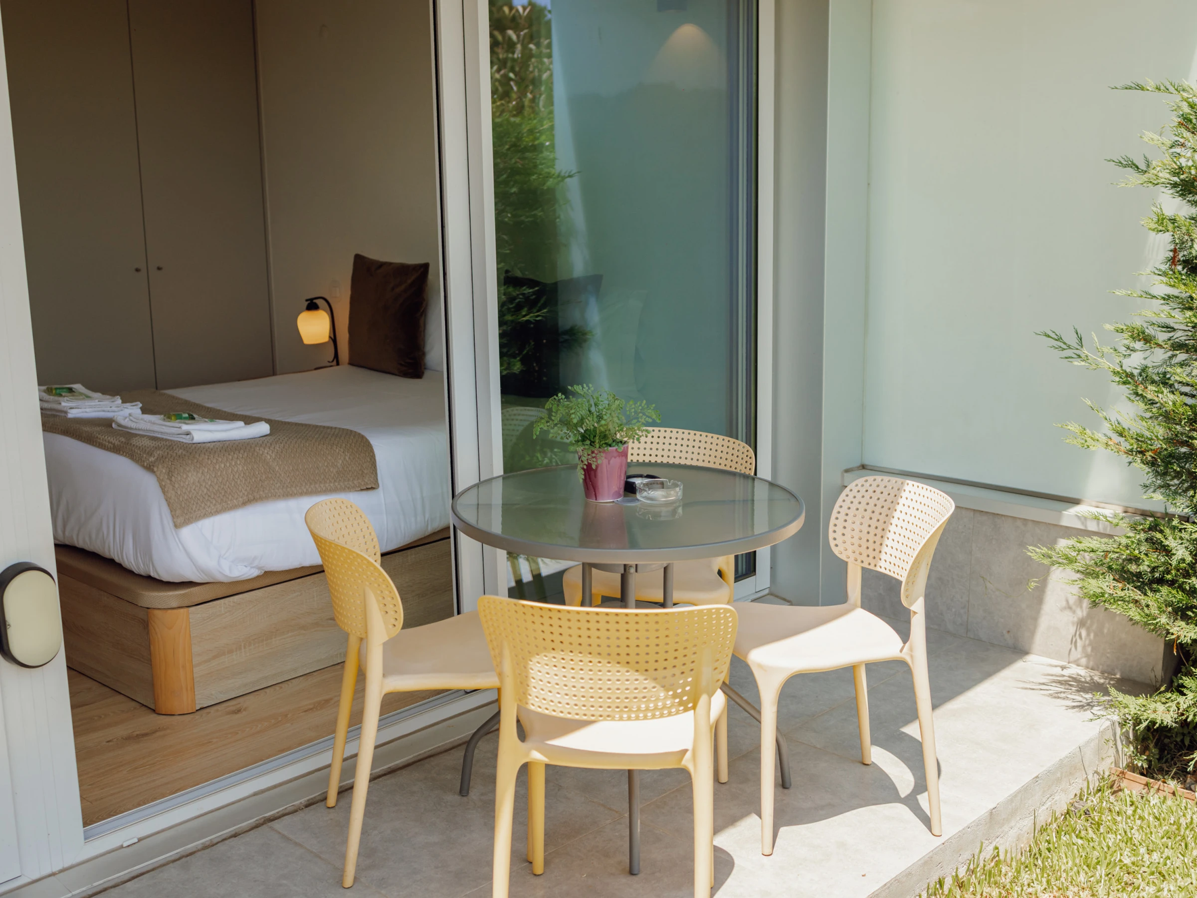 The accommodation is equipped with the following items: garden, garden furniture, fenced garden, 30 m² terrace, iron, internet (Wi-Fi), hair dryer, heat pump, air-conditioned, communal swimming pool, 1 TV, tv satellite.