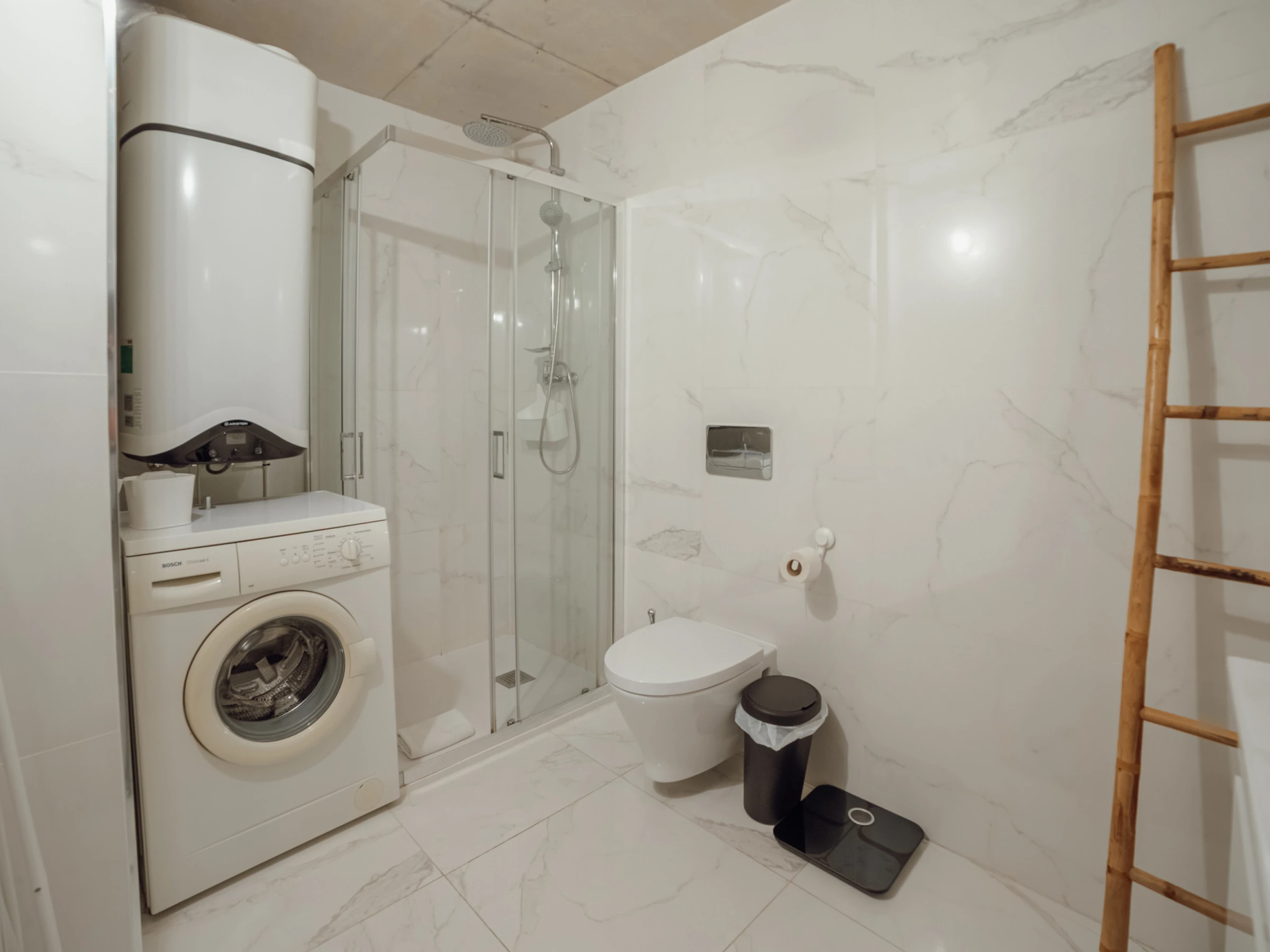 the kitchen, refrigerator, microwave, freezer, washing machine, dishwasher, dishes/cutlery, kitchen utensils, coffee machine, toaster, kettle and juicer are provided.