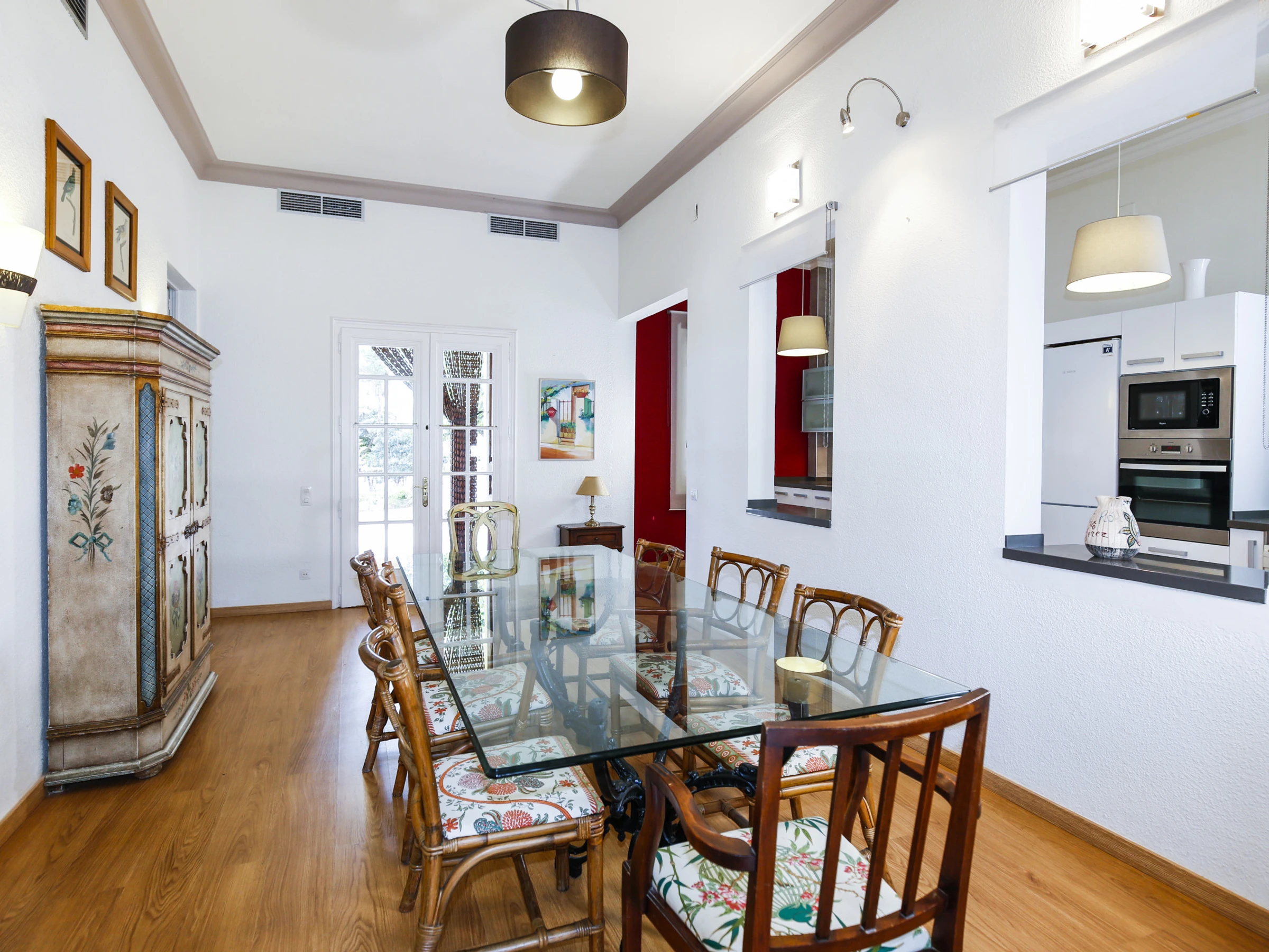 The exterior is one of the great attractions of this property: a spacious garden area with a private swimming pool of 17 x 9 metres, barbecue and garden furniture, perfect for enjoying the Mediterranean sun. It also has an external parking area with capacity for 8 vehicles within the property.