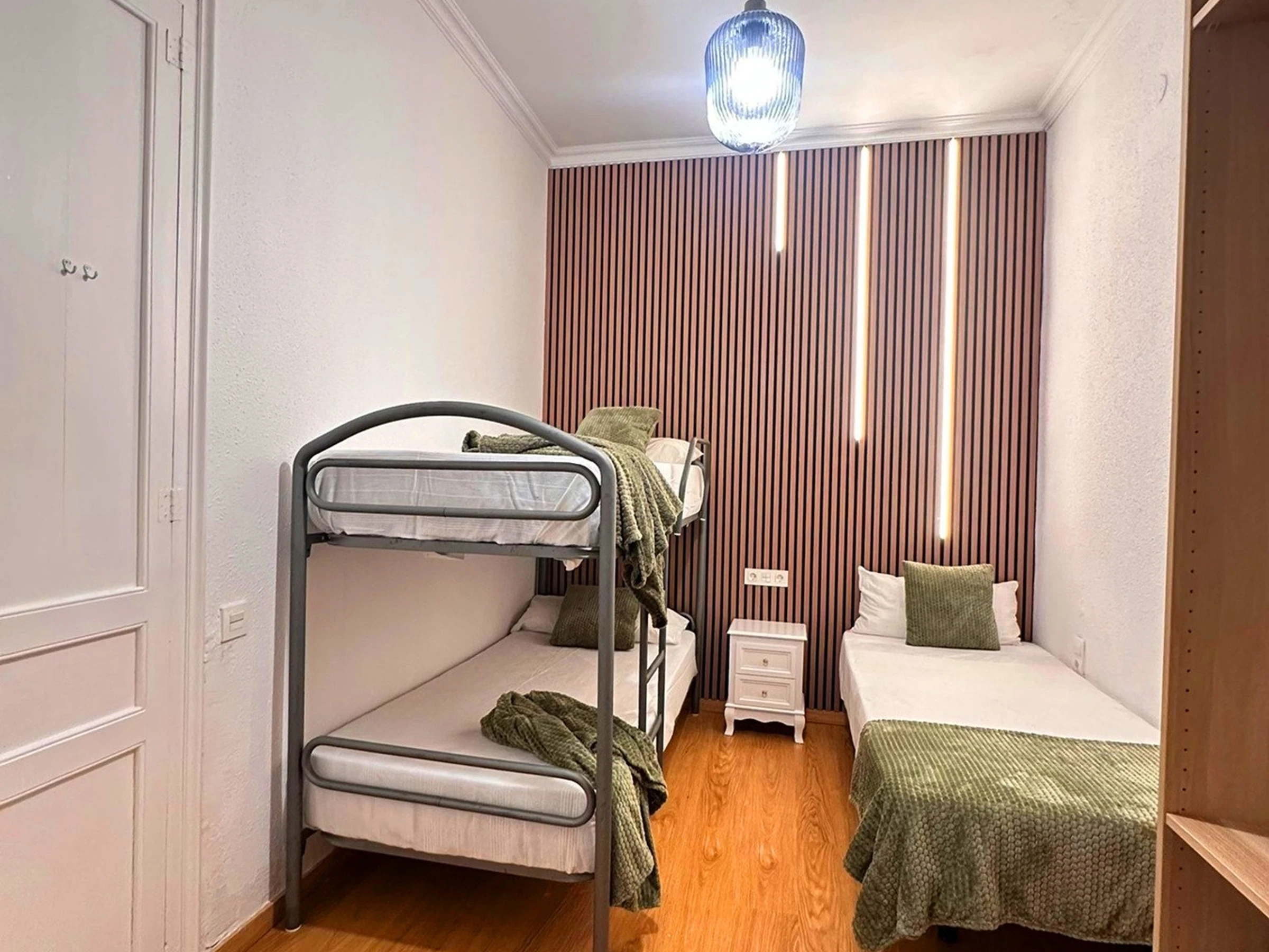 5 bedrooms: Master bedroom with a double bed. Two bedrooms with 2 single beds each. An additional bedroom with a double bed. Another bedroom with 2 single beds. Additionally, it has 2 double sofa beds, with a total capacity for 14 people.