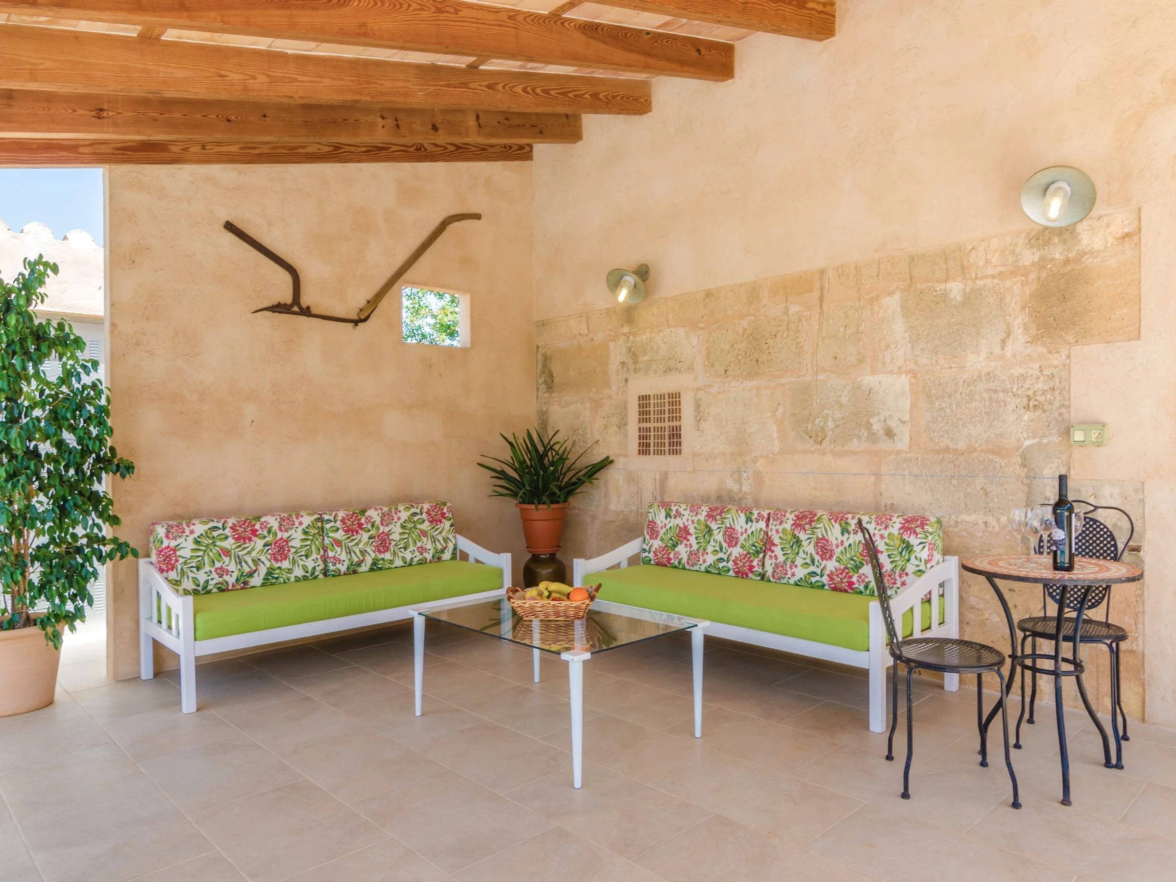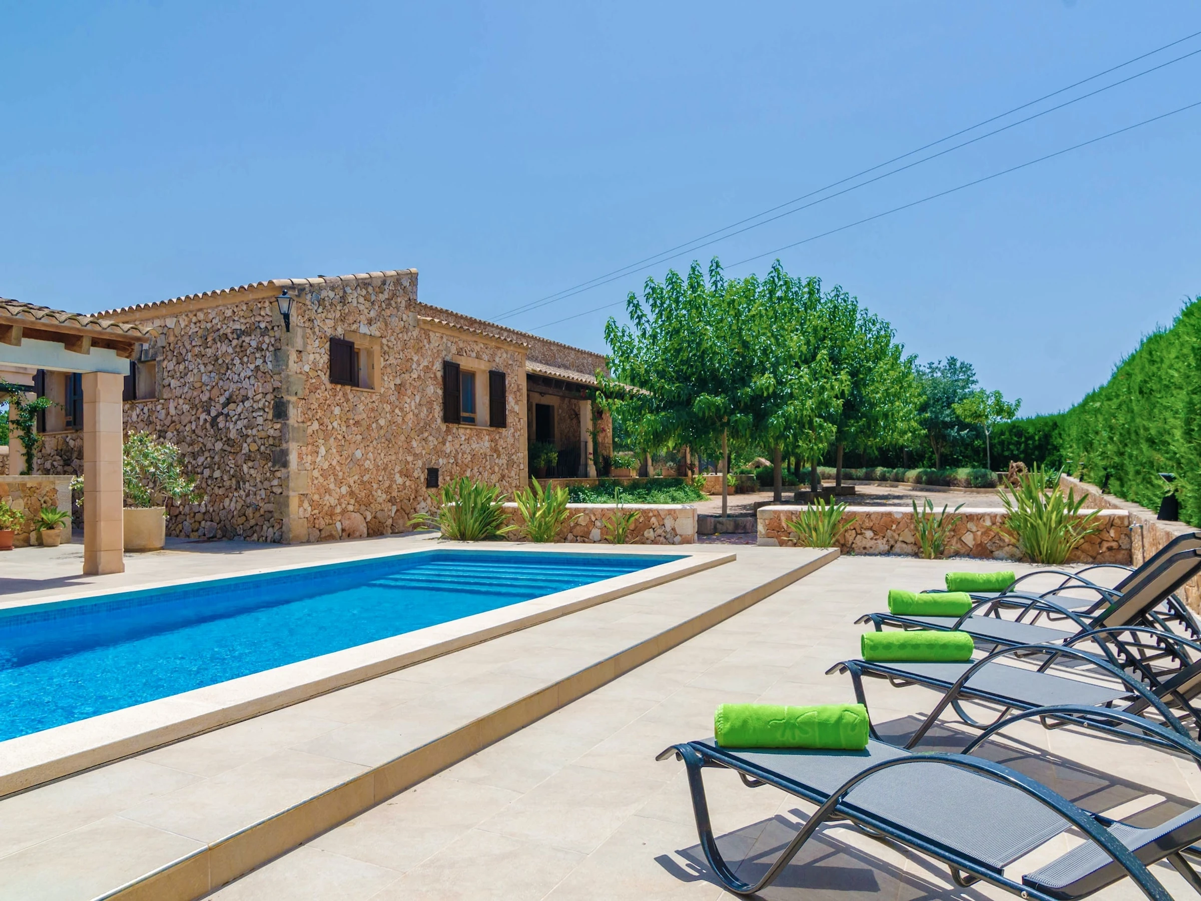 The location of this property is ideal to know the agriculture in the island. Vilafranca de Bonany is a small village where you will feel its charm everywhere, from the little grocery shops with local vegetables and fruits to the traditional Mallorcan bars and restaurants. On the contrary, Manacor - which is also very near- boasts more shops and a livelier atmosphere. The property is located between this two towns, 4.4 km away from Vilafranca and 7 km away from Manacor. If you want to visit the beach, the nearest one is in Porto Cristo, about 25.3 km away. Consult the advertiser for possible charges. Pets are not allowed. The holding of events is forbidden. There is exterior parking for 3 cars.