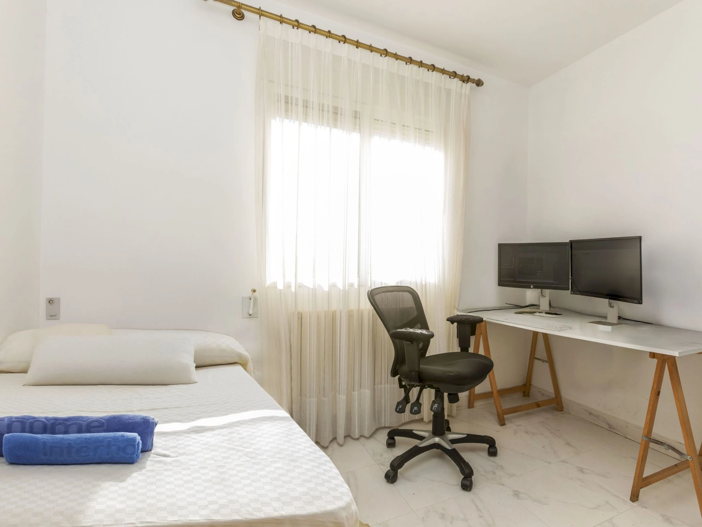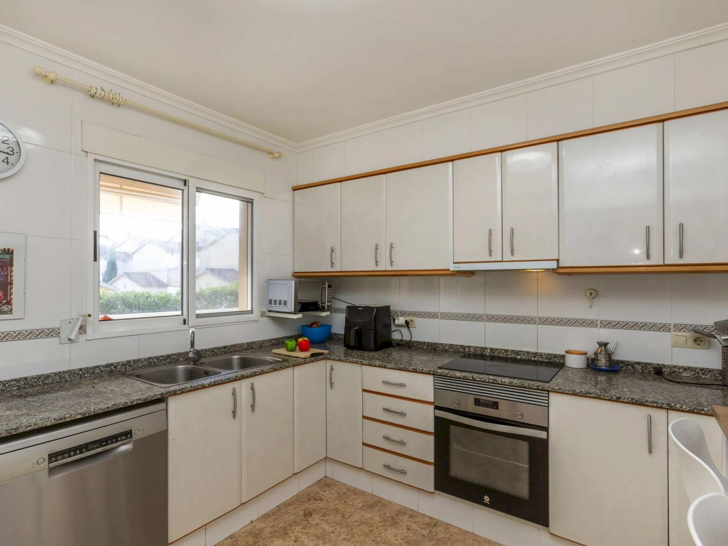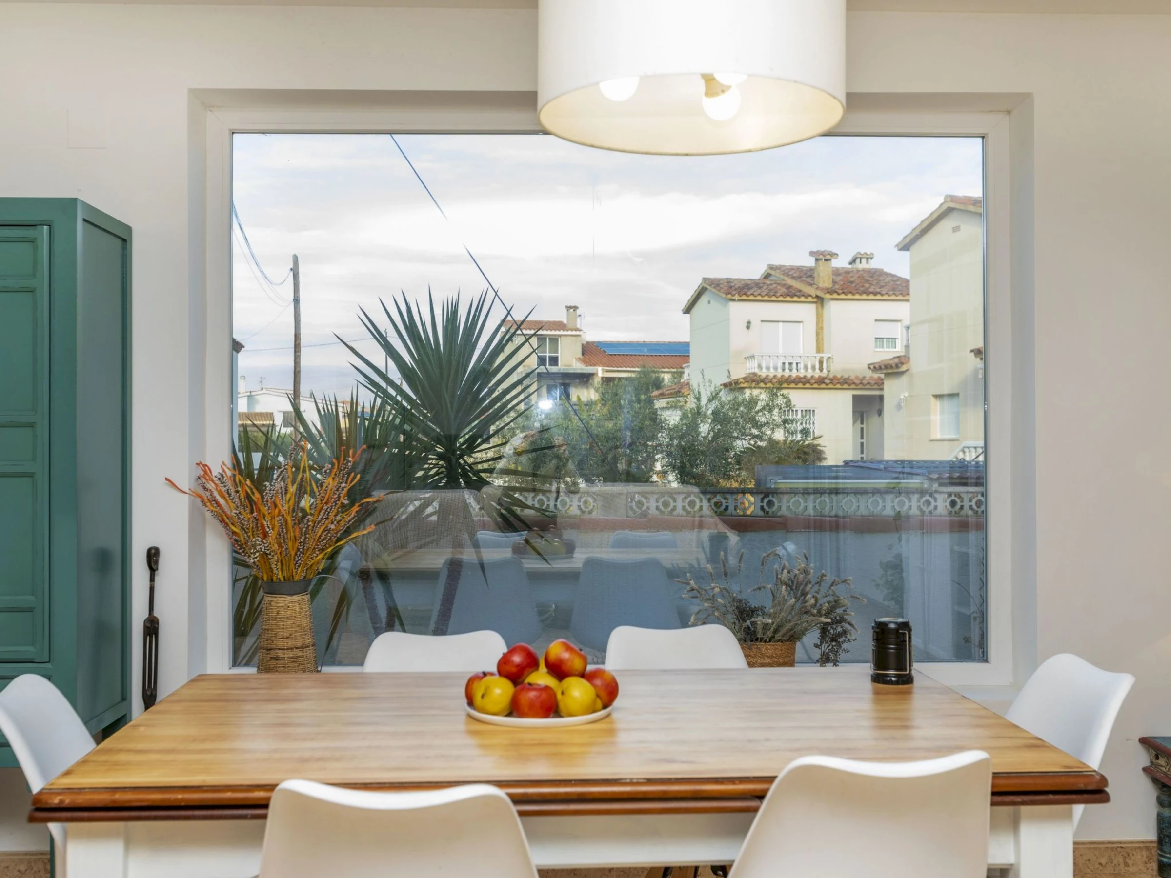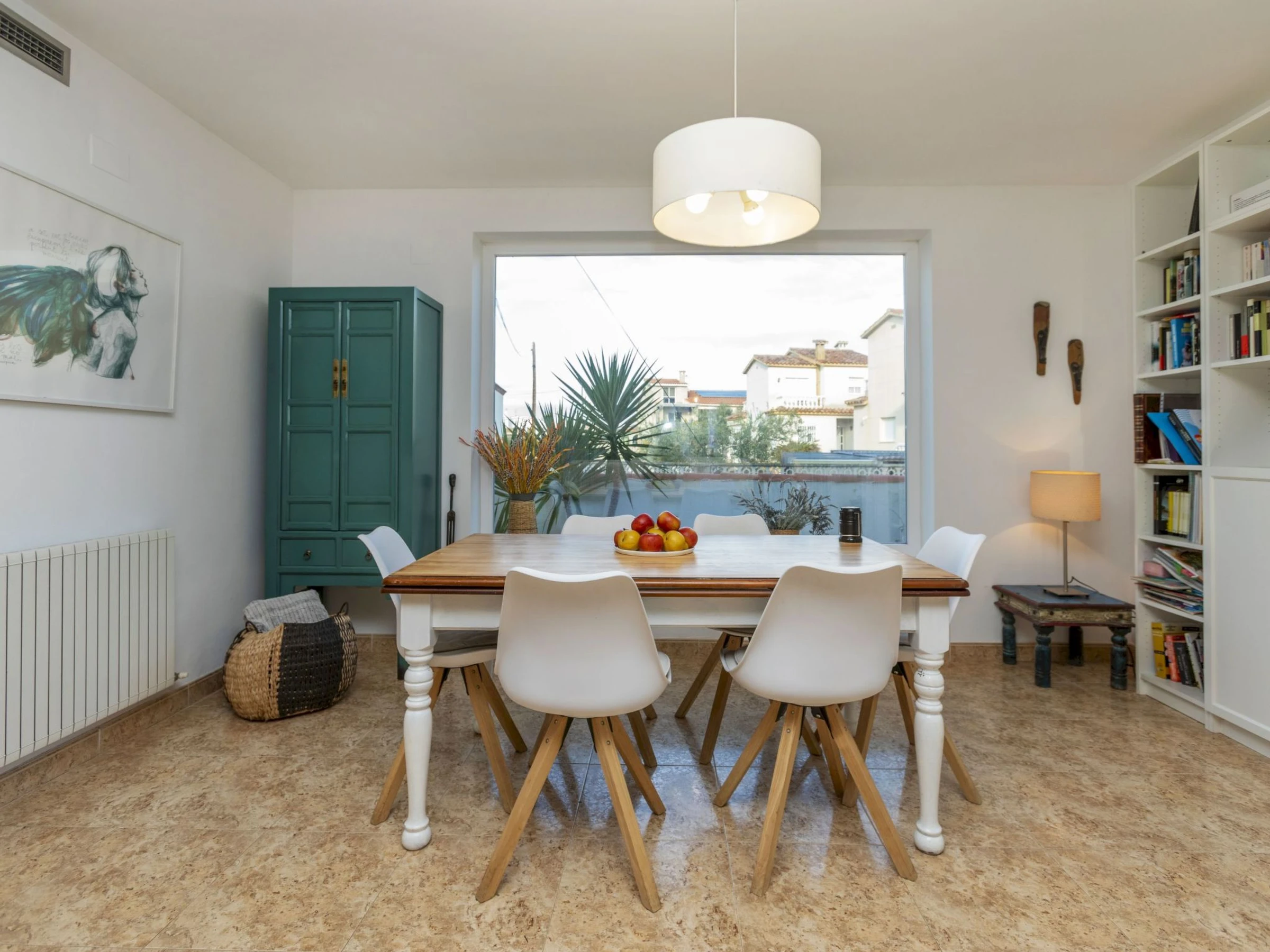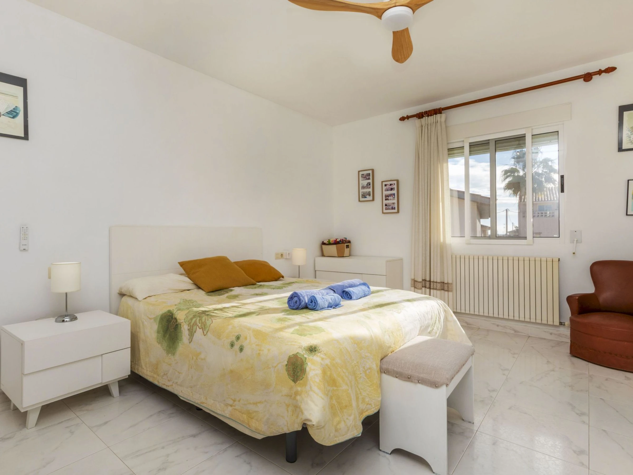 "Graells", 5-room house 176 m2 on 2 levels. Practical and comfortable furnishings: living/dining room with dining table, digital TV and air conditioning. Exit to the patio. 1 room with 2 beds (90 cm, length 190 cm), air conditioning. Kitchen (oven, dishwasher, 3 ceramic glass hob hotplates, toaster, microwave, electric coffee machine) with boiler (80 litres). Exit to the terrace. Sep. WC. Upper floor: 1 room with 1 french bed (1 x 135 cm, length 190 cm), shower/WC, air conditioning and fan. 2 rooms, each room with 2 beds (90 cm, length 190 cm), air conditioning. Bath/bidet/WC, shower/WC. 2 large terraces, large patio. Terrace furniture, barbecue, deck chairs (1). Distant view of the sea. Facilities: washing machine, iron, hair dryer. Internet (WiFi, free). Parking (2 cars) at the house. Please note: non-smoking house. TV only ES. No lift. [hidden]