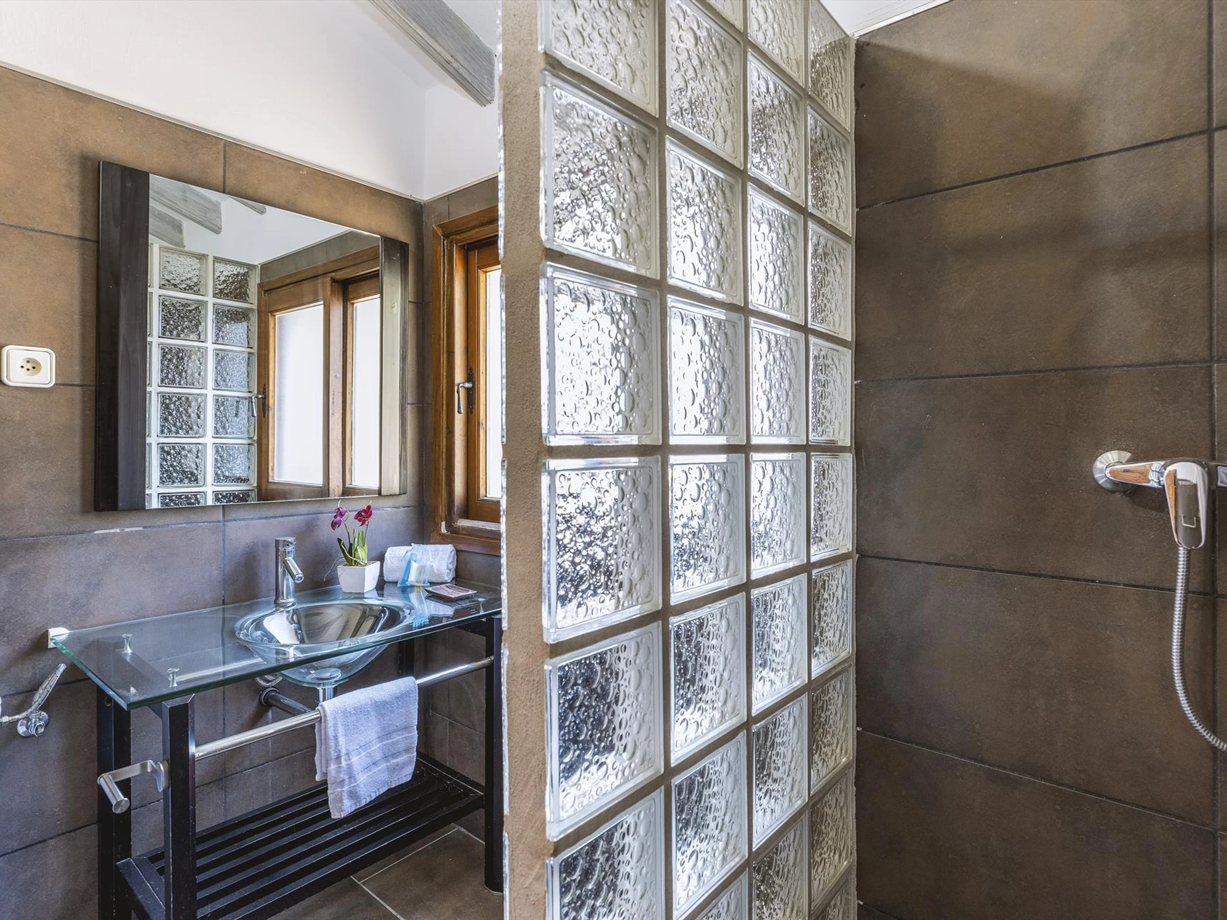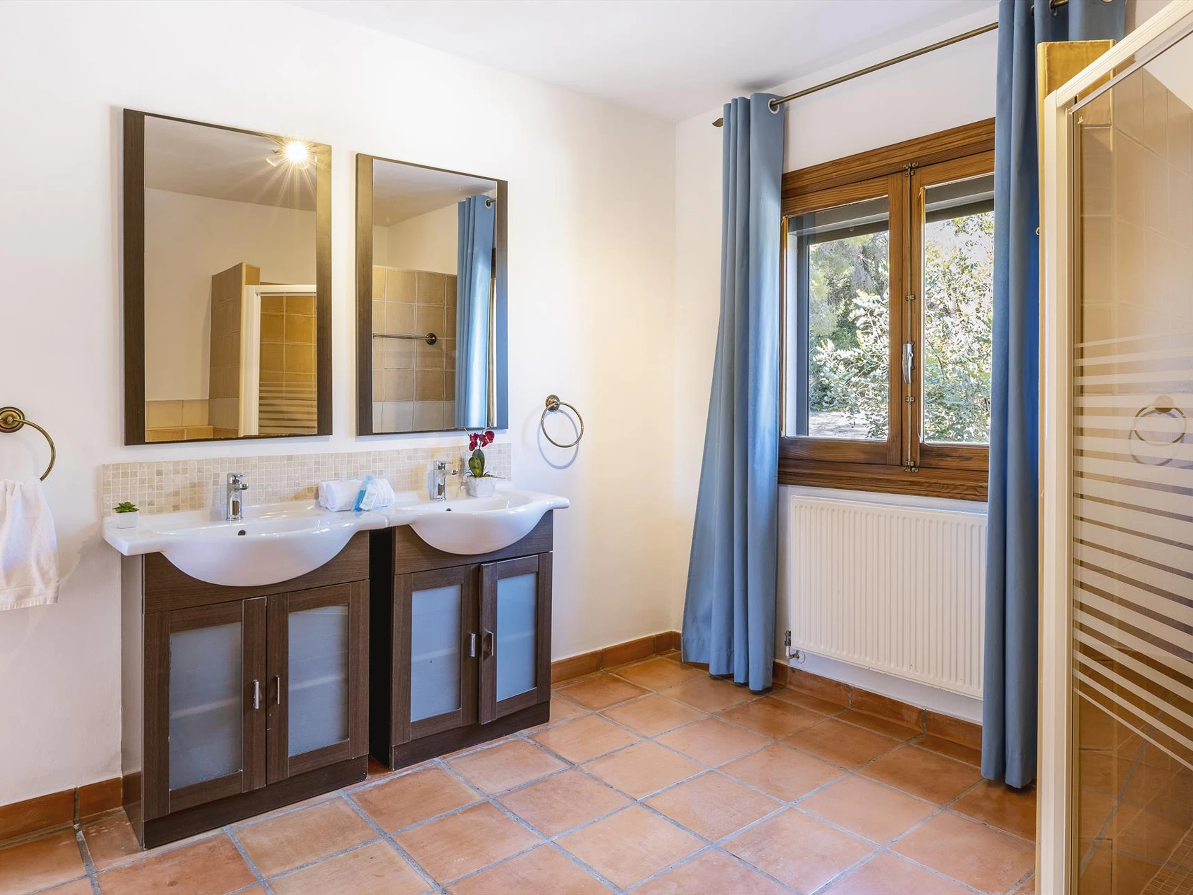 * bathroom with double washbasin, shower and toiletInterior of the right wing