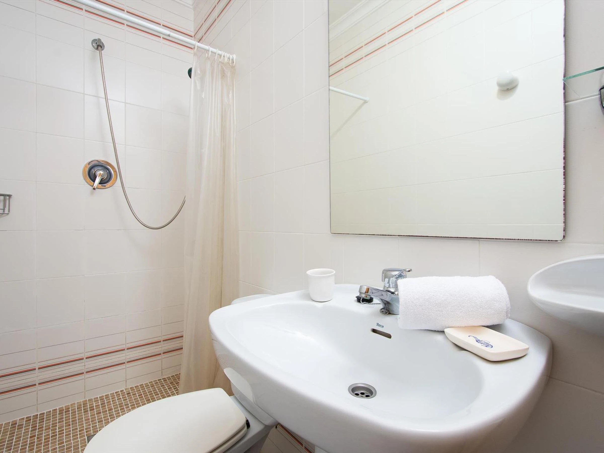 * bathroom with single washbasin, shower and toilet Exterior of this holiday