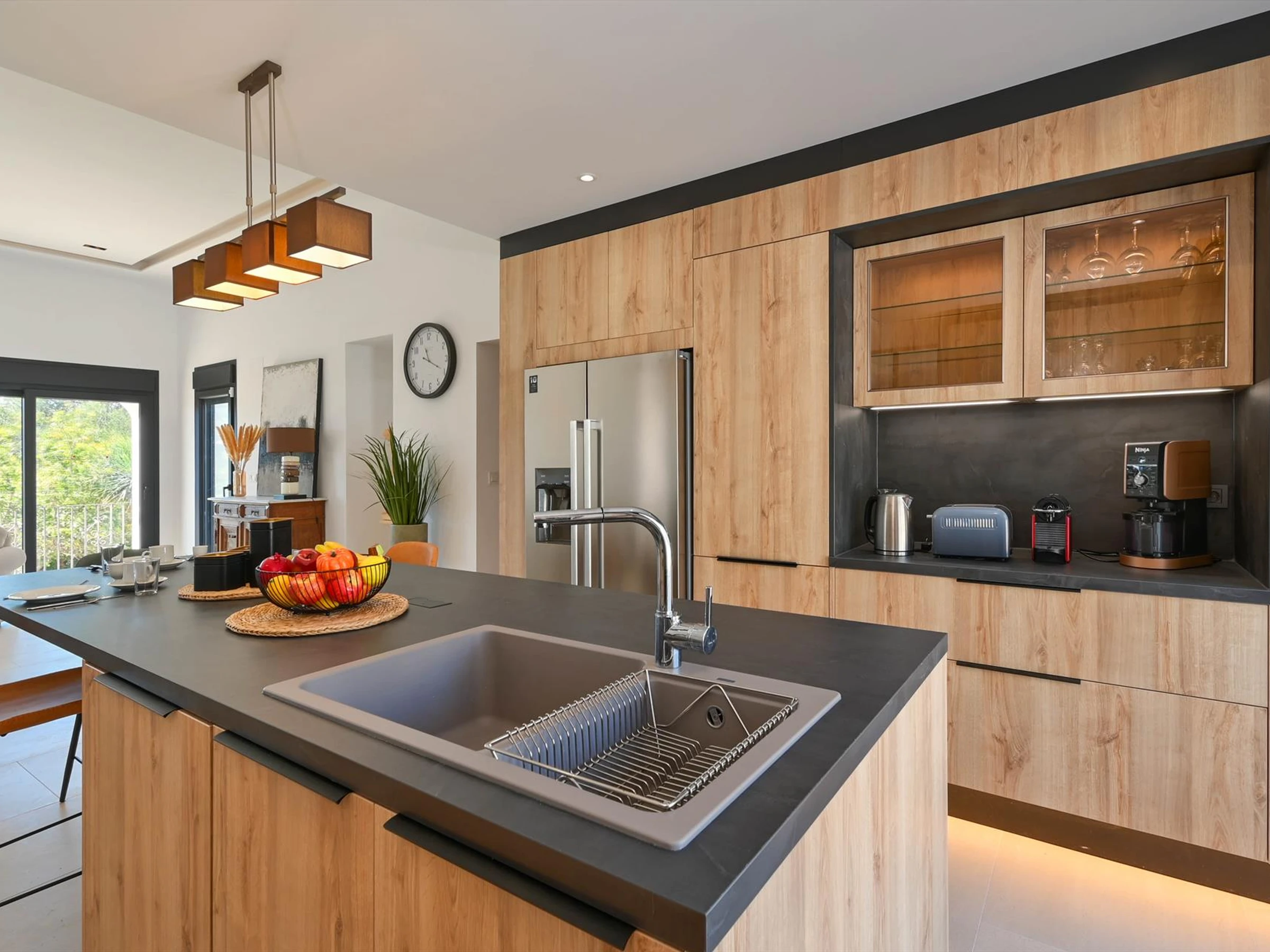 refrigerator-freezer, coffee machine, electric kettle, mixer and toaster