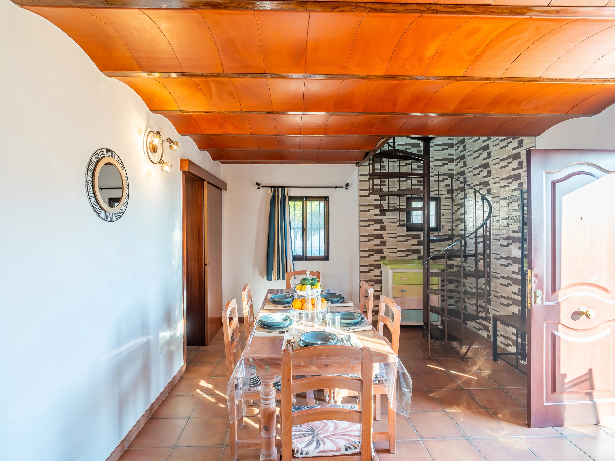 Access to the two upper rooms is via a spiral staircase, safe and wide, which leads to a corridor with entry to both bedrooms. The rooms are spacious, bright and have sufficient space to store your luggage, ensuring a restorative rest.