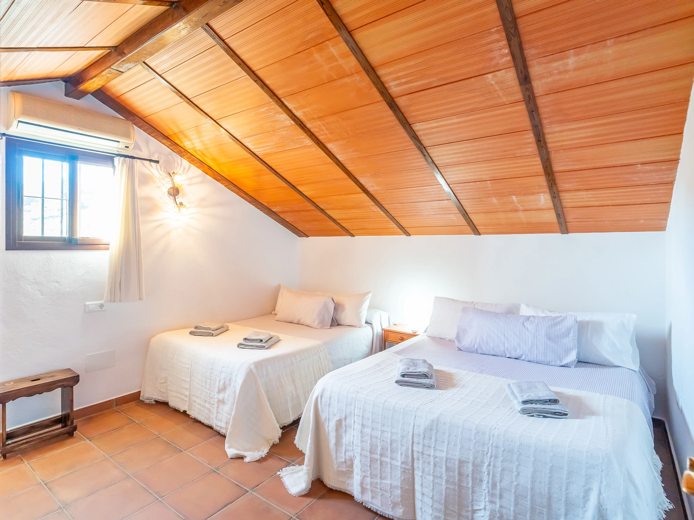 - Bedroom 1: It has two double beds and a single bed, perfect for families or groups.