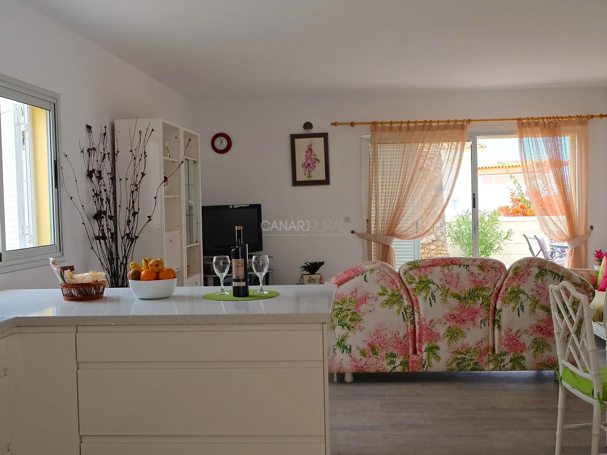 Es una villa muy cómoda de una sola planta y cuenta con piscina privada y terraza con vistas al mar y a la Gomera.
